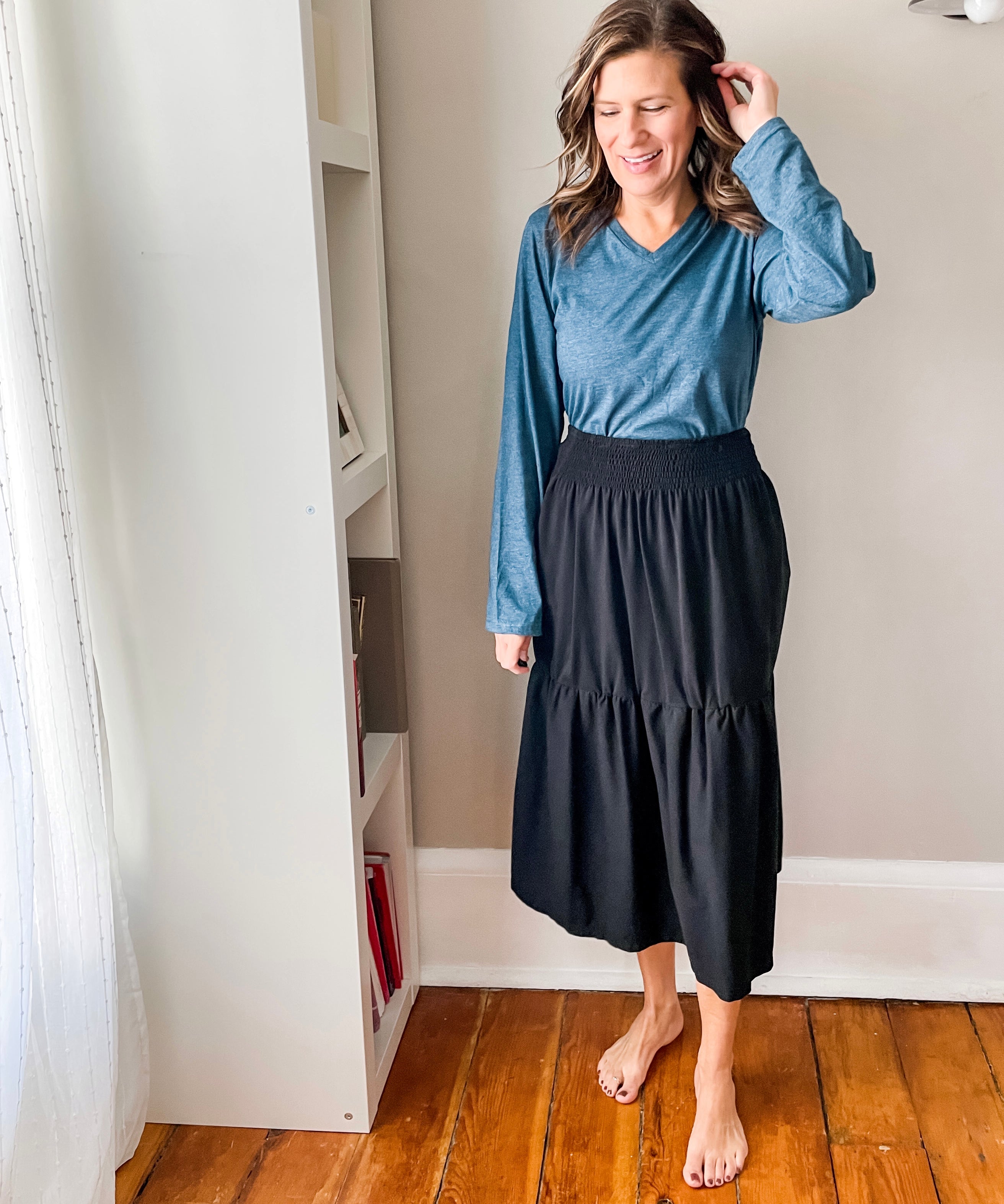 Long Sleeve V-Neck Knit Top - Lake Blue