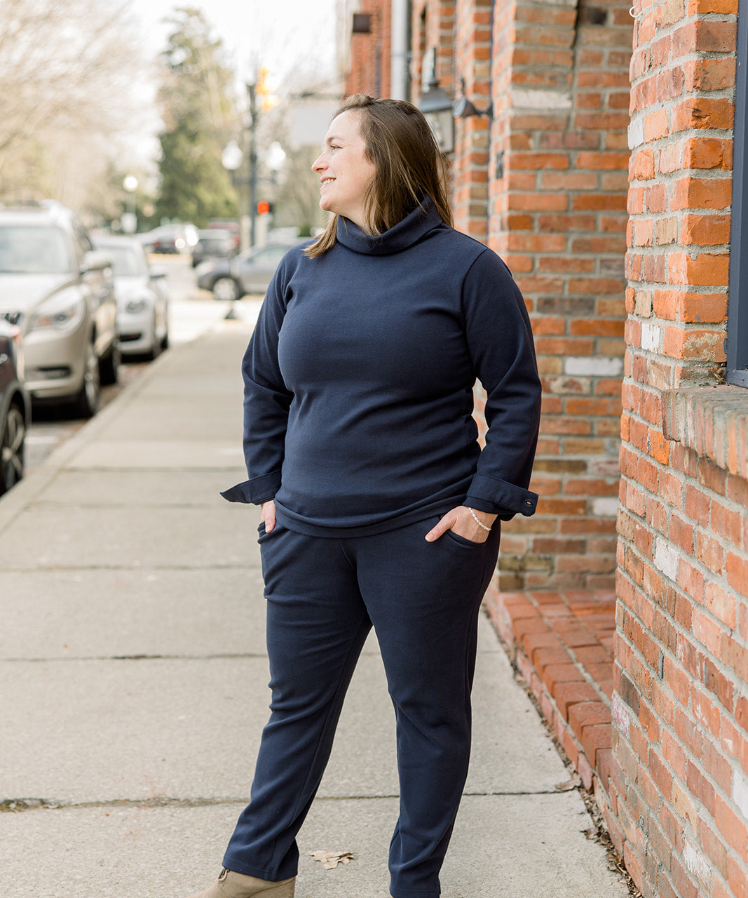 Ponte II Long Sleeve Mock Neck with Cuff and Pant - Navy