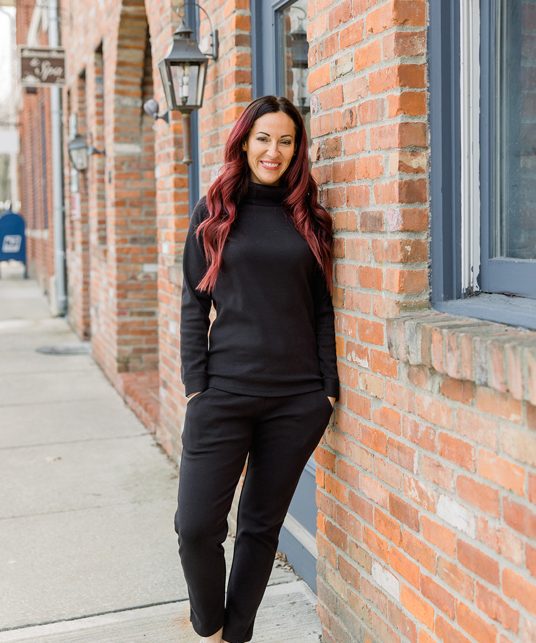 Ponte II Long Sleeve Mock Neck with Cuff and Pant - Black