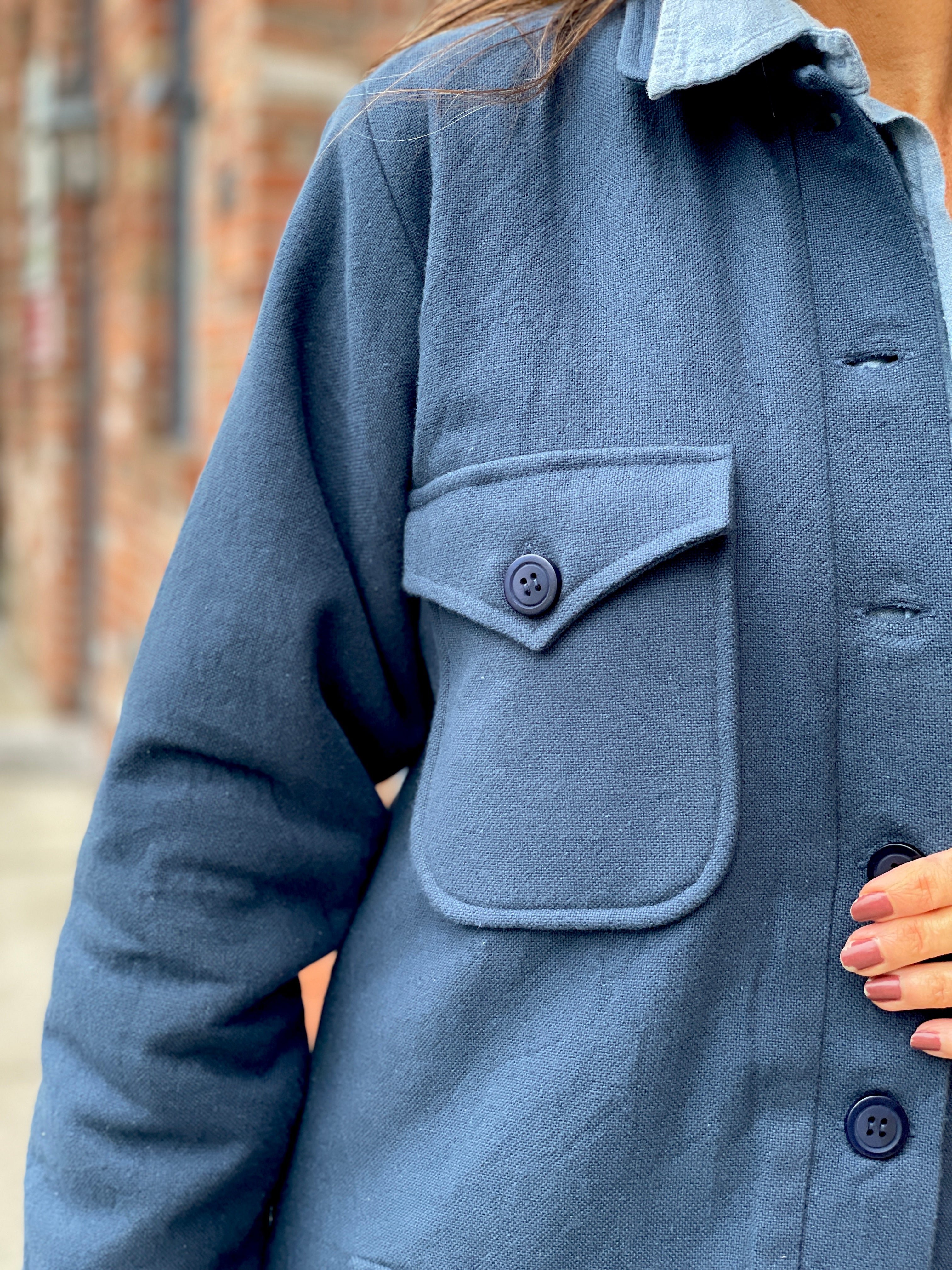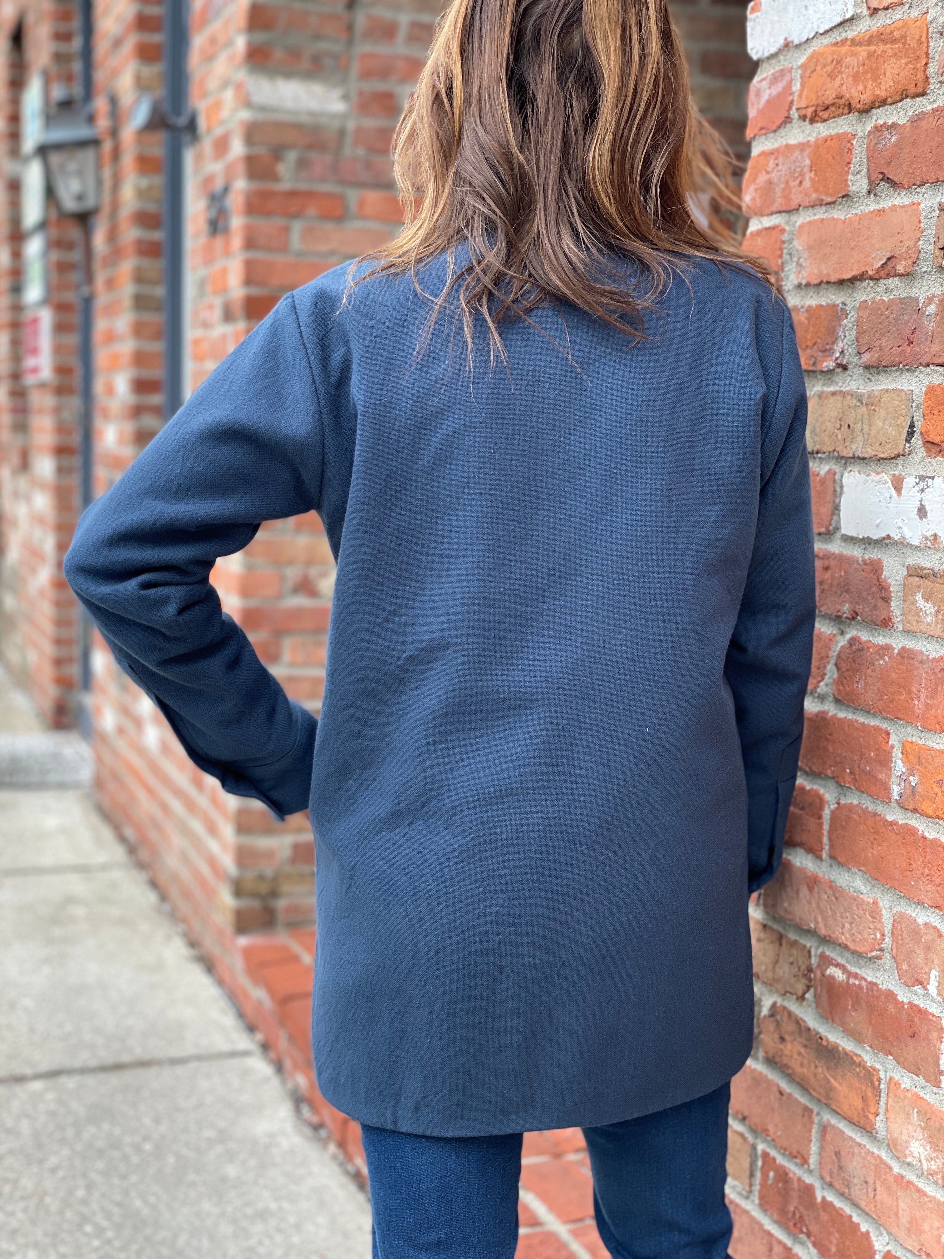 Elegant Khadi coat crafted from sustainable handwoven cotton fabric. Features a sophisticated design with versatile styling for layering over any outfit.