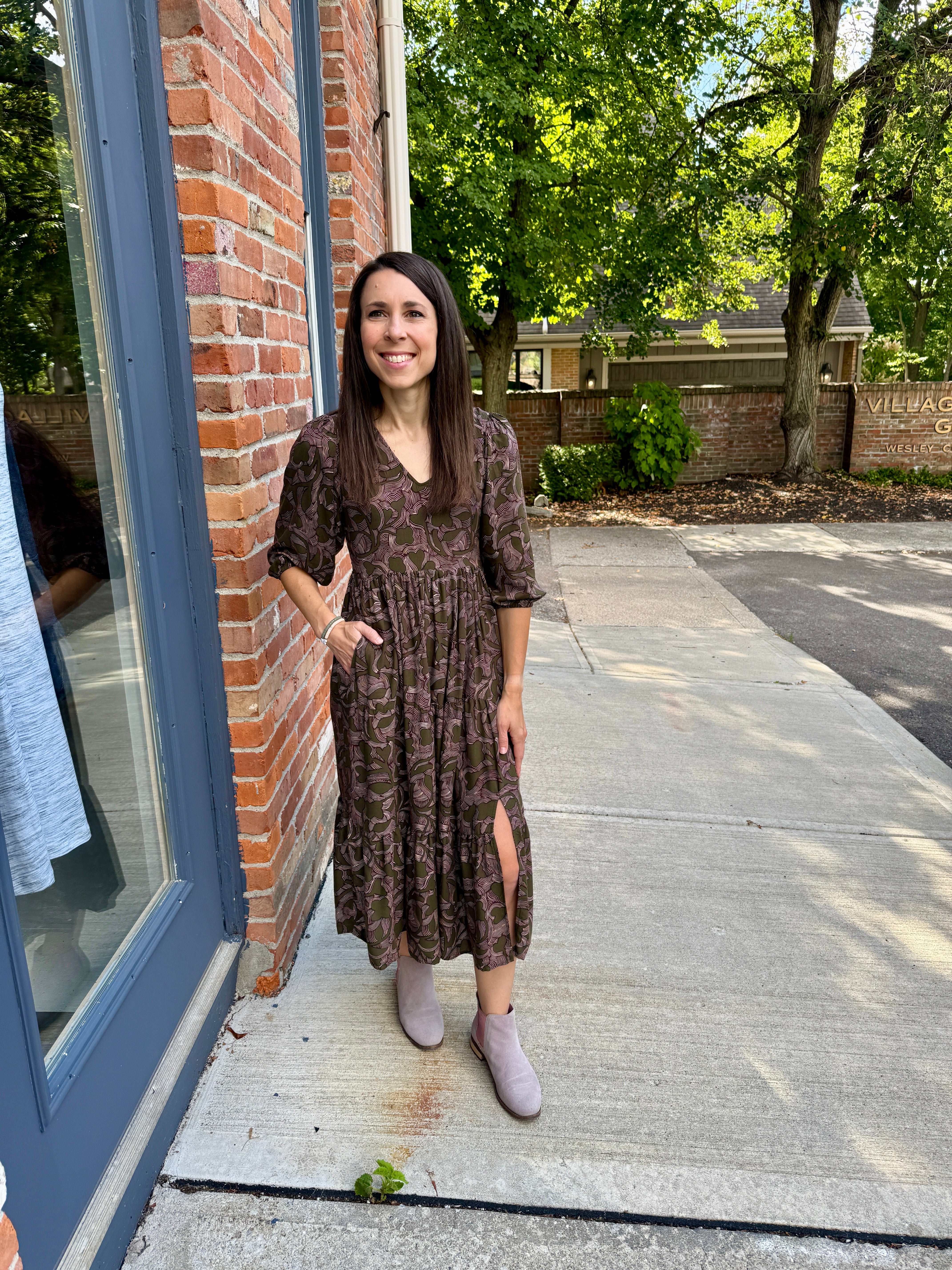 The Florence Midi Dress is your go-to piece for any occasion. Dress it up for fall and winter weddings, graduation ceremonies, or special events, then style it down for everyday wear, family photos, or casual outings. The elegant tiered silhouette, flattering V-neckline, and flutter sleeves transition effortlessly from season to season.