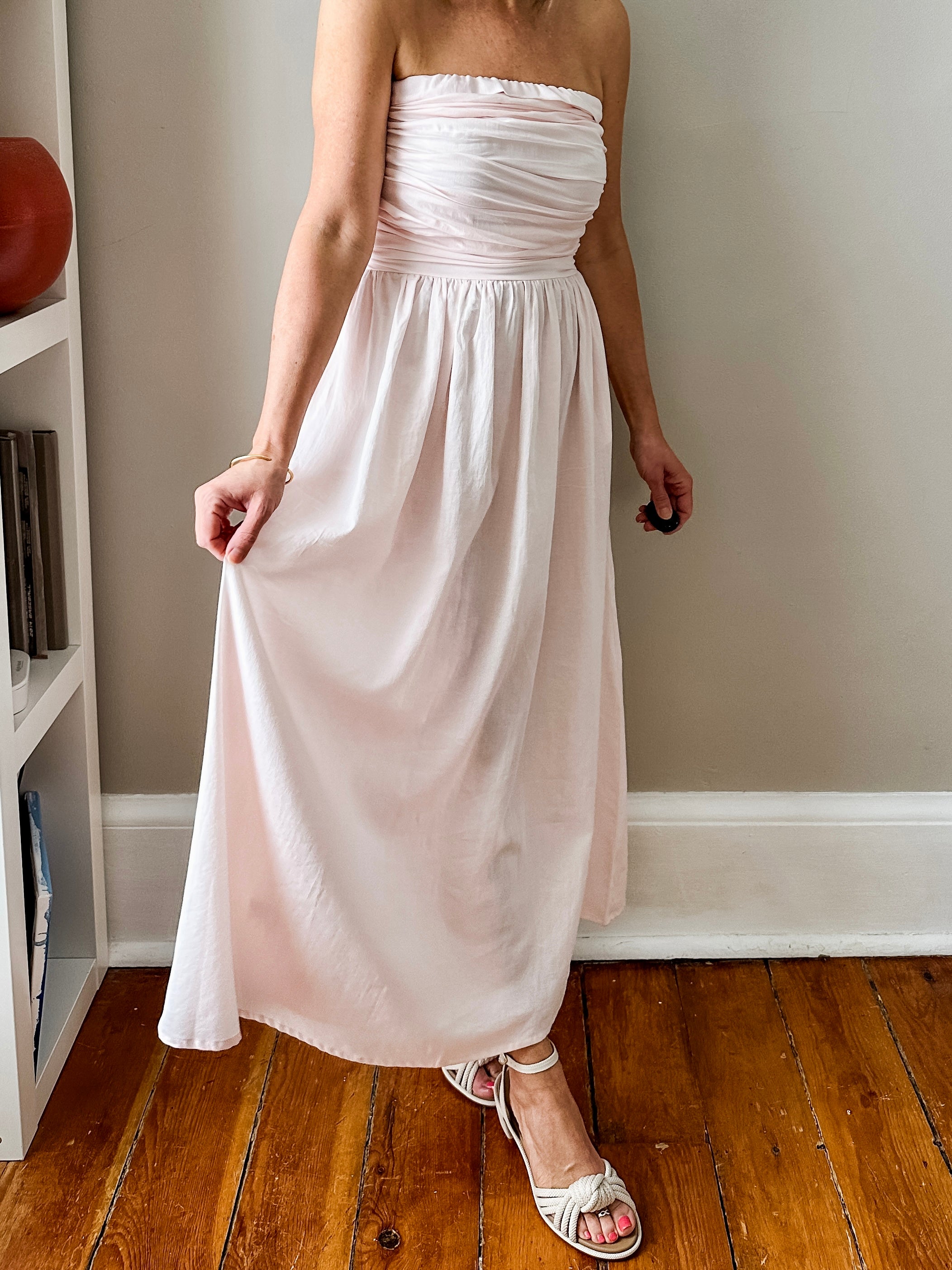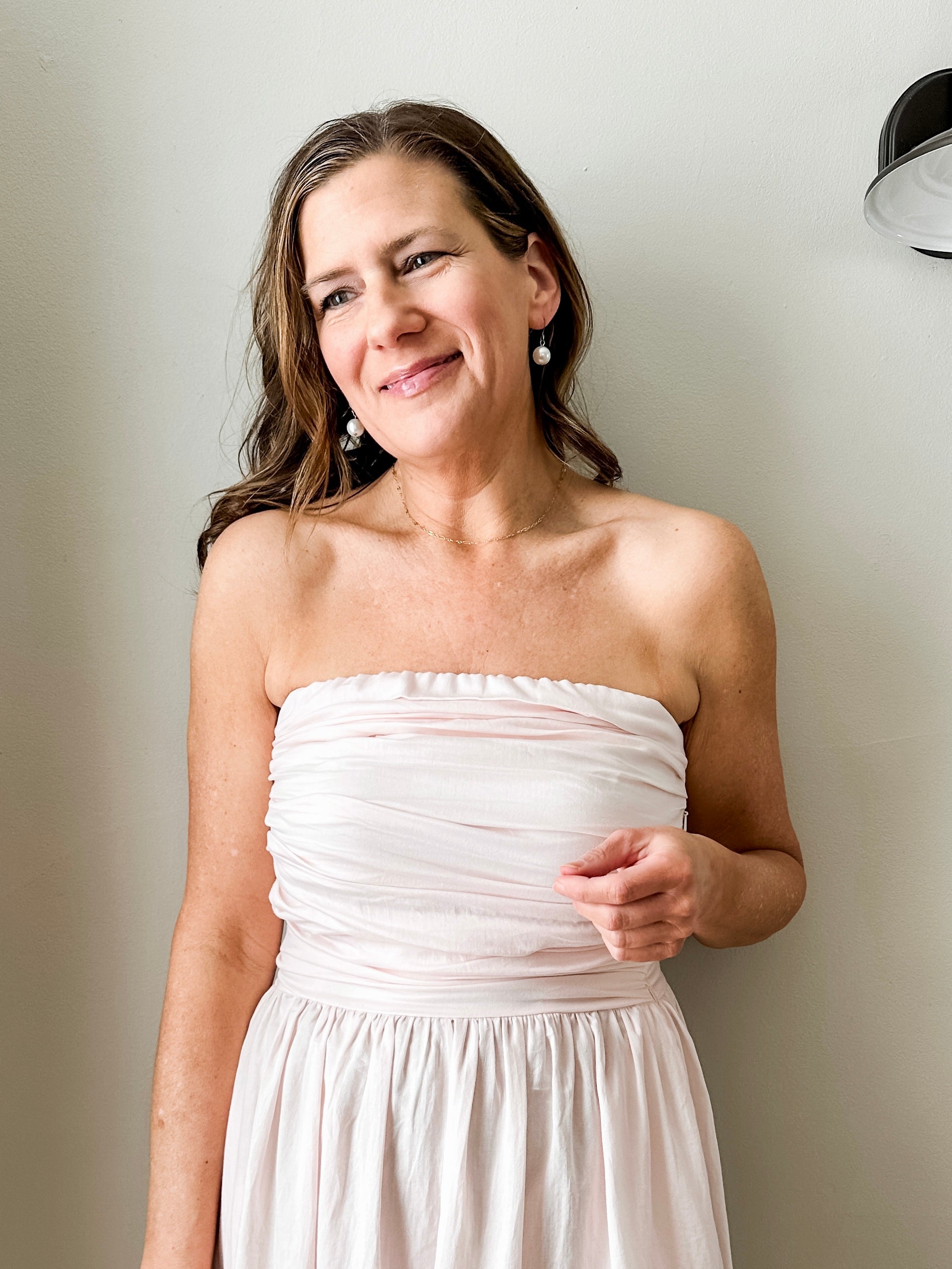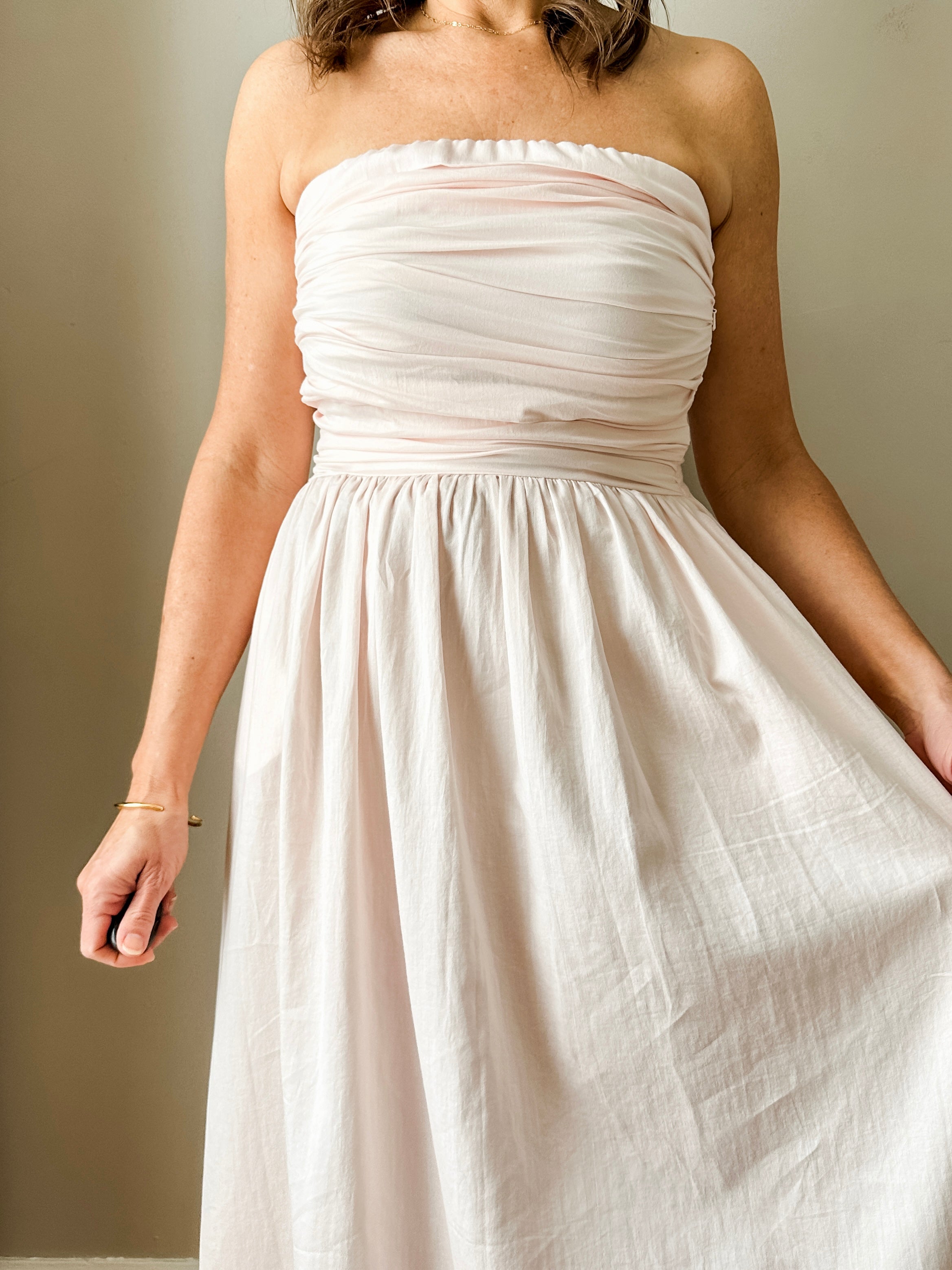 The Mia Strapless Dress effortlessly transitions from afternoon parties to weddings with its timeless silhouette and thoughtful design. From brunch to evening events, this versatile piece adapts to your lifestyle. The straight strapless neckline and gathered skirt create a flattering fit, while French seams and a hidden side zipper ensure quality that lasts.