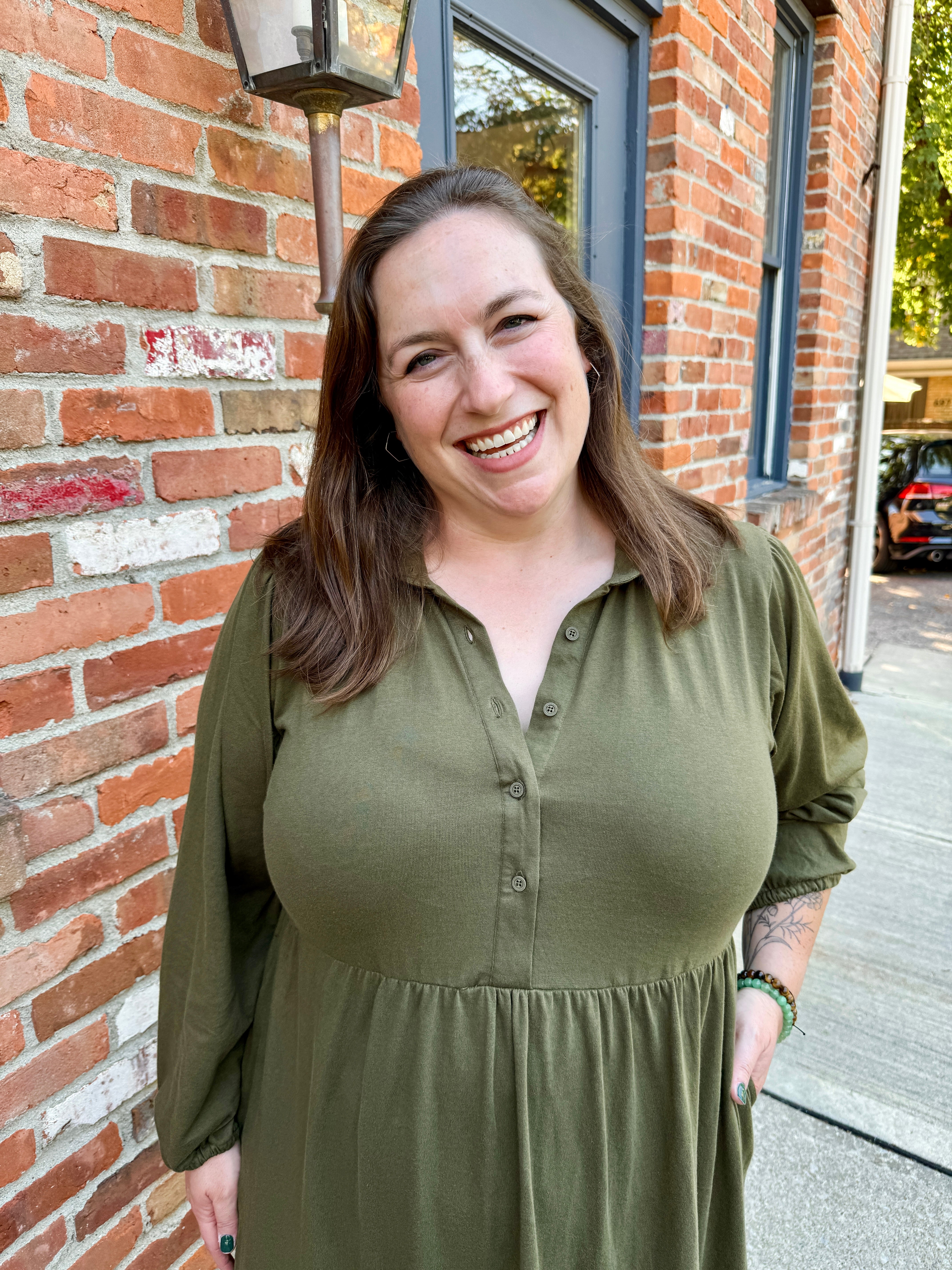Fit Reference: Oatmeal worn by Donna size S & Sally size M | Cranberry worn by Mary Ellen size L & Mariana size S | Olive worn by Rachel size 2X & Elisabeth size S