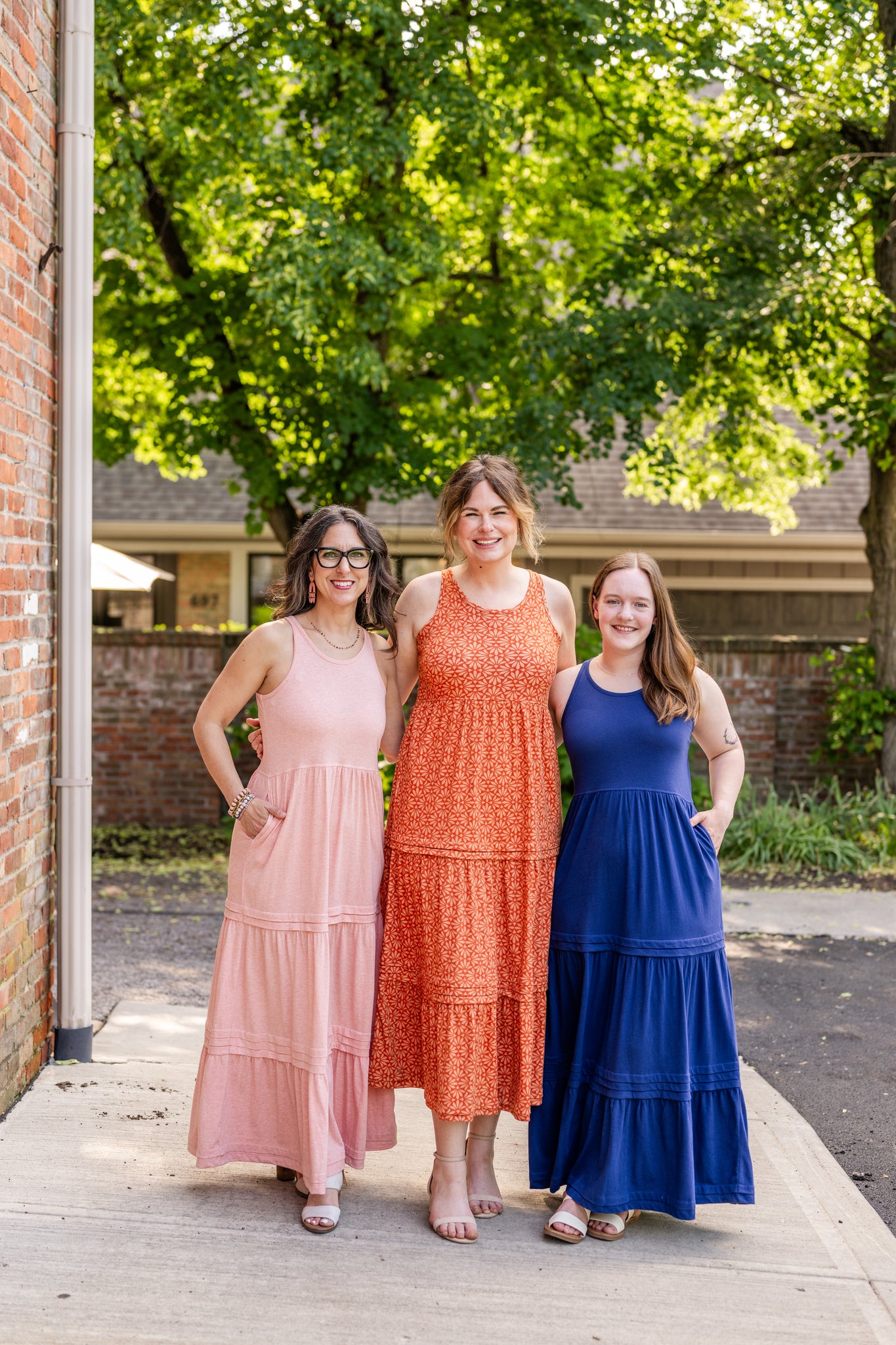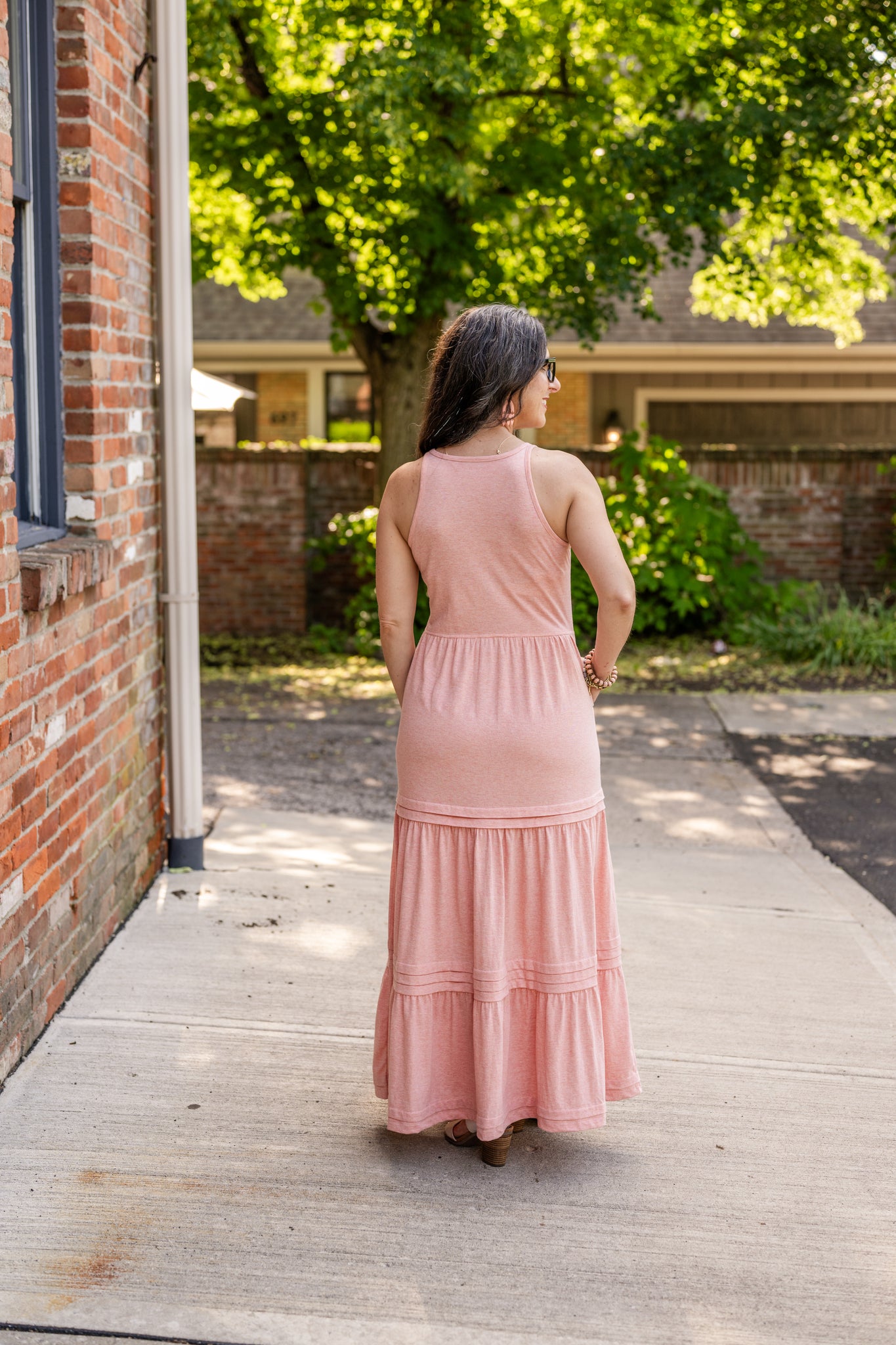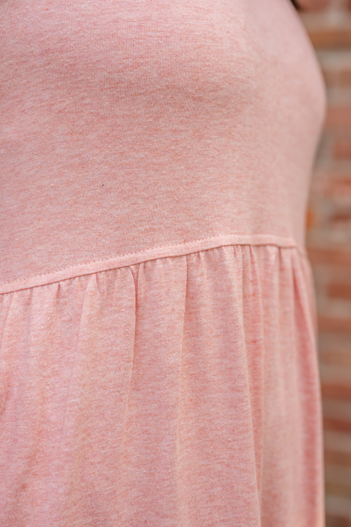 Casual and easy racer back tank dress with 3-tiered poplin style swing skirt. Features fold detail and hidden side pockets for effortless style and comfort.