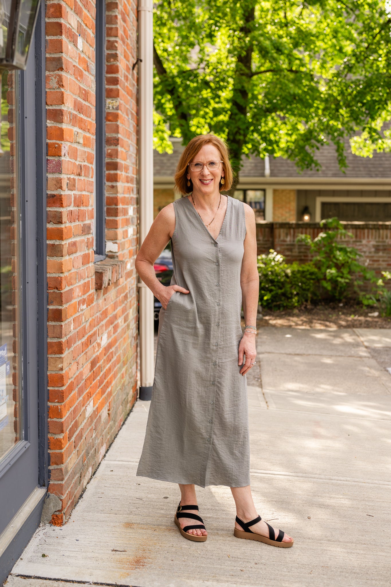 A versatile linen dress that transitions effortlessly from spring through fall. Pair with a sweater and sneakers, sandals and a hat for beach days, or add a jacket and boots for cooler weather.