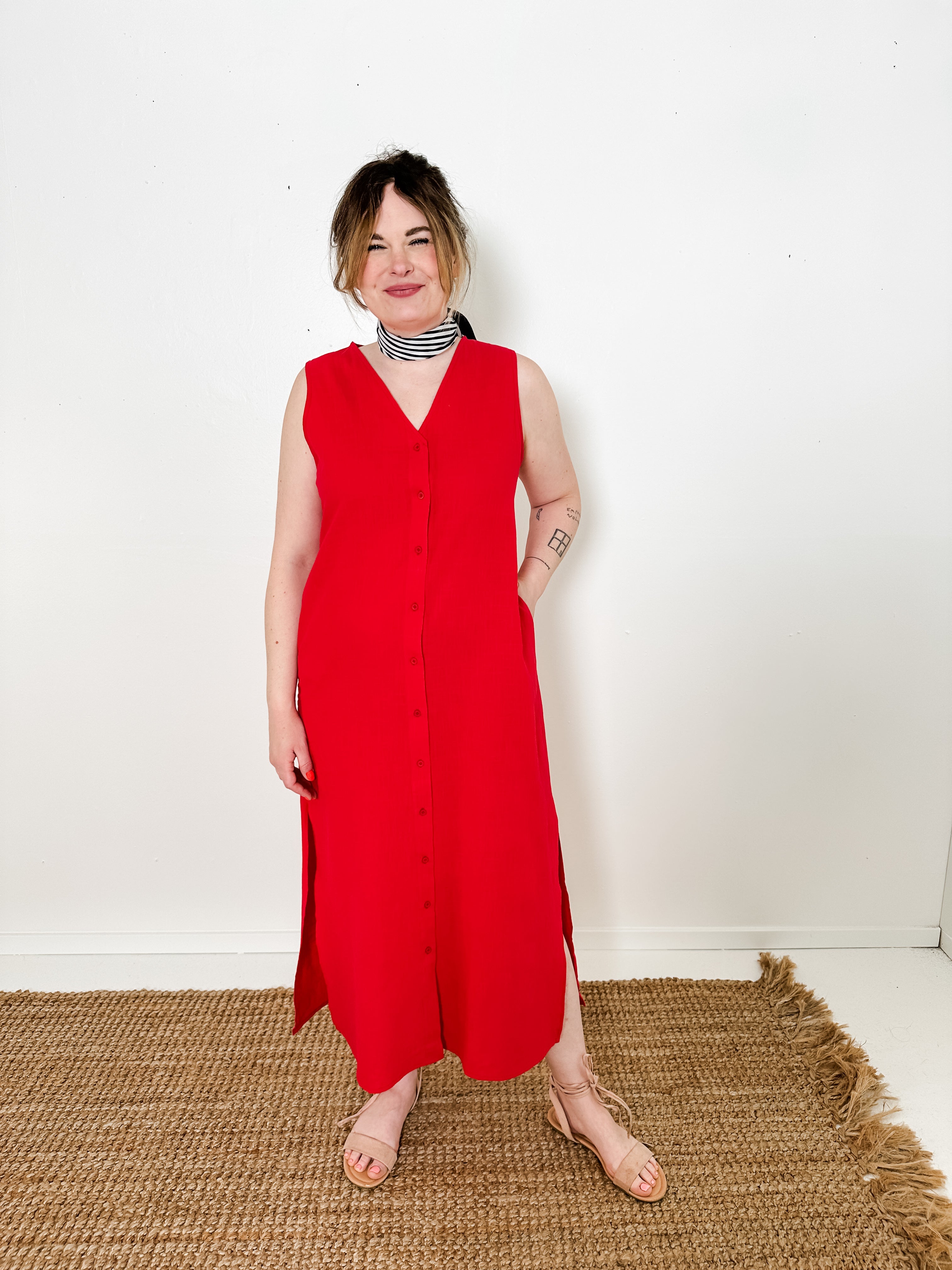 A versatile linen dress that transitions effortlessly from spring through fall. Pair with a sweater and sneakers, sandals and a hat for beach days, or add a jacket and boots for cooler weather.