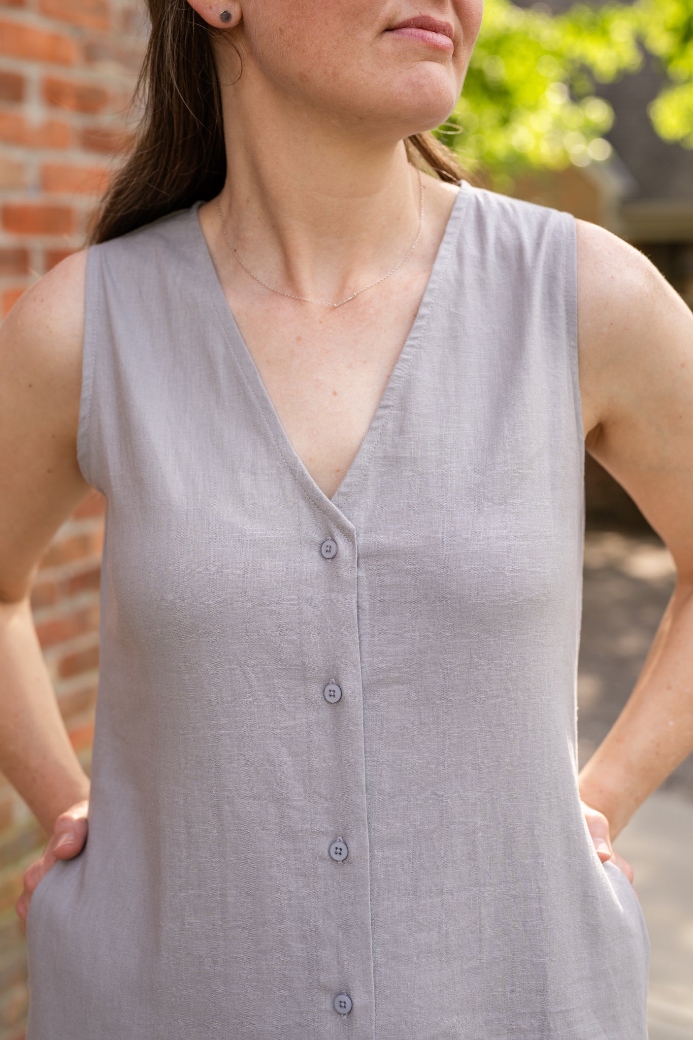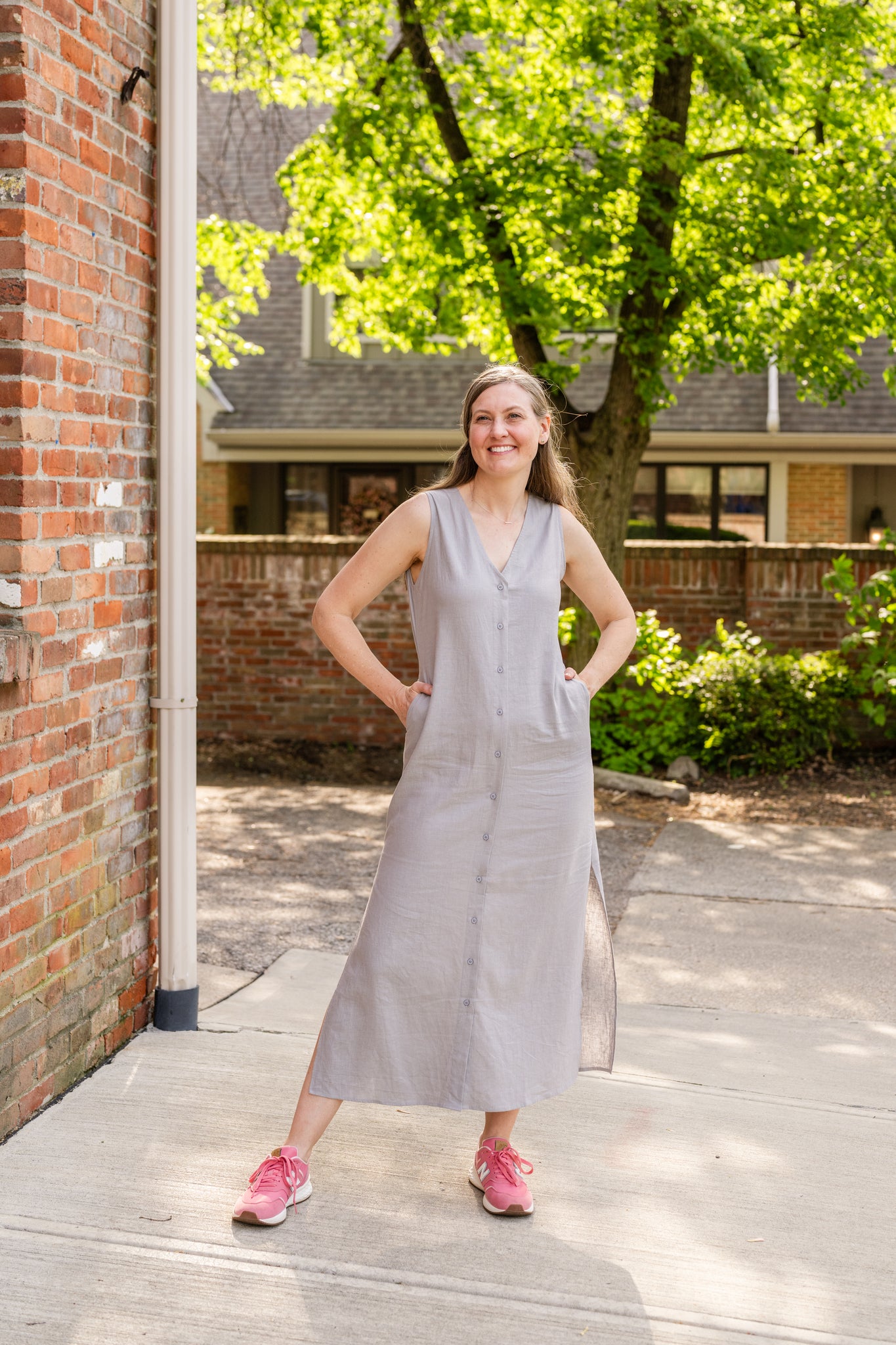 A versatile linen dress that transitions effortlessly from spring through fall. Pair with a sweater and sneakers, sandals and a hat for beach days, or add a jacket and boots for cooler weather.