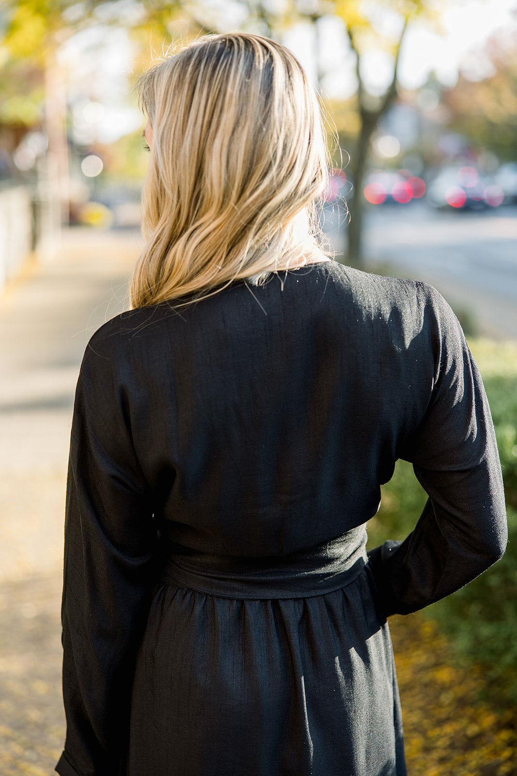 This dress brings out your curves, defines your waistline, and flatters all body shapes. Subtle pleats at the waist and button tab sleeves are semi-formal details to make your style more approachable.
