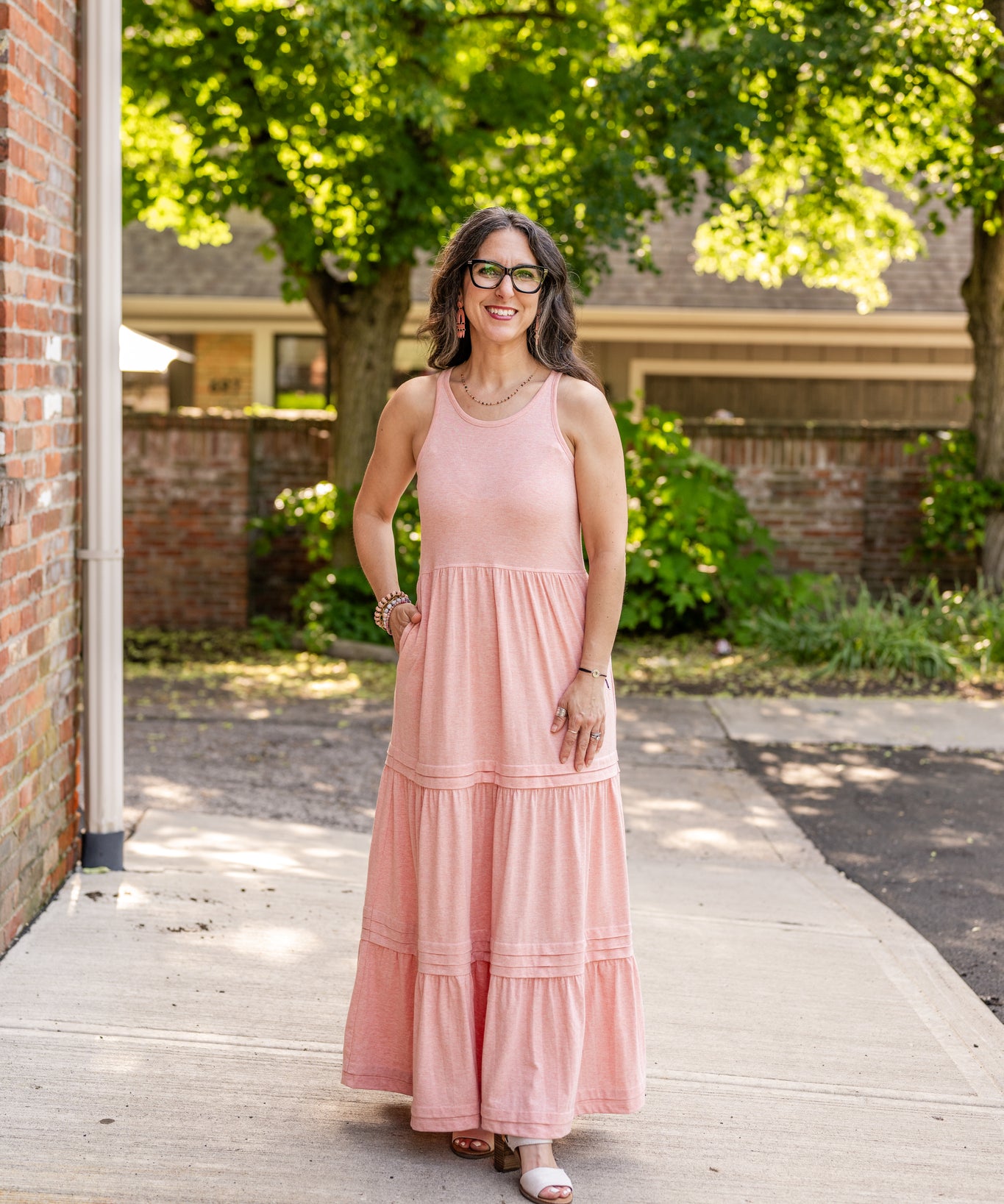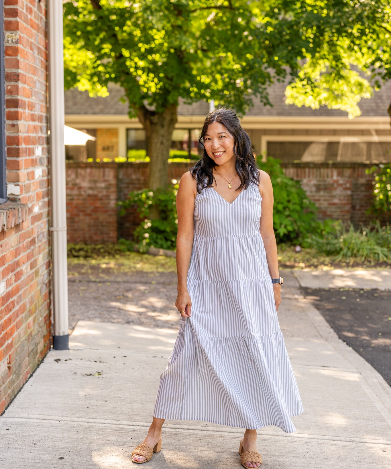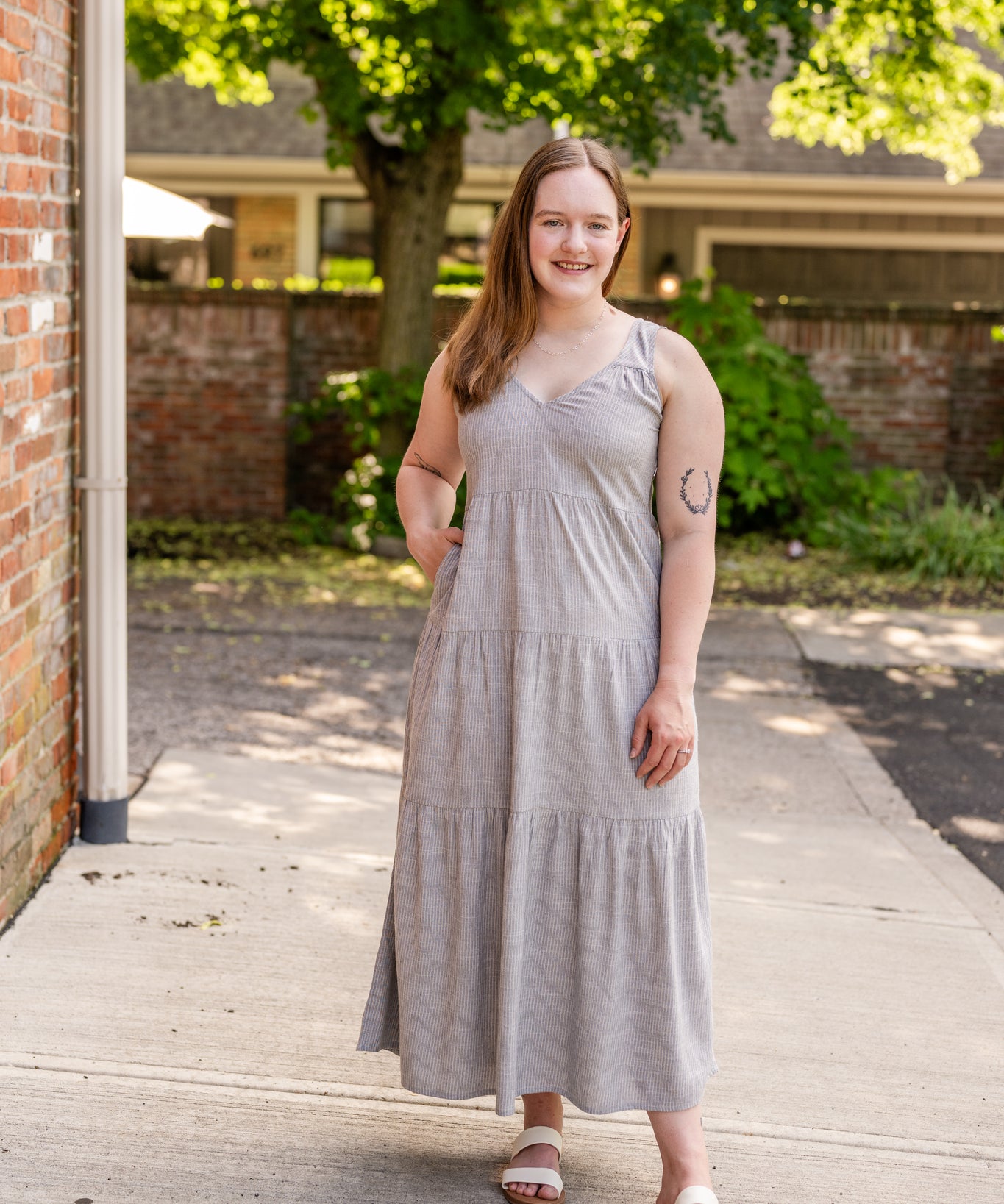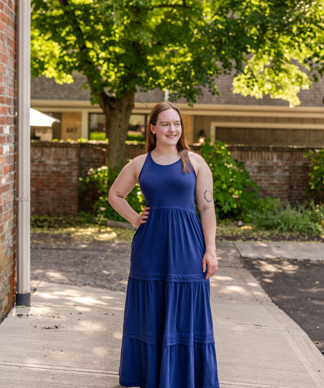 Racer Back Poplin Tiered Maxi Dress