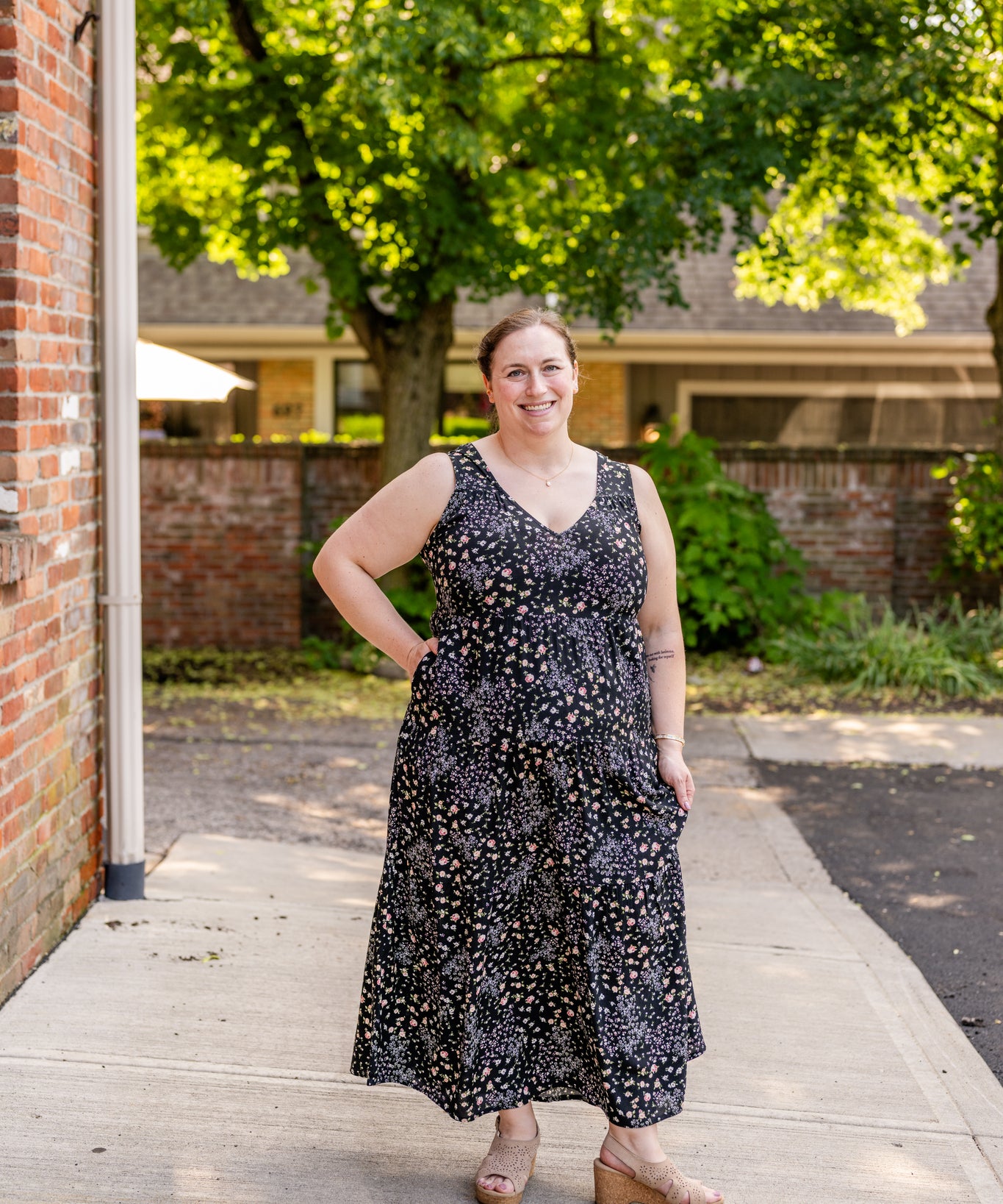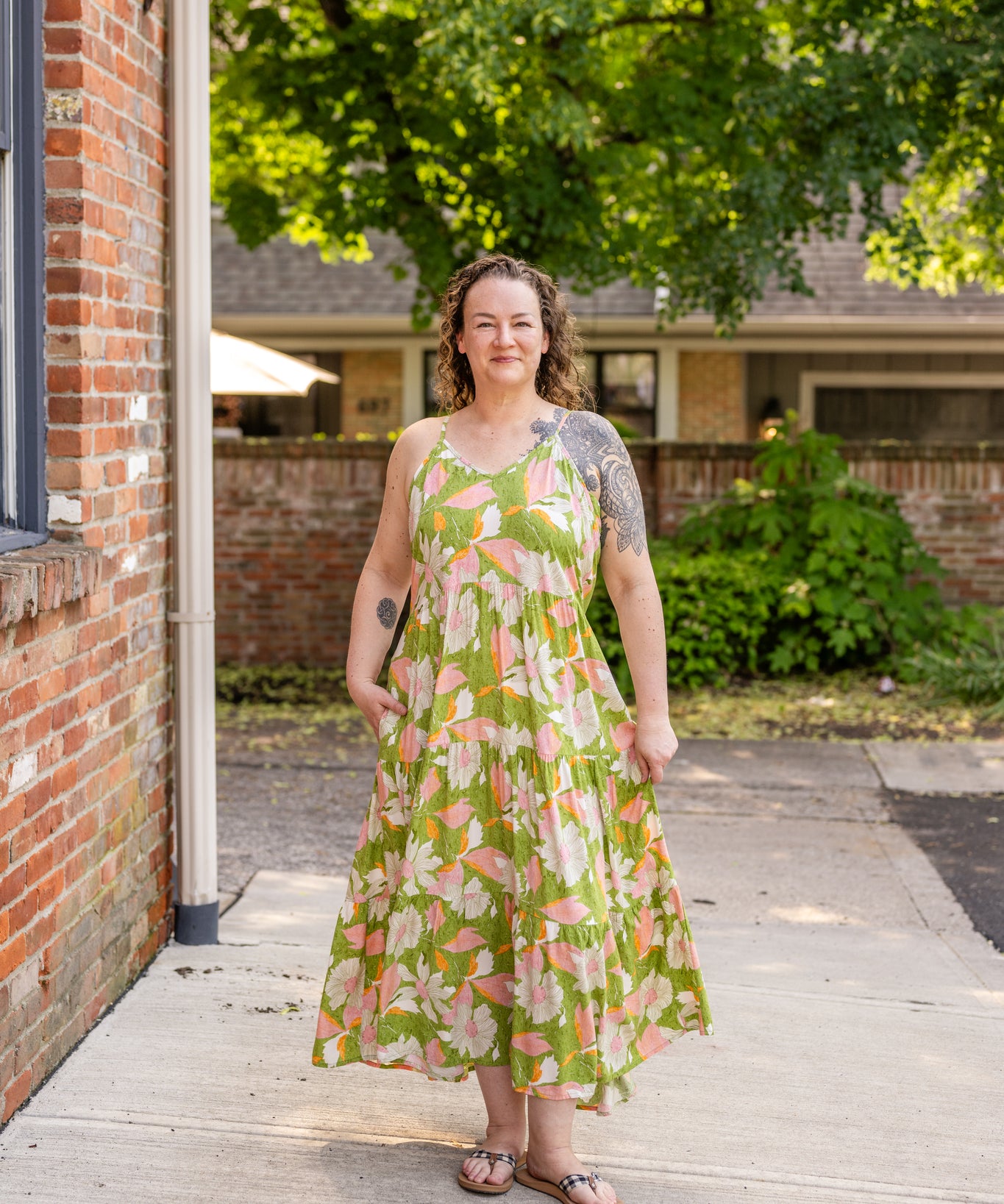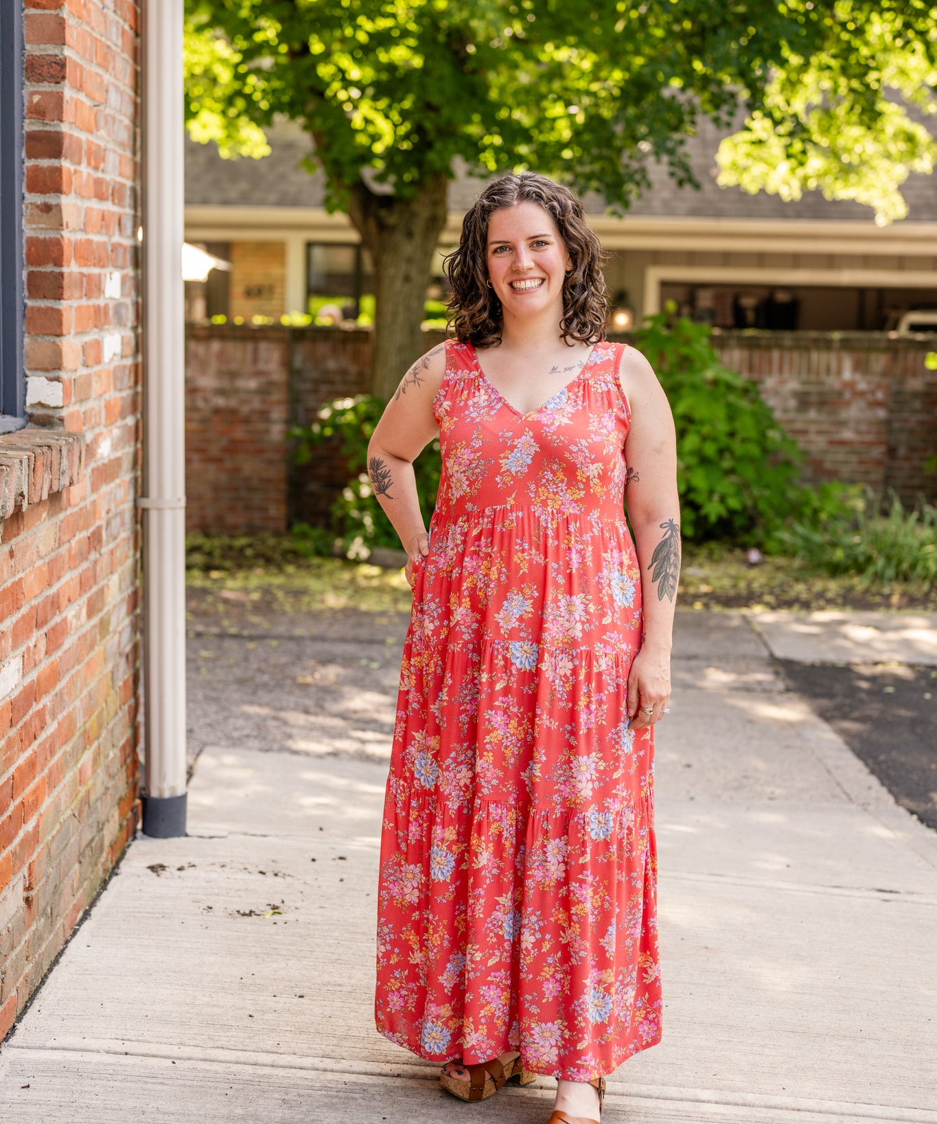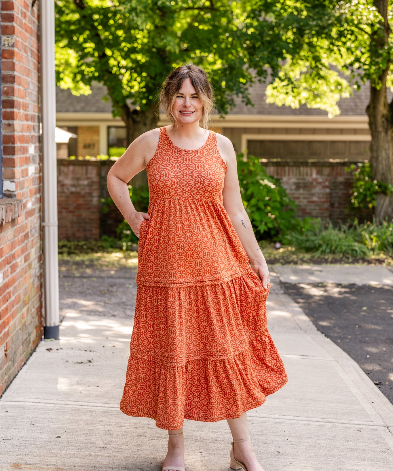Racer Back Poplin Tiered Maxi Dress