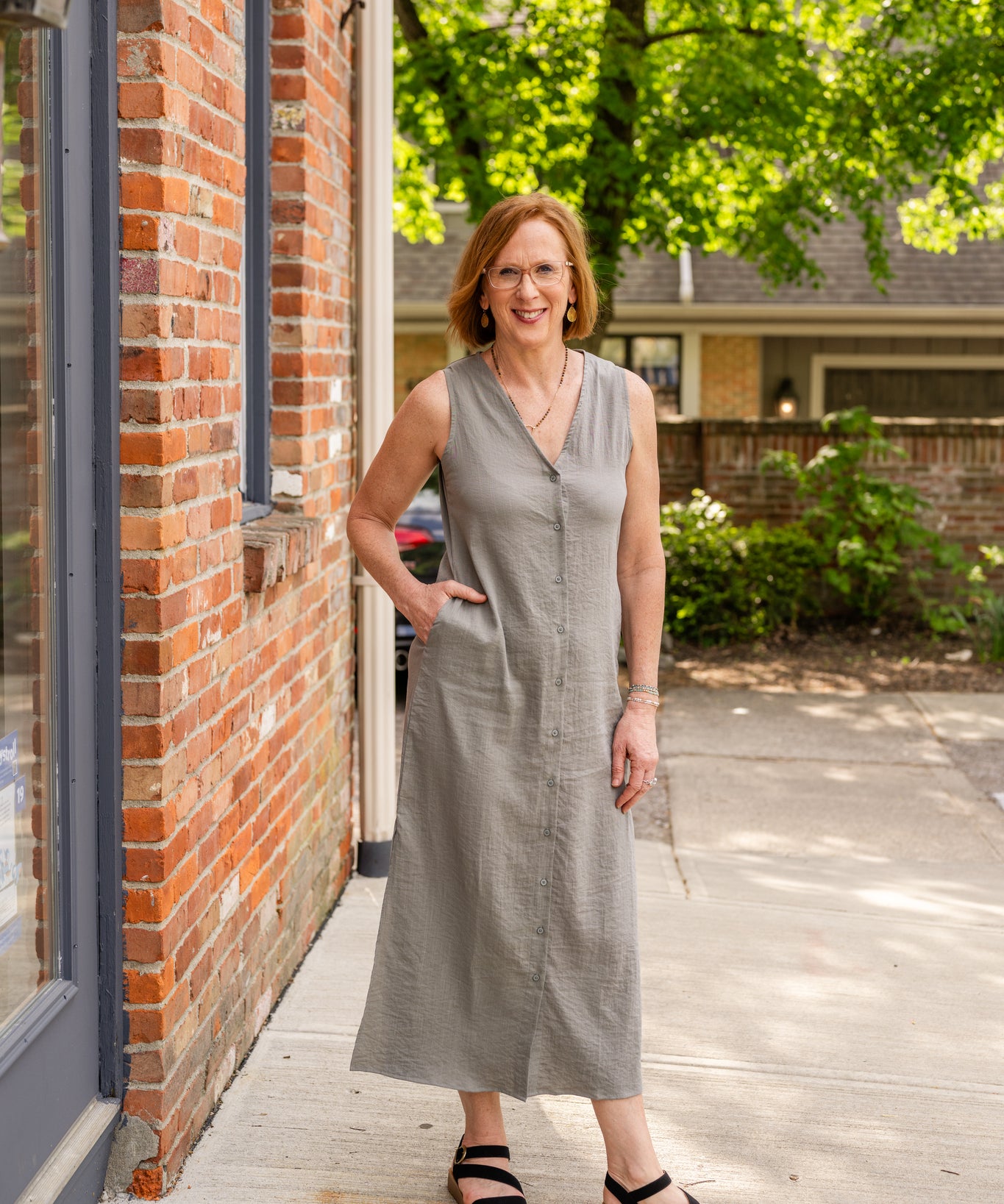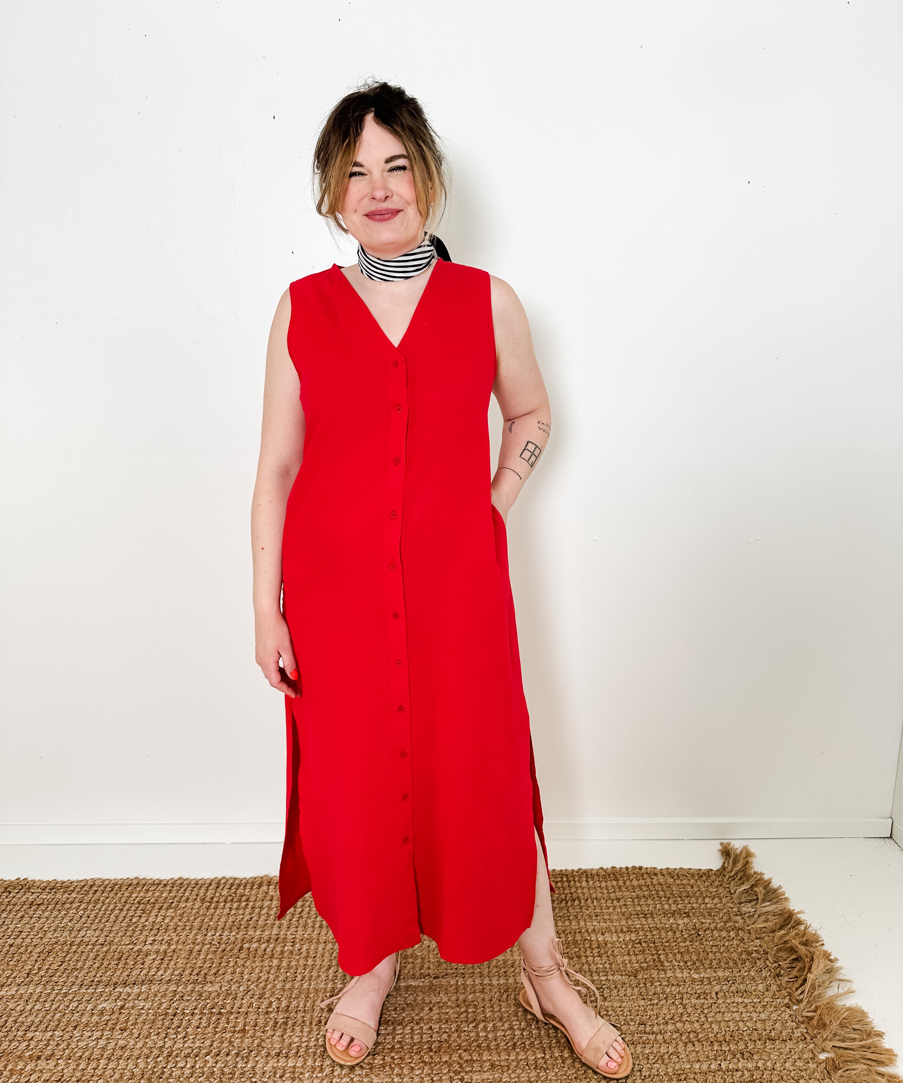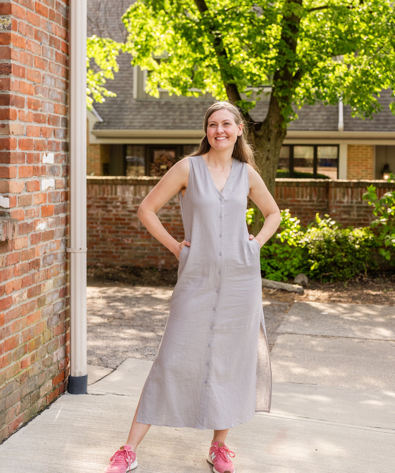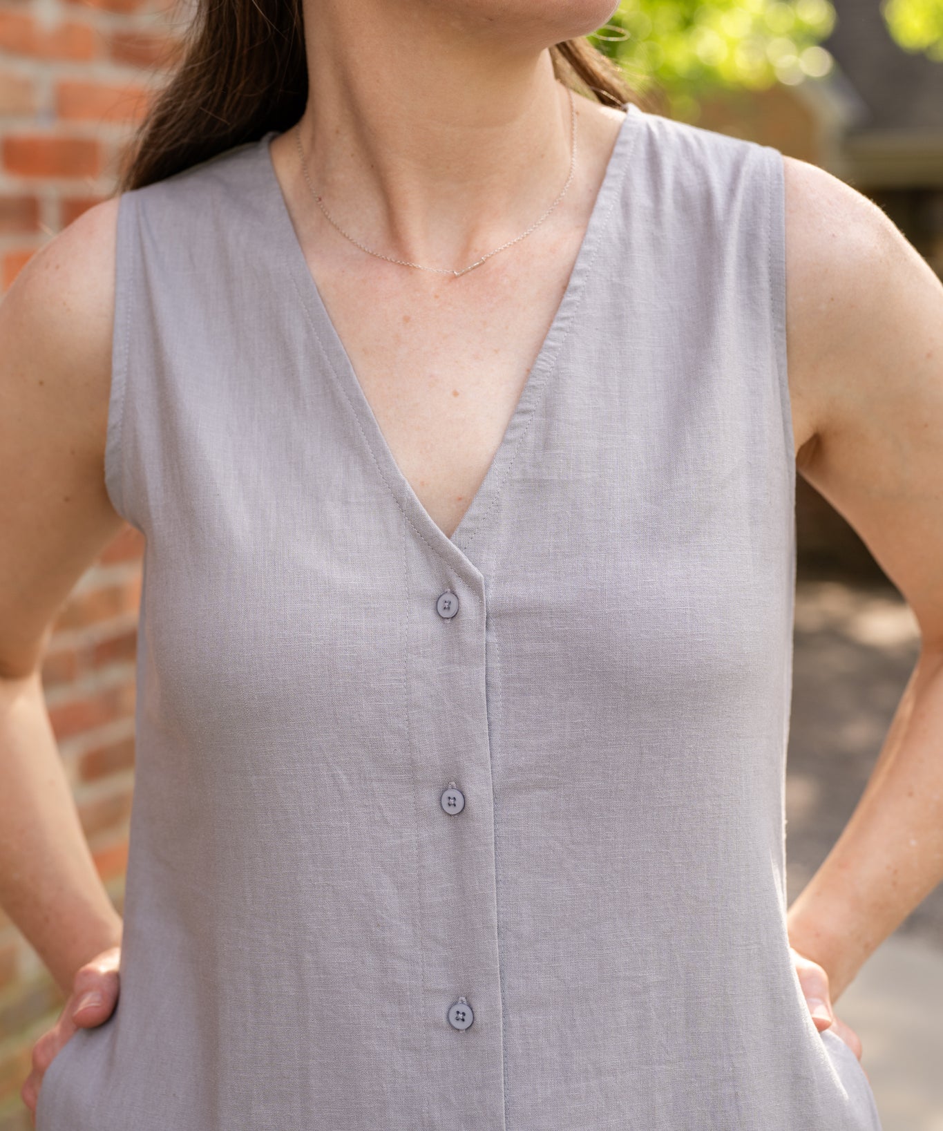 Sleeveless Button-Up Linen Dress