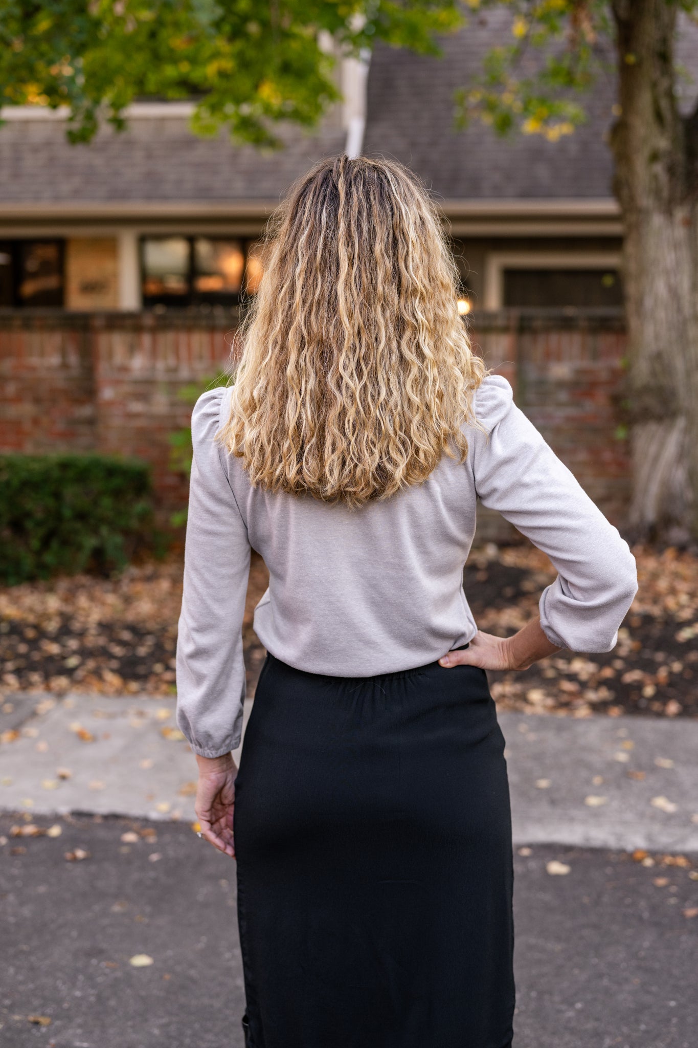 Fit Reference: Gray worn by Tagan size S | Navy worn by Krysten size L | Ivory worn by Kelly size M | Deep Raspberry worn by Madi size XS and Rachel size 1X