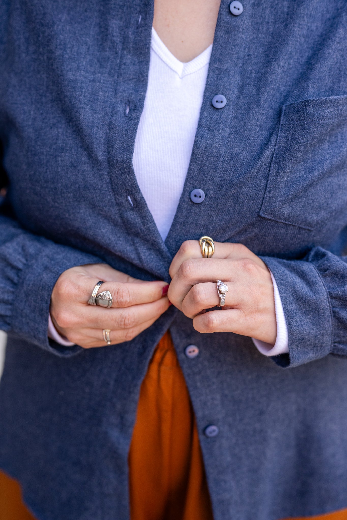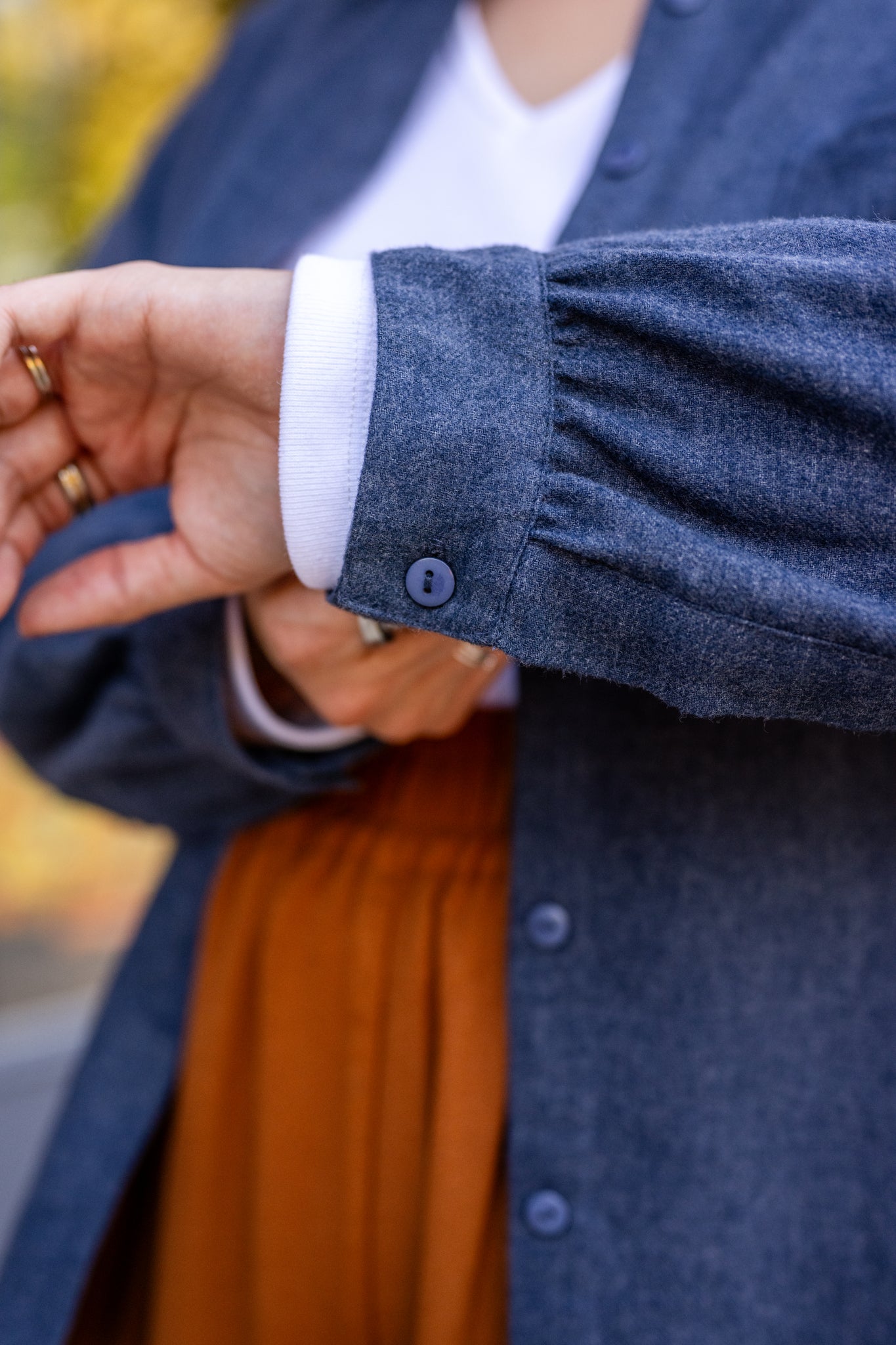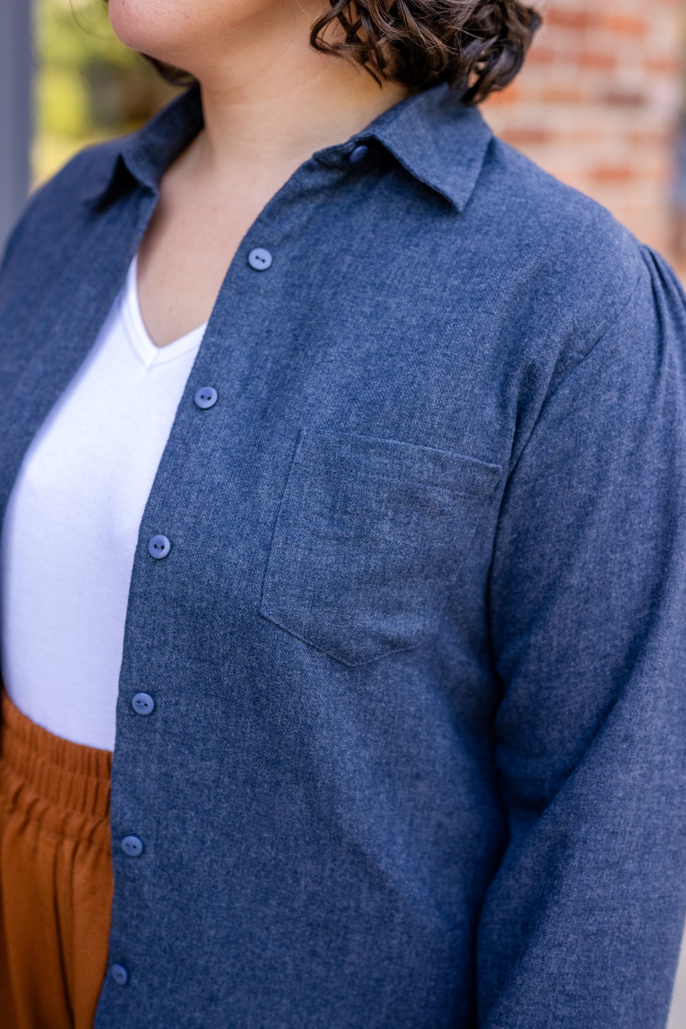 Heathered Military Green Long Sleeve V-Neck Knit Top created using an amazingly soft, 100% cotton leftover knit fabric. Perfect to wear under one of our cardigans or joggers for lounging.