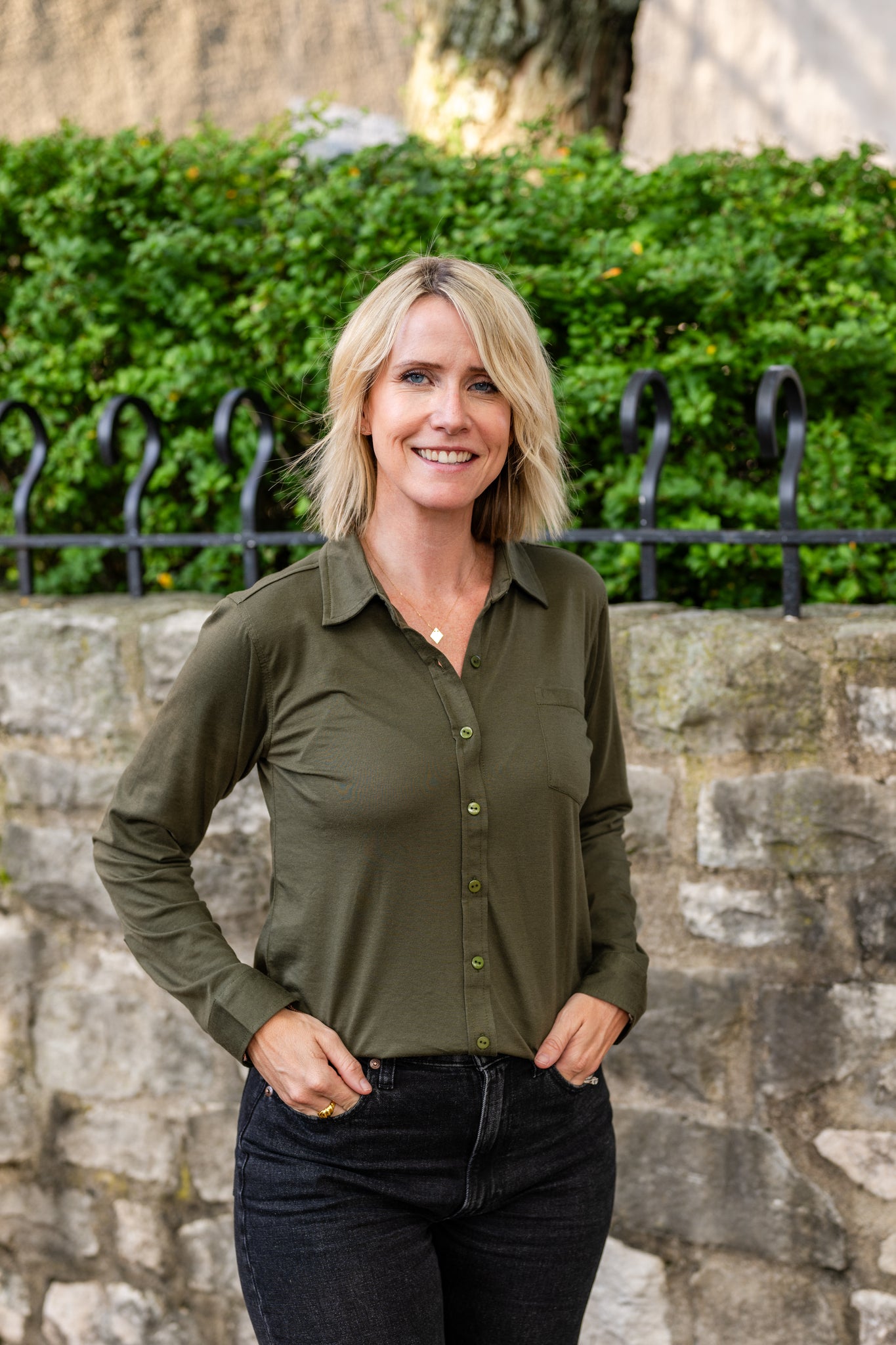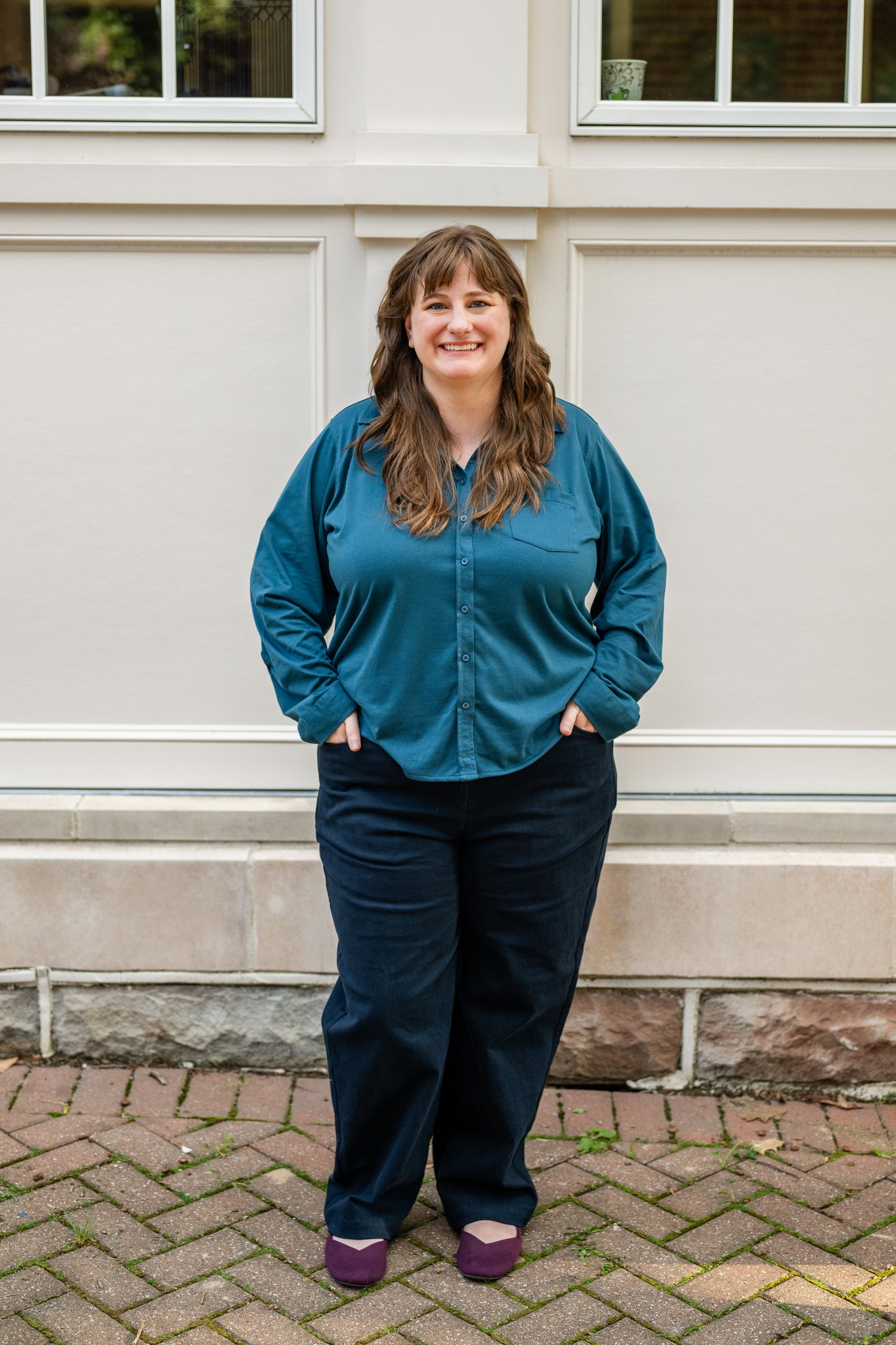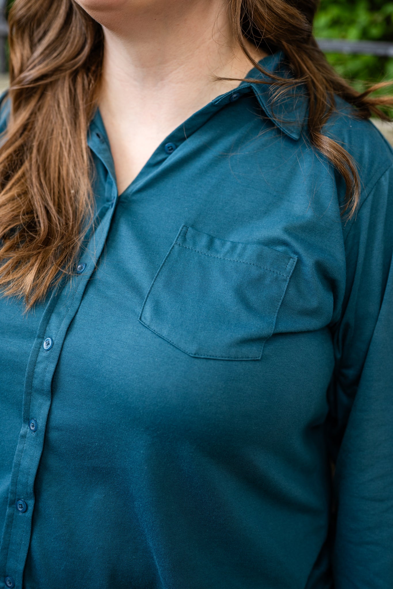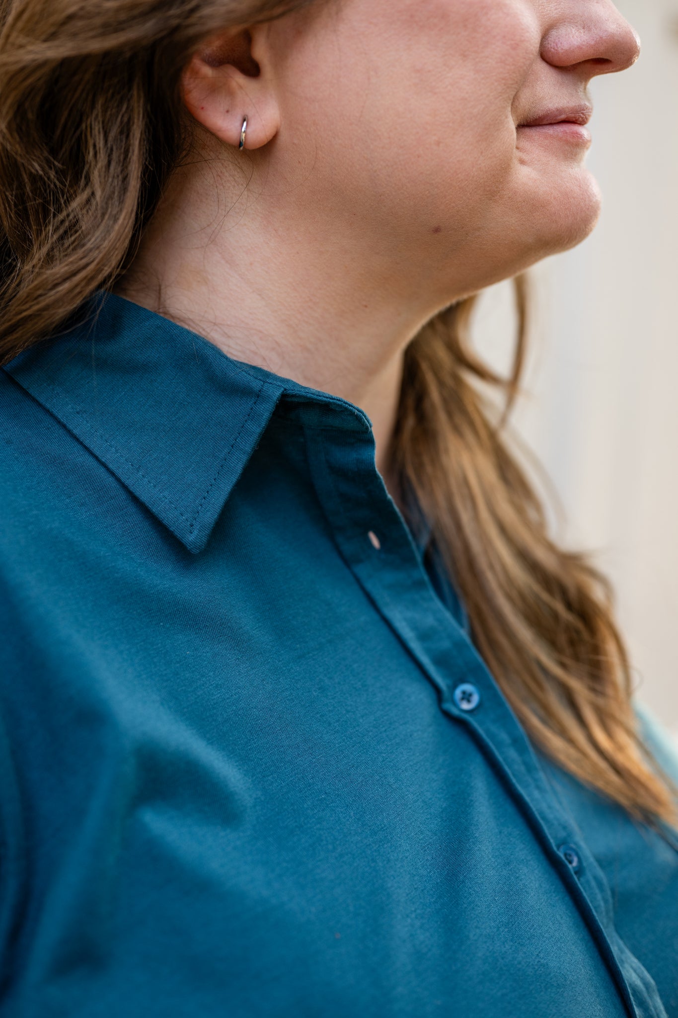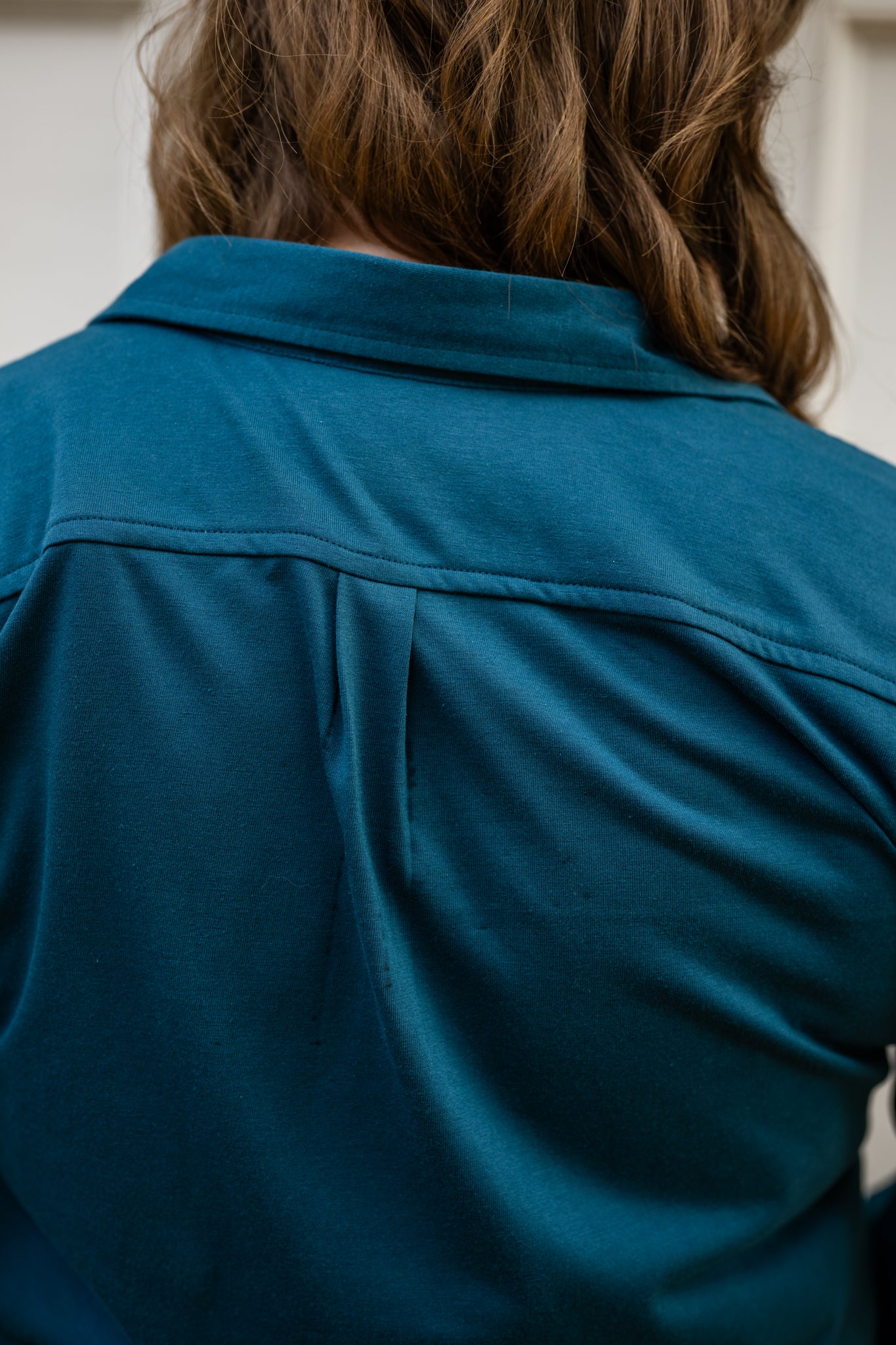 Classic button-up shirt crafted from soft brushed 100% cotton knit surplus fabric. Features a back yoke, button cuffs, and triangular collar for timeless style and comfort.