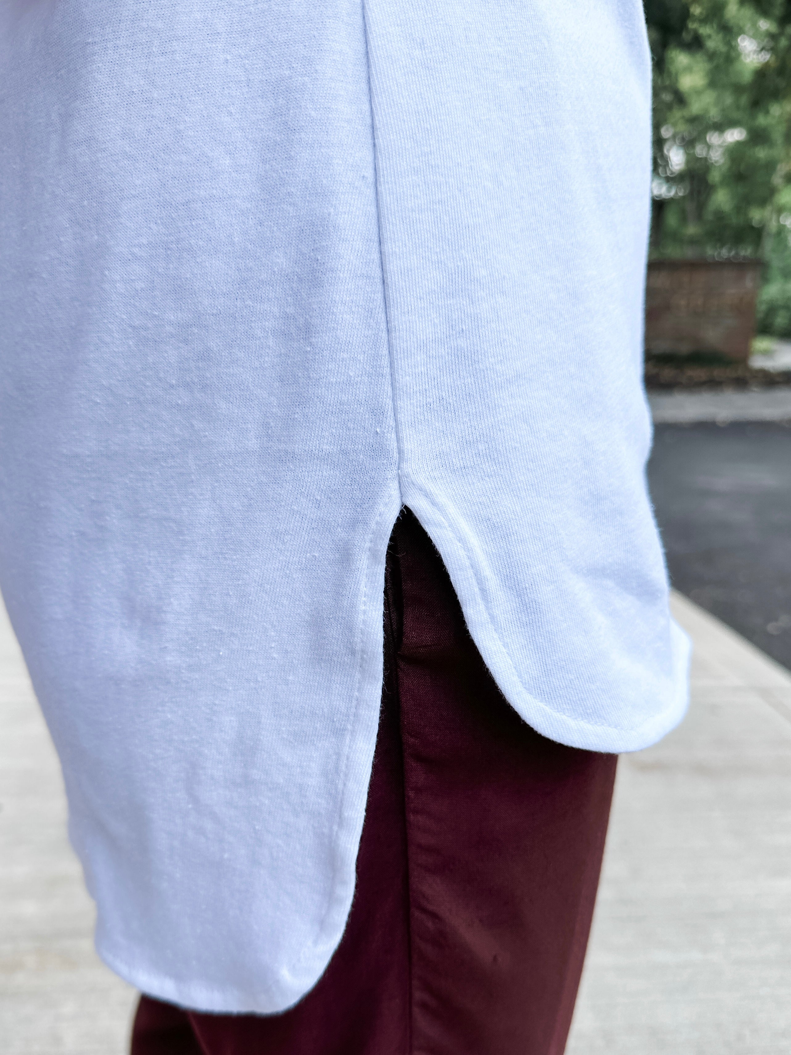 - Hi-low tunic length - wear tucked or untucked