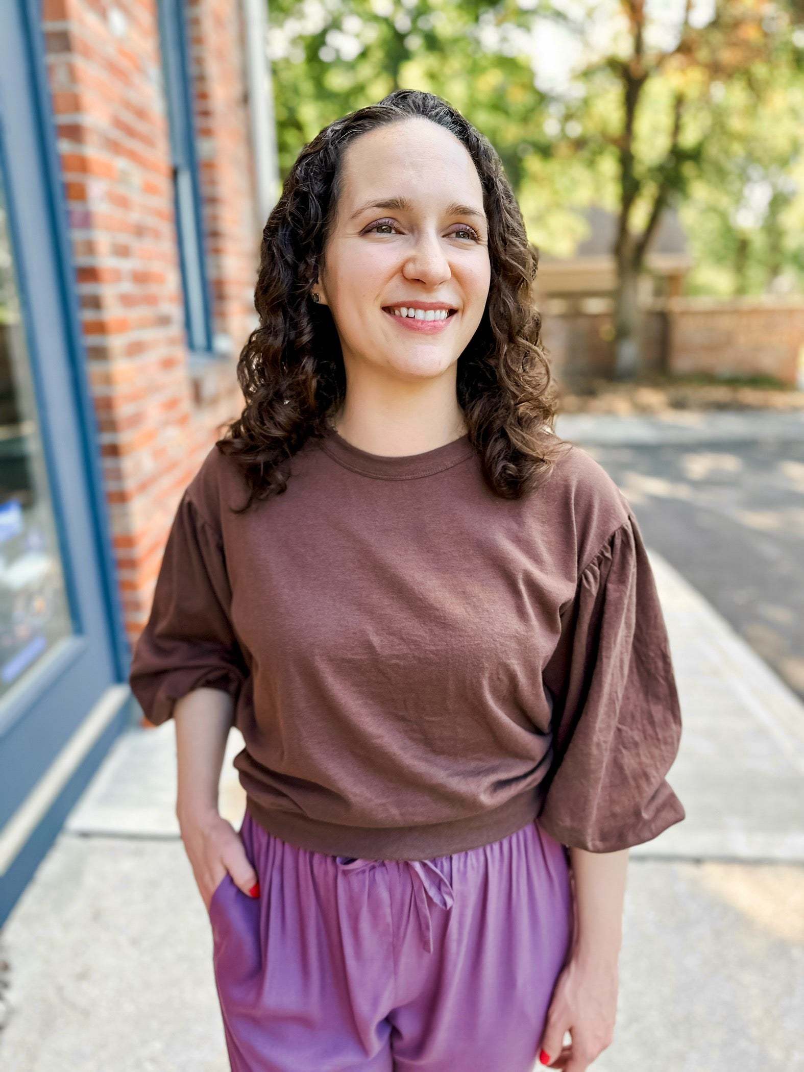The Brooklyn Pull Over Top combines comfort and style with romantic puff sleeves and a relaxed fit that works for any occasion.