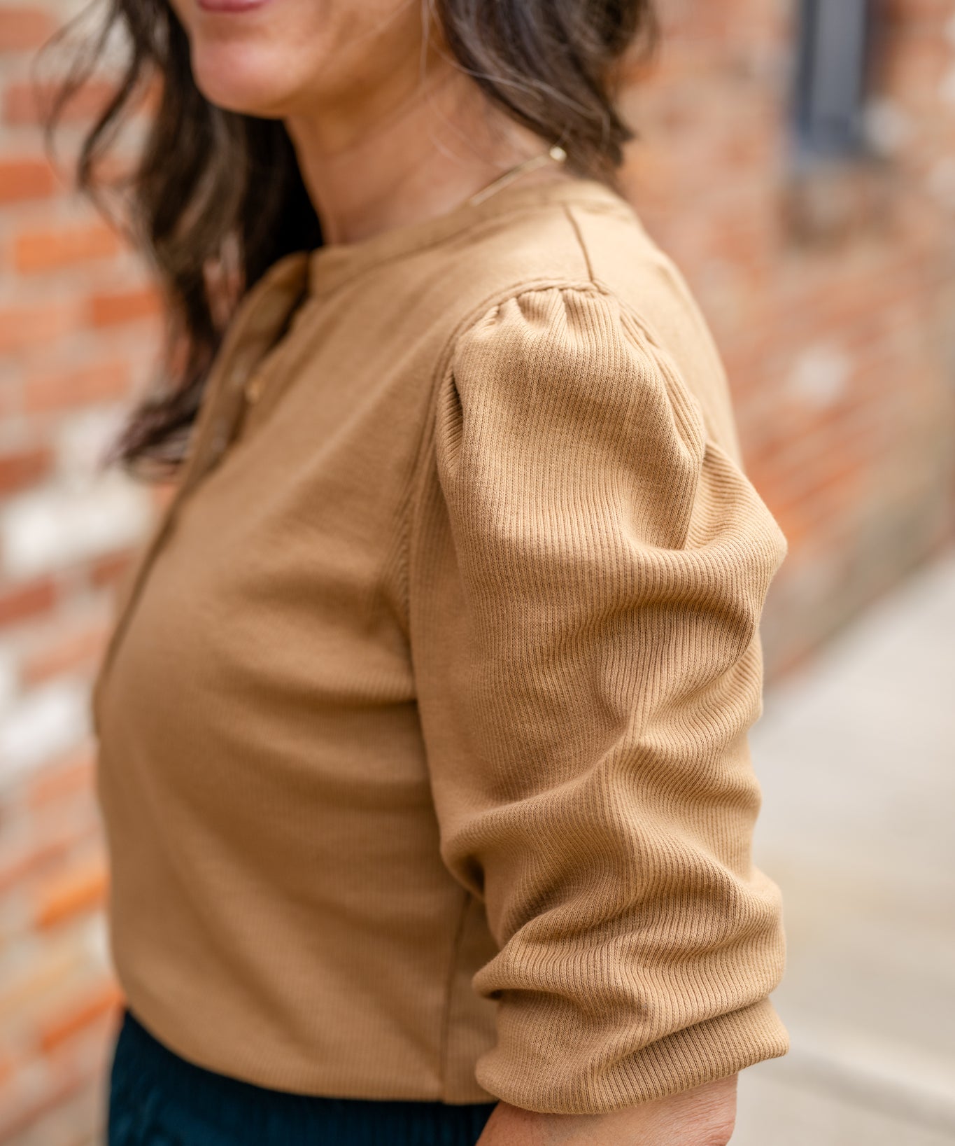 Rib Puff Sleeve Henley Top