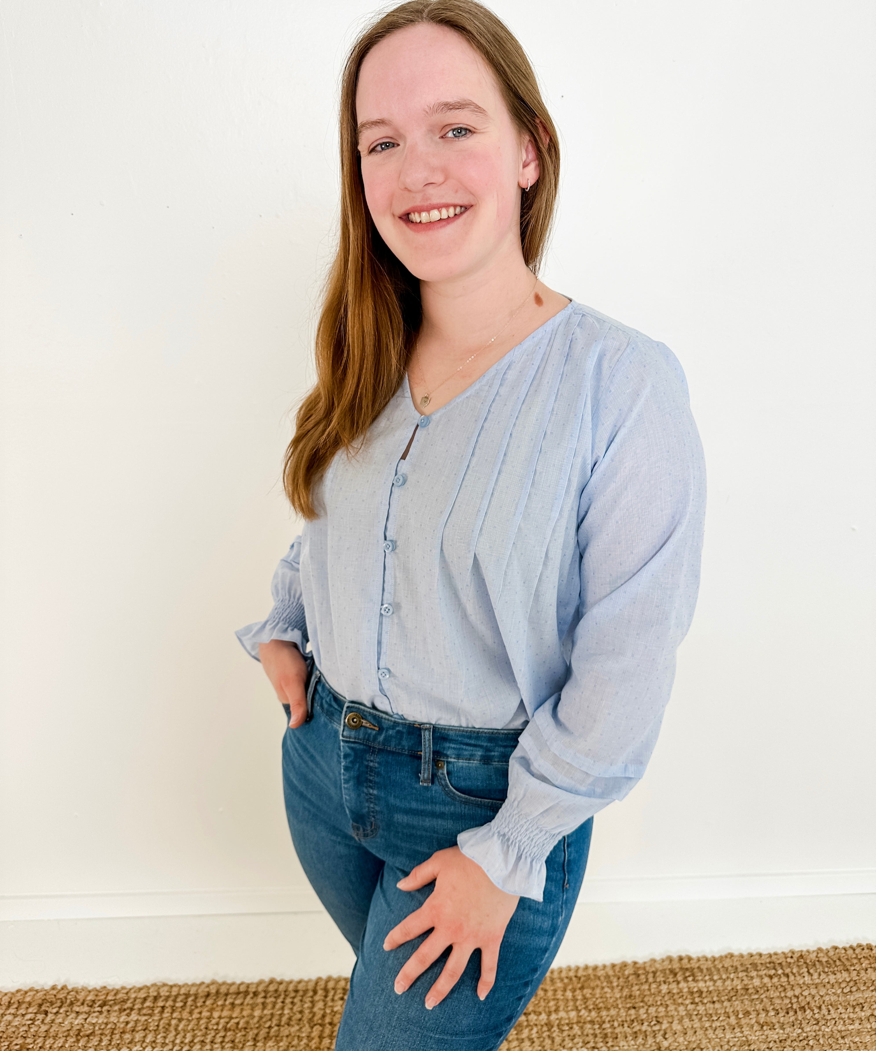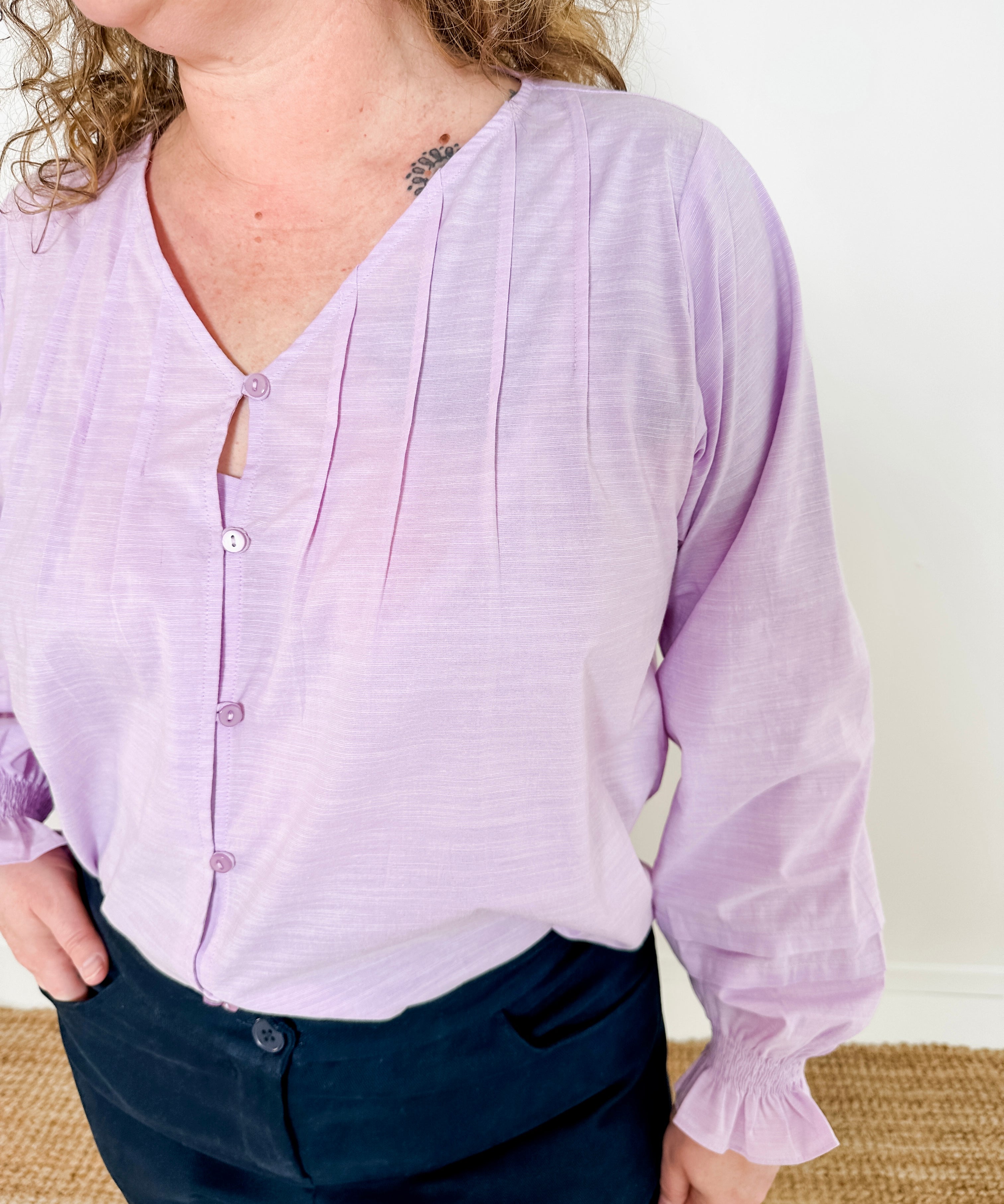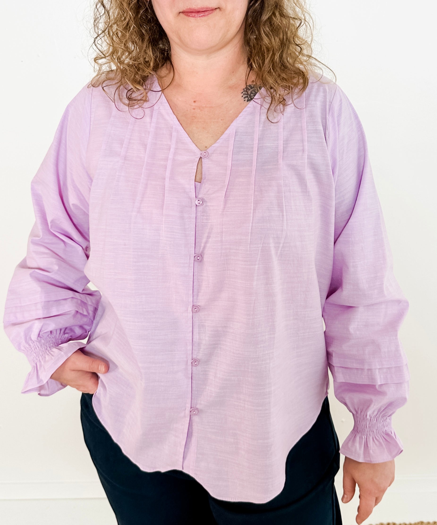 Pleated Button-Up Blouse