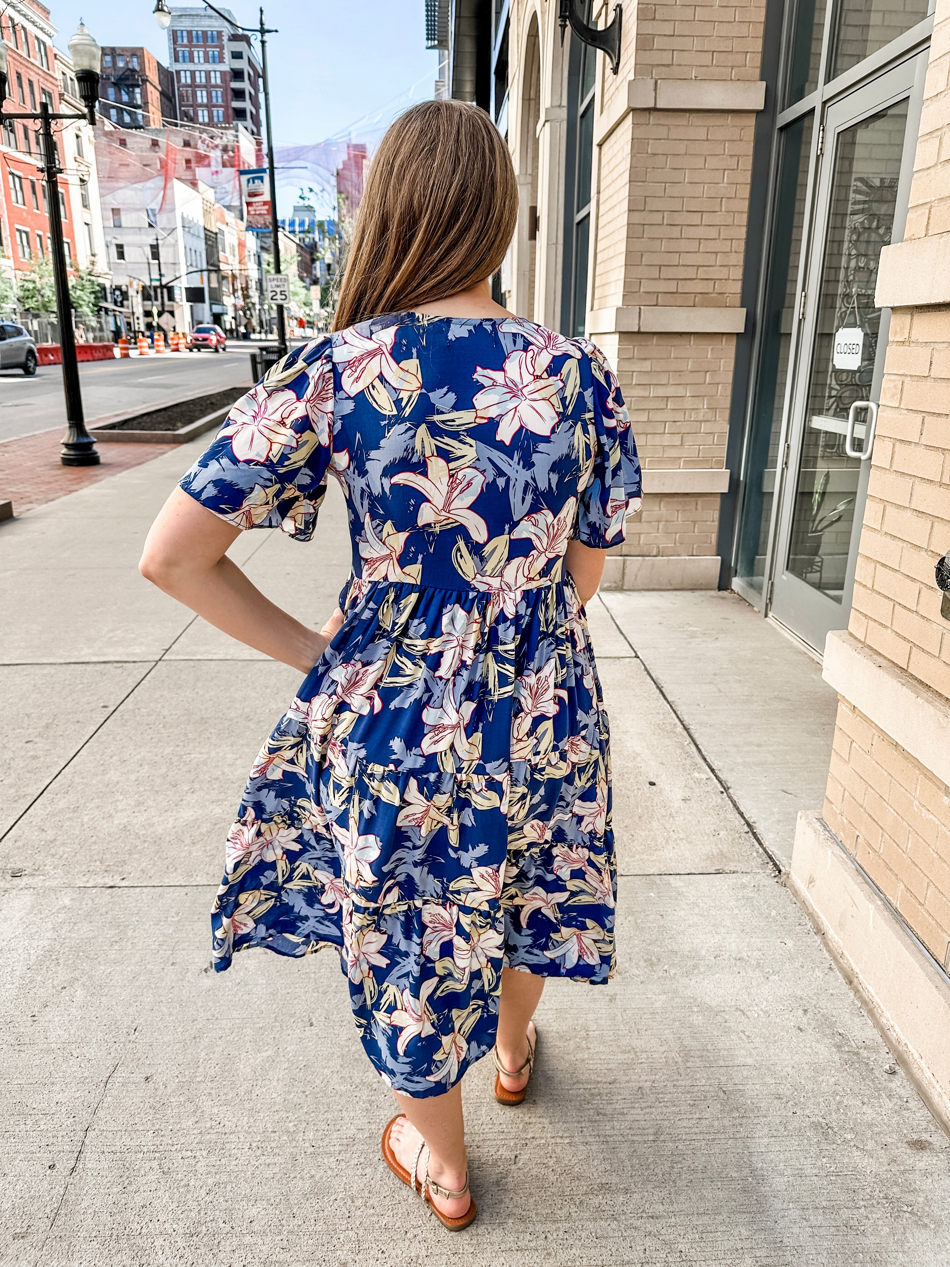 The Florence Midi Dress effortlessly transitions from day to night, making it your go-to piece for any occasion. Dress it up for summer weddings and graduations with heels and statement jewelry, or keep it casual for everyday wear with sandals and a denim jacket. The flattering tiered silhouette, flutter sleeves, and front slit create a feminine look that works for parties, brunch dates, or office events.
