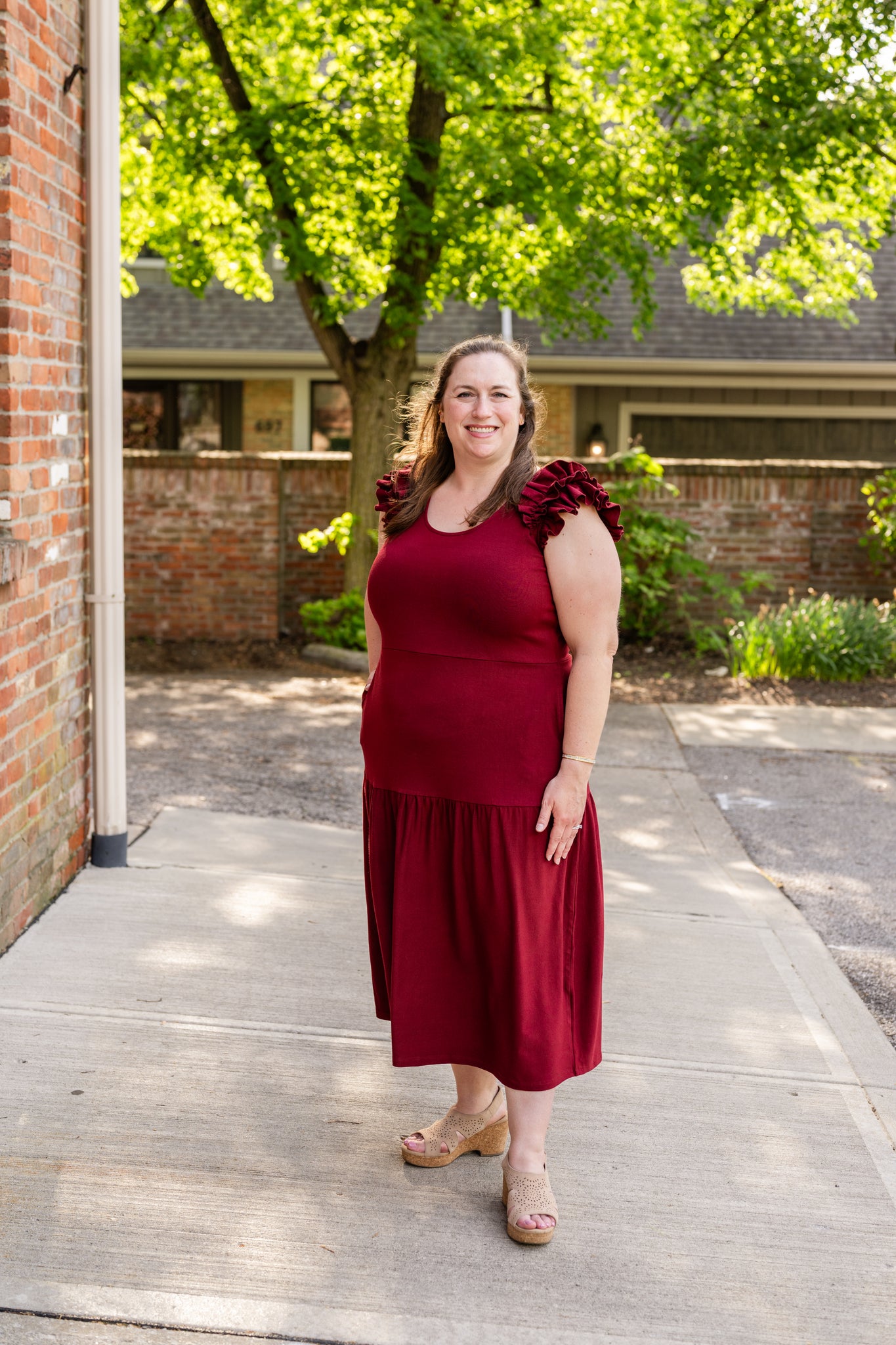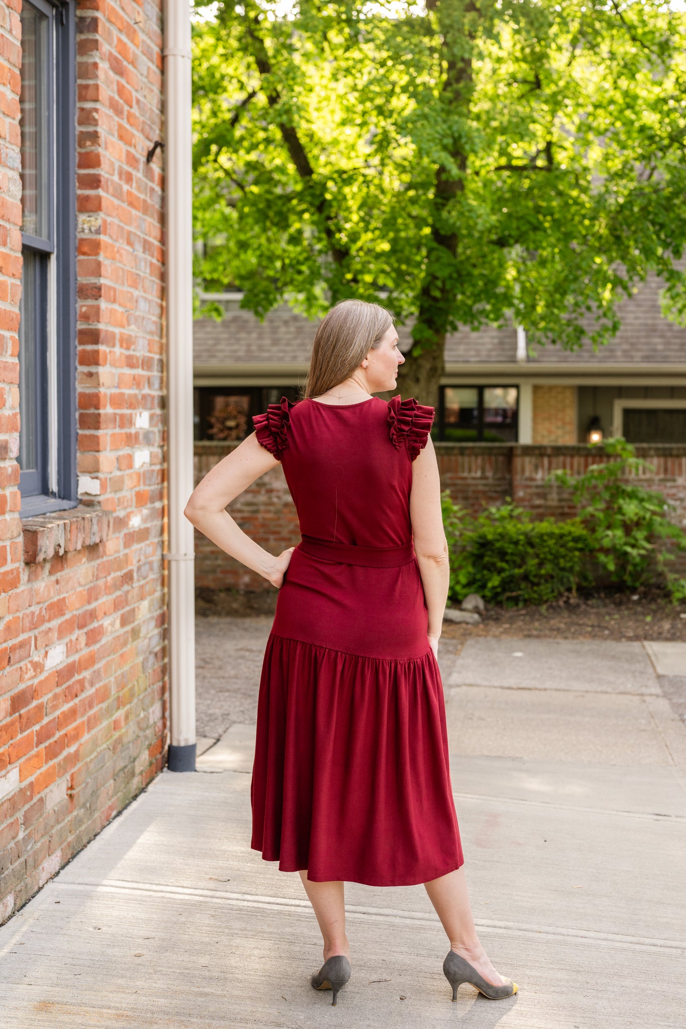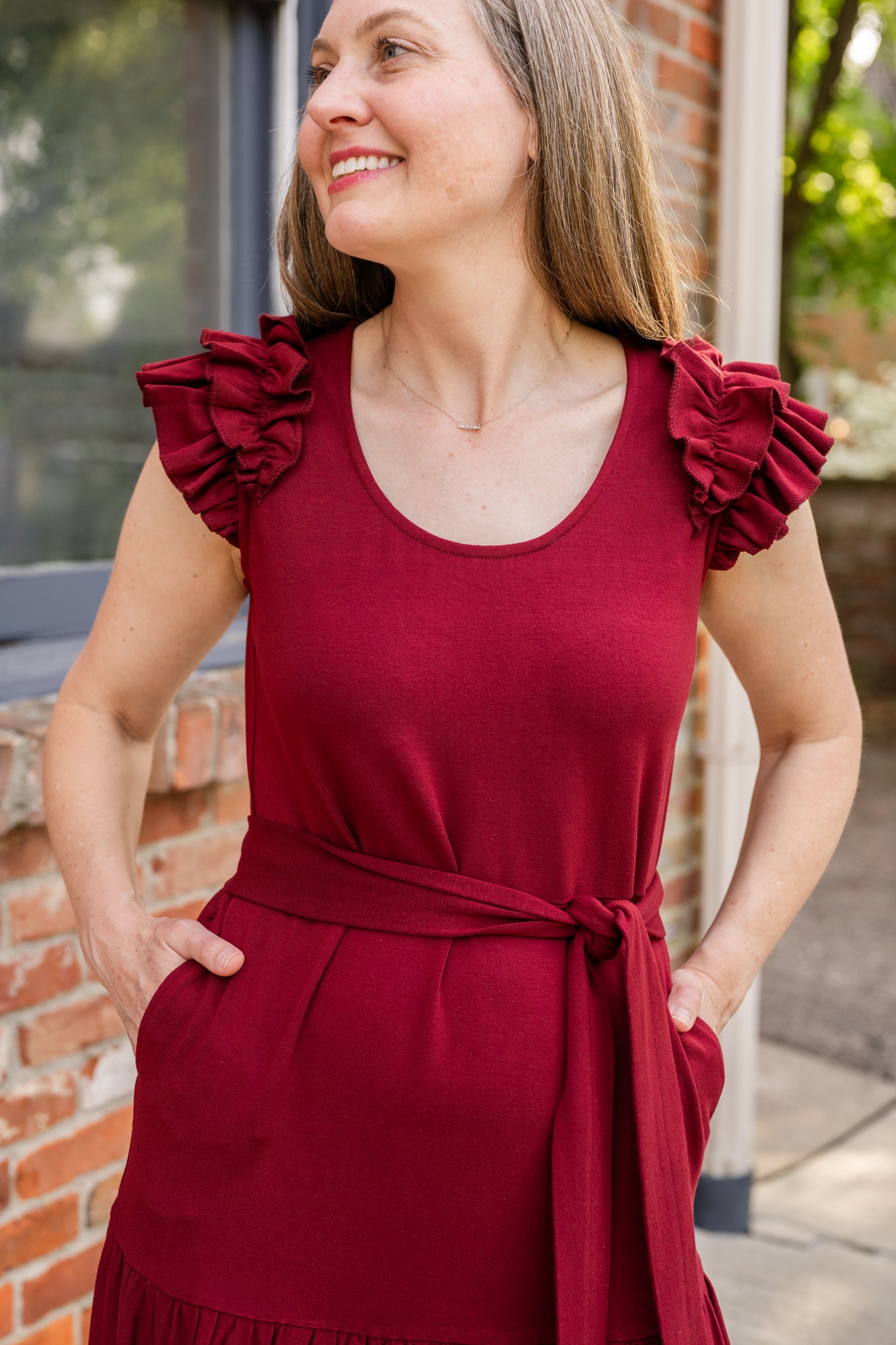 A charming tiered dress featuring cascading ruffle shoulders and a flattering A-line silhouette. Made from 100% cotton jersey knit with thoughtful details throughout.