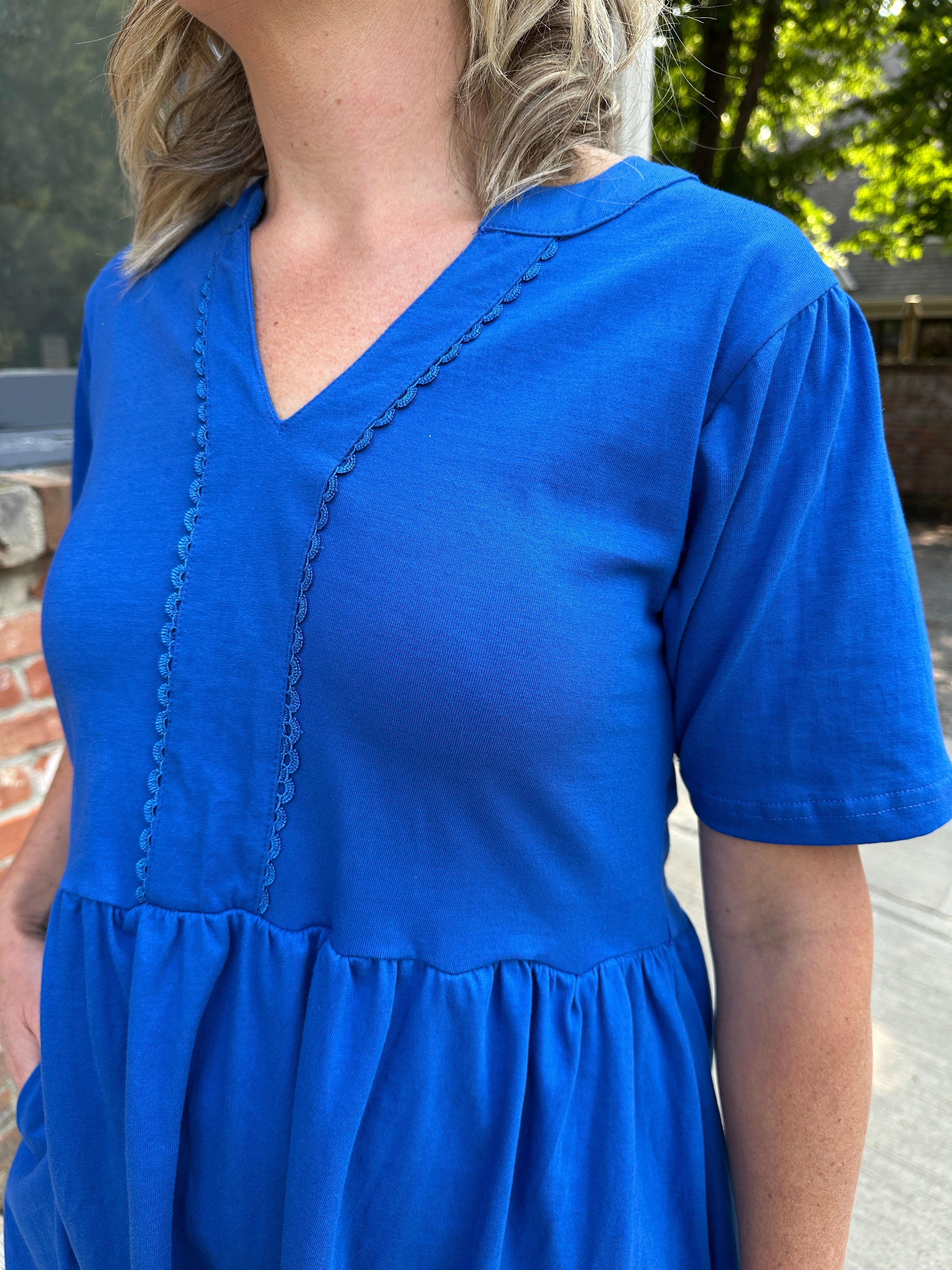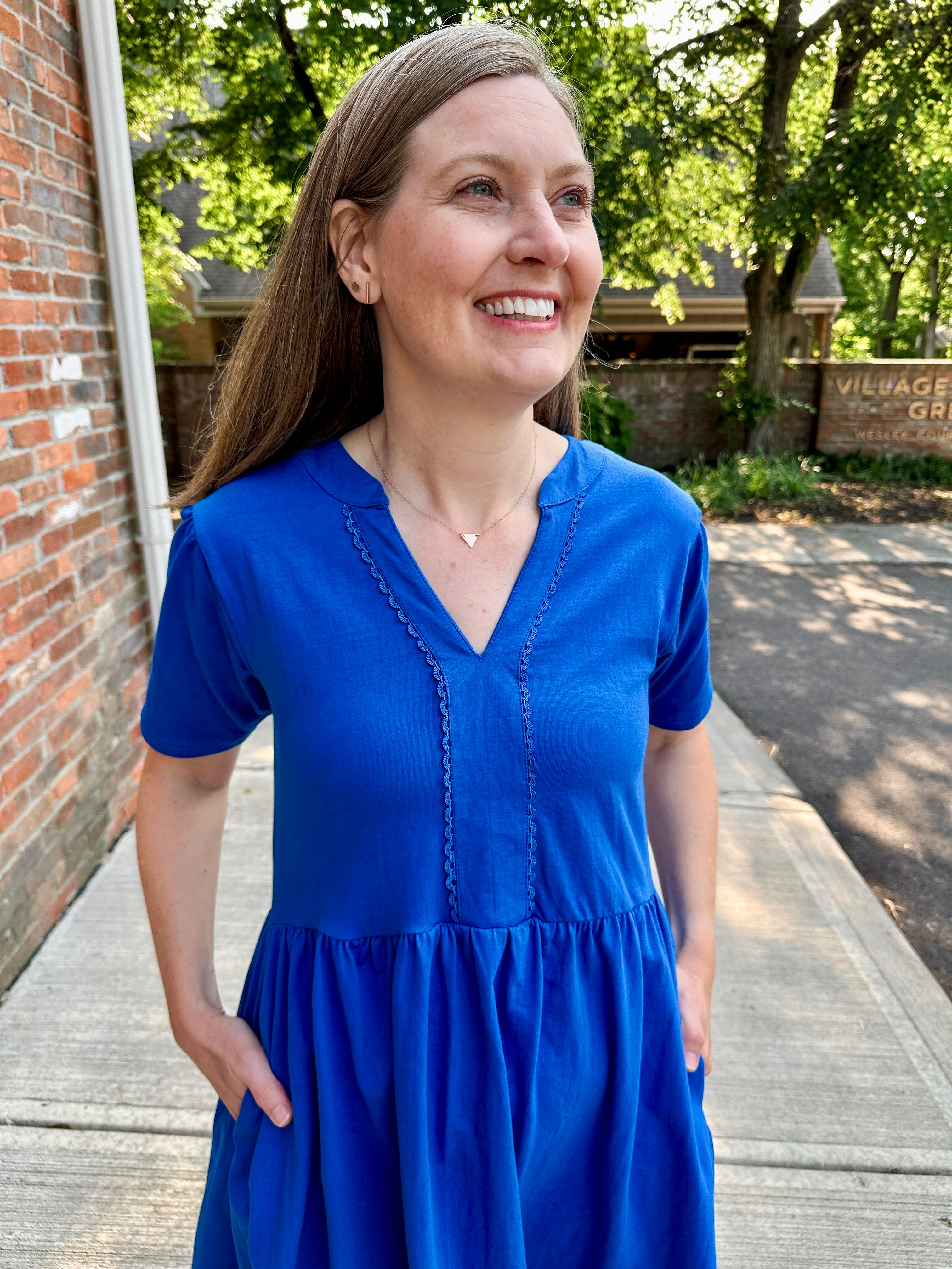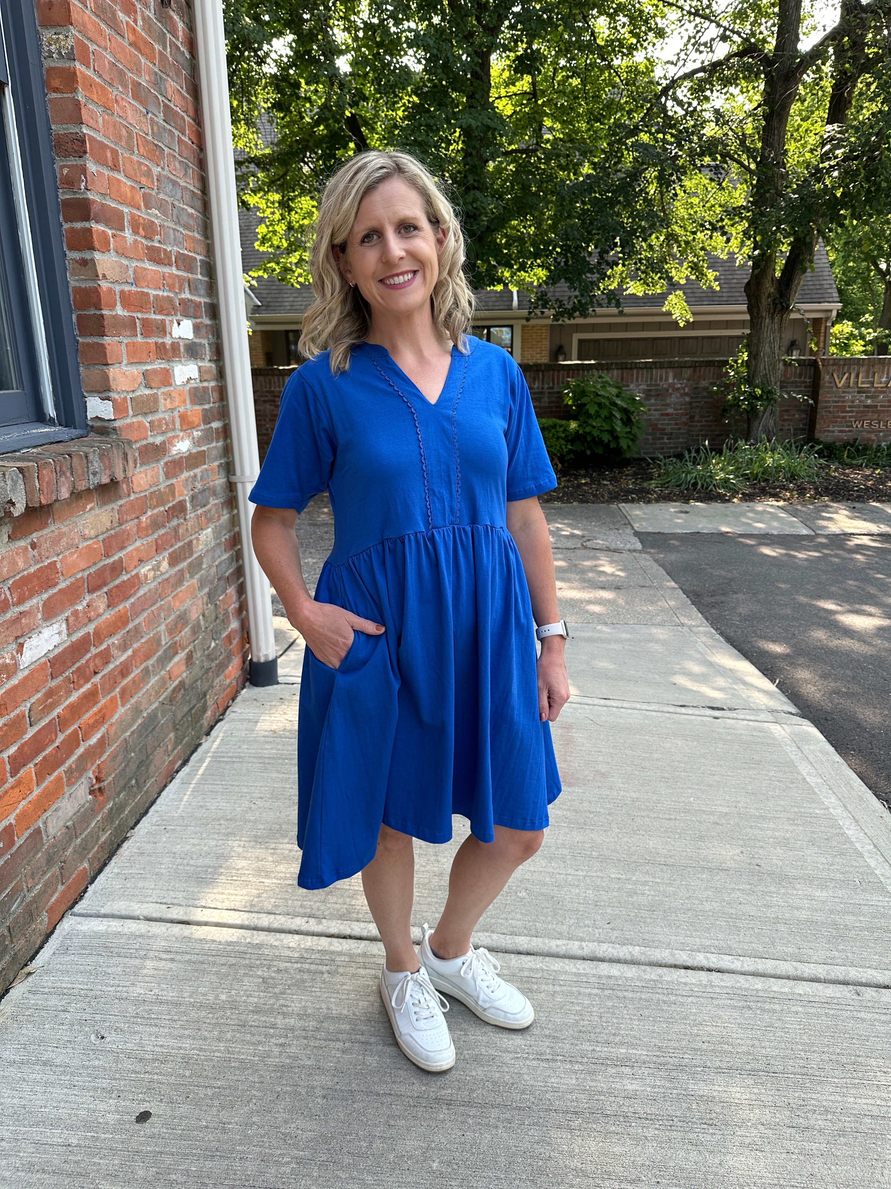 The Sunset Knit Dress transitions from morning coffee runs to evening gatherings in this remarkably versatile dress. The lace trim bodice and knee-length silhouette create a flattering foundation that works for any setting. Dress it up with heels and jewelry for date night, or keep it casual with sneakers for weekend errands. From the office to festivals, this sustainable dress adapts to your lifestyle.