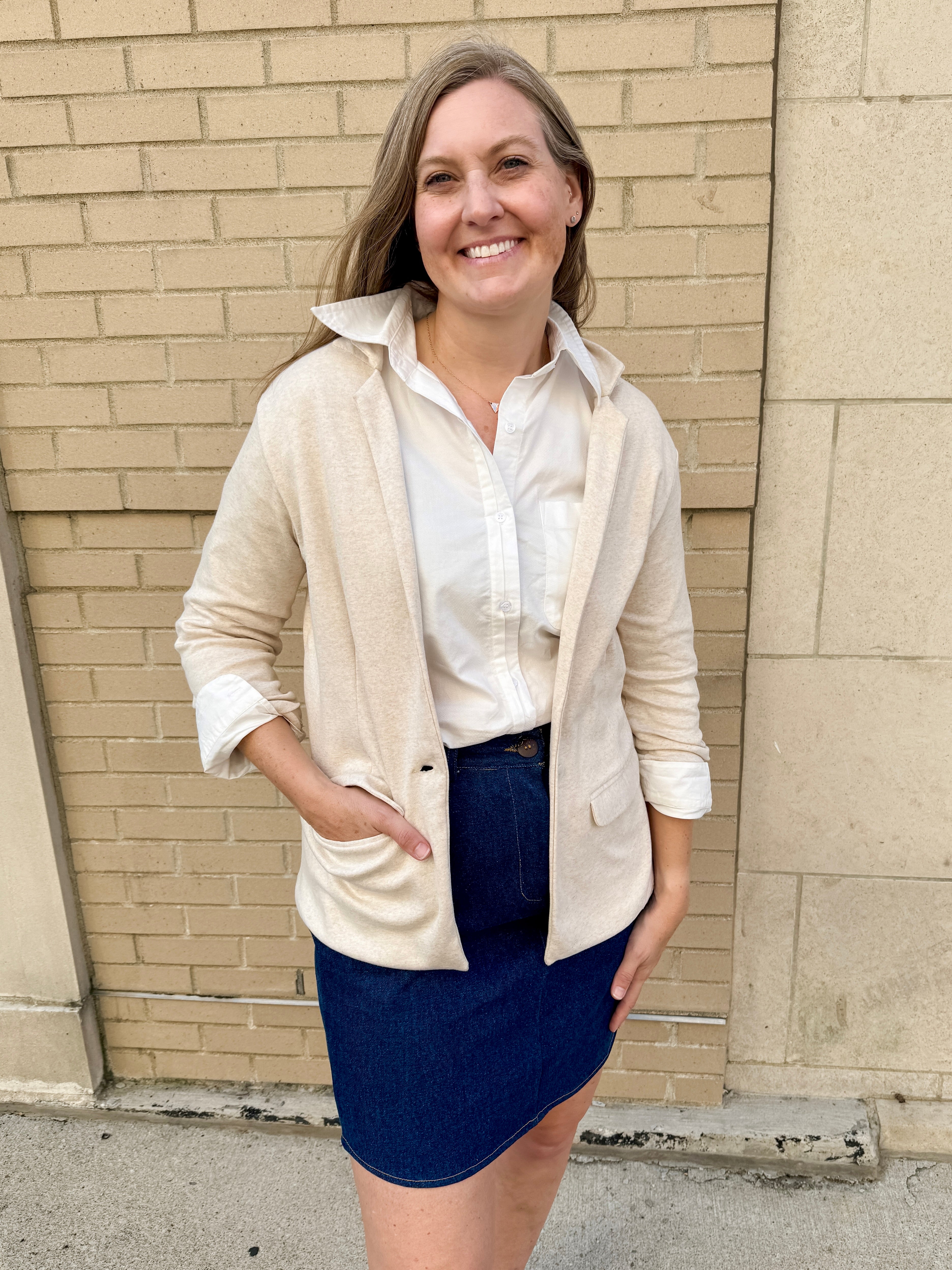 Discover the perfect blend of comfort and sophistication with the Bella Knit Blazer. This versatile piece combines the polished look of a blazer with the cozy feel of your favorite knit.