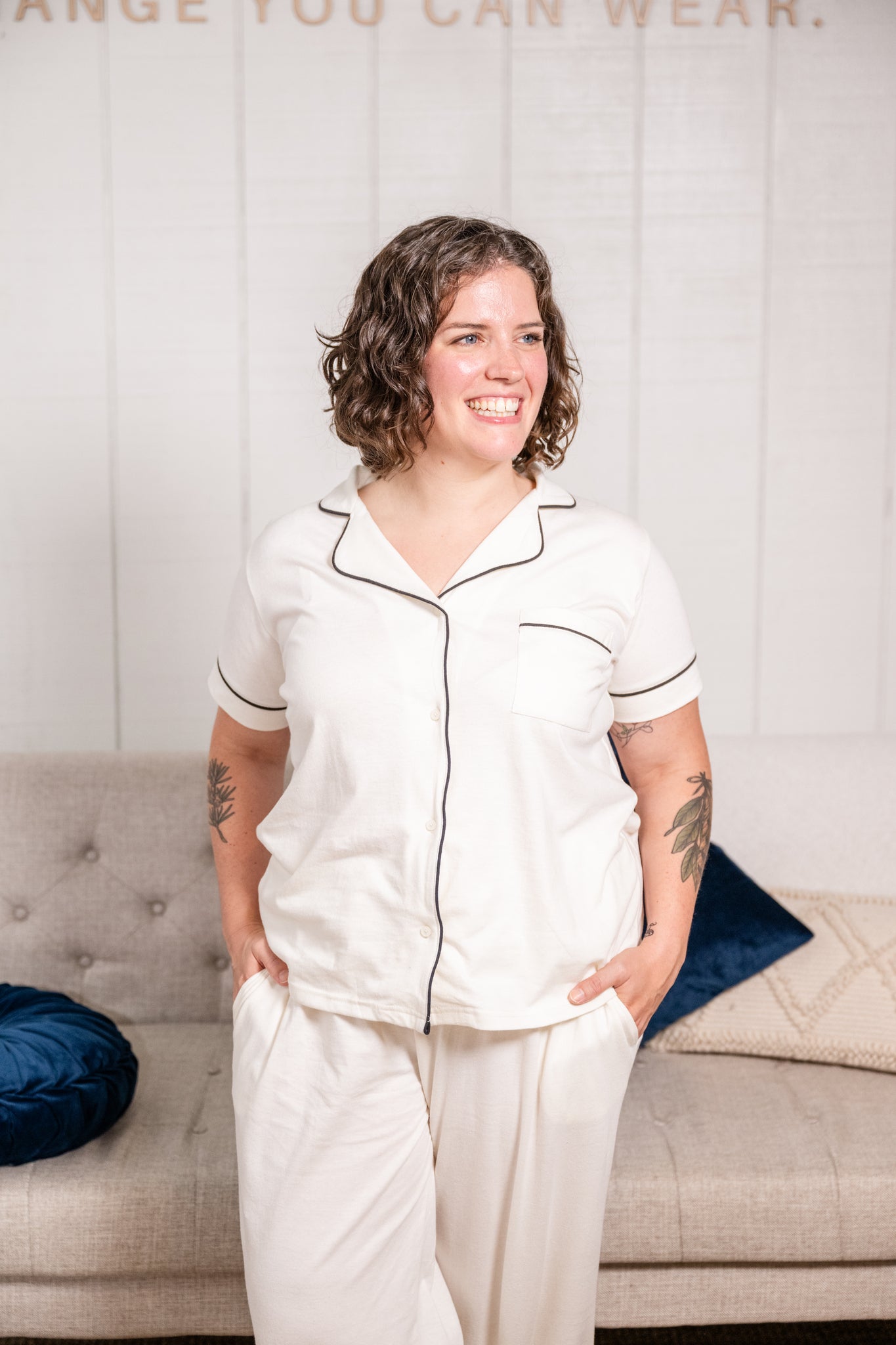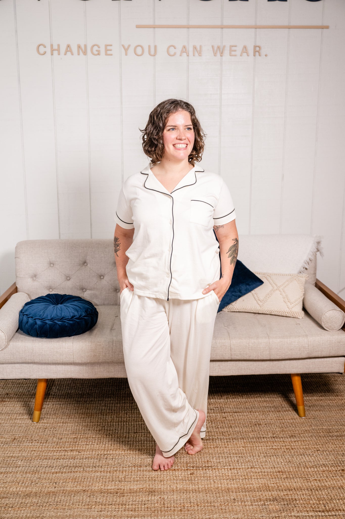 I am SO impressed with the pajama set. I ordered the Ivory color and it is so well made. It is soft and is the perfect weight. They are extremely comfortable. If you are thinking about purchasing them you will not be disappointed; they are wonderful. Thank you Amy and team.