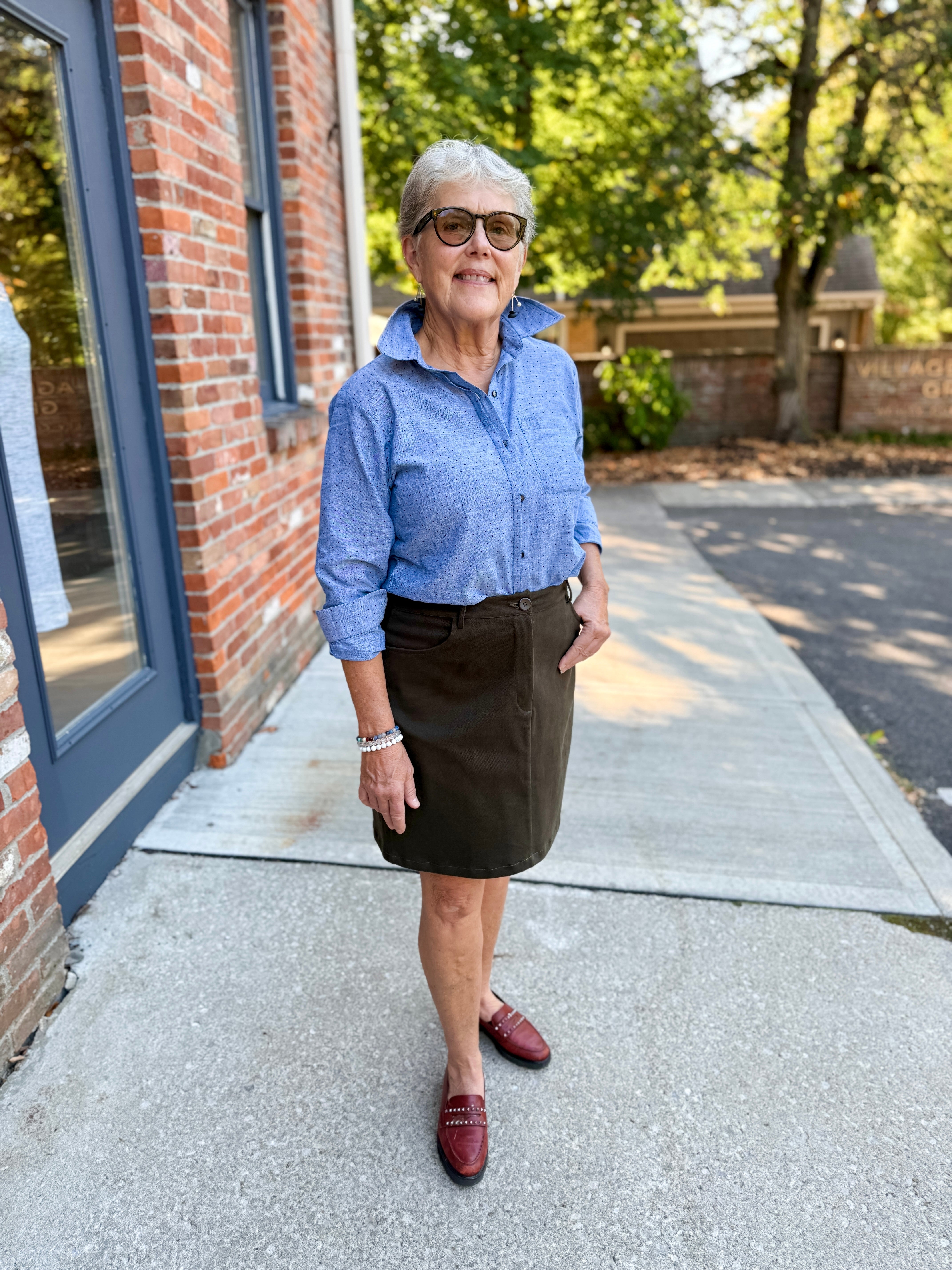 Classic button-up shirt crafted from sustainable chambray cotton blend surplus fabric. Features a timeless fit with refined details for versatile everyday style.