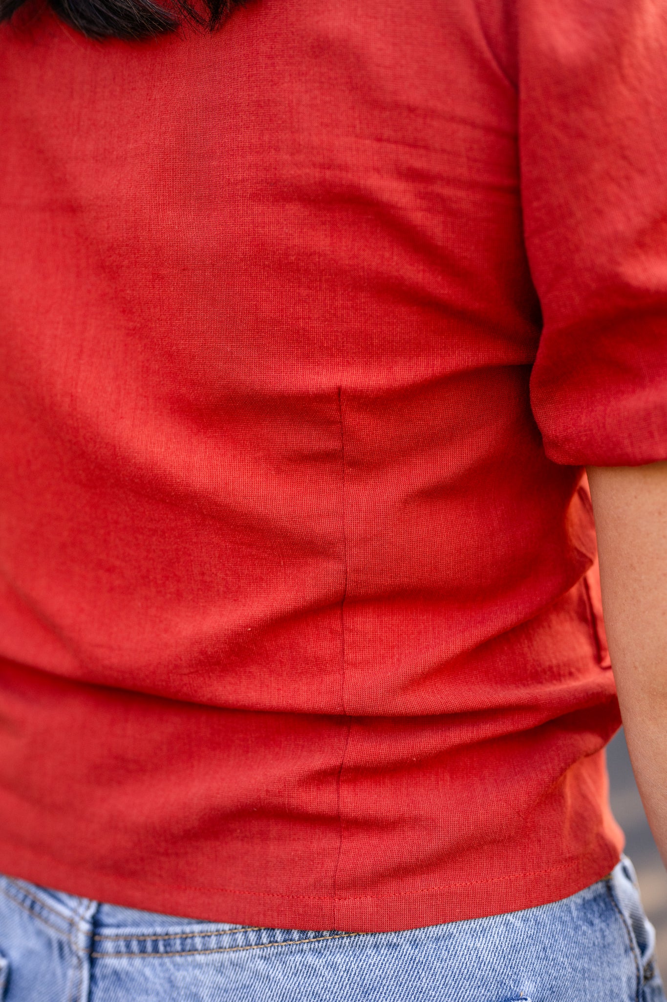 Crafted from surplus cotton and linen fabrics, this lightweight summer blouse combines style with sustainability. Features include: