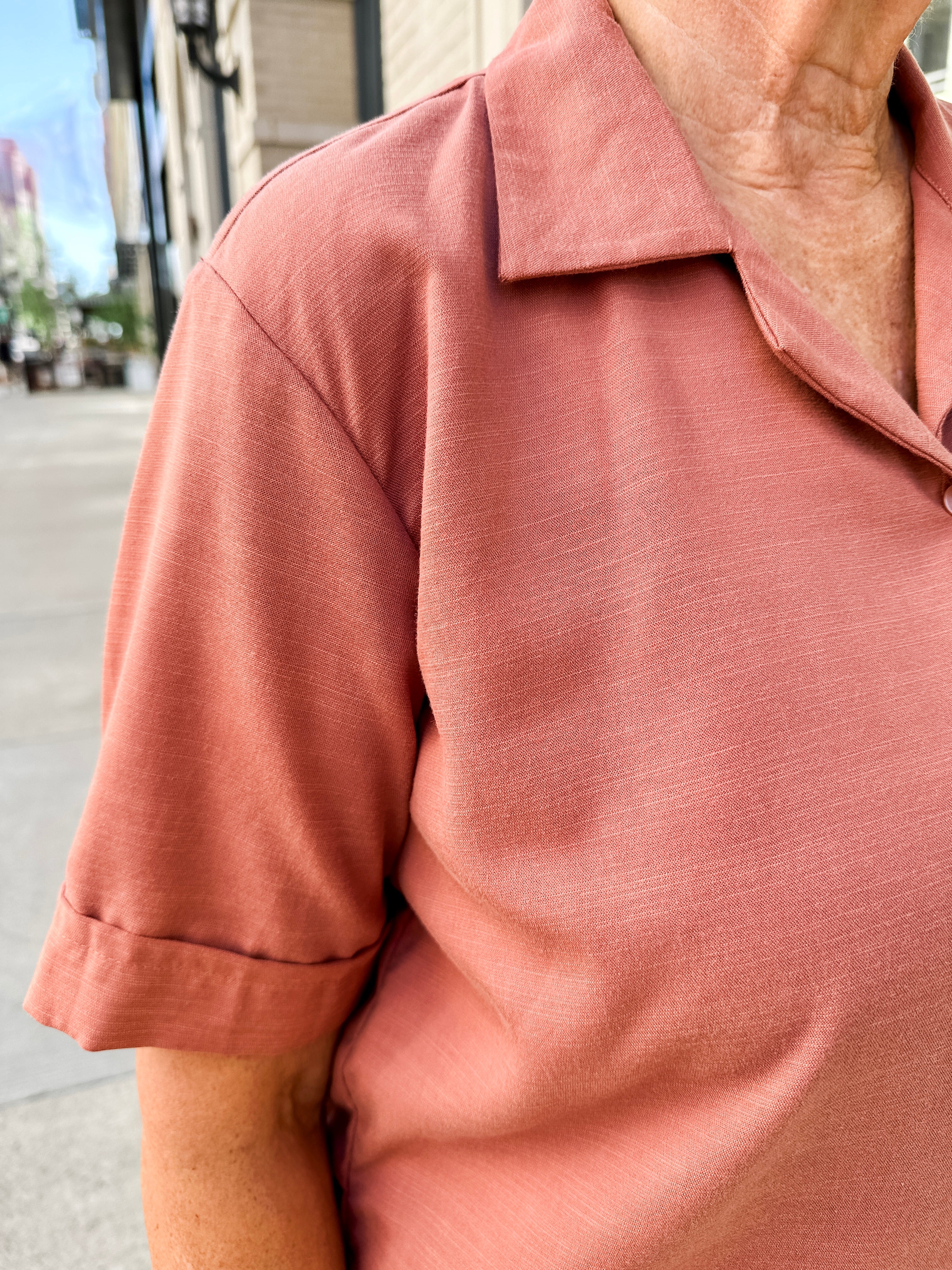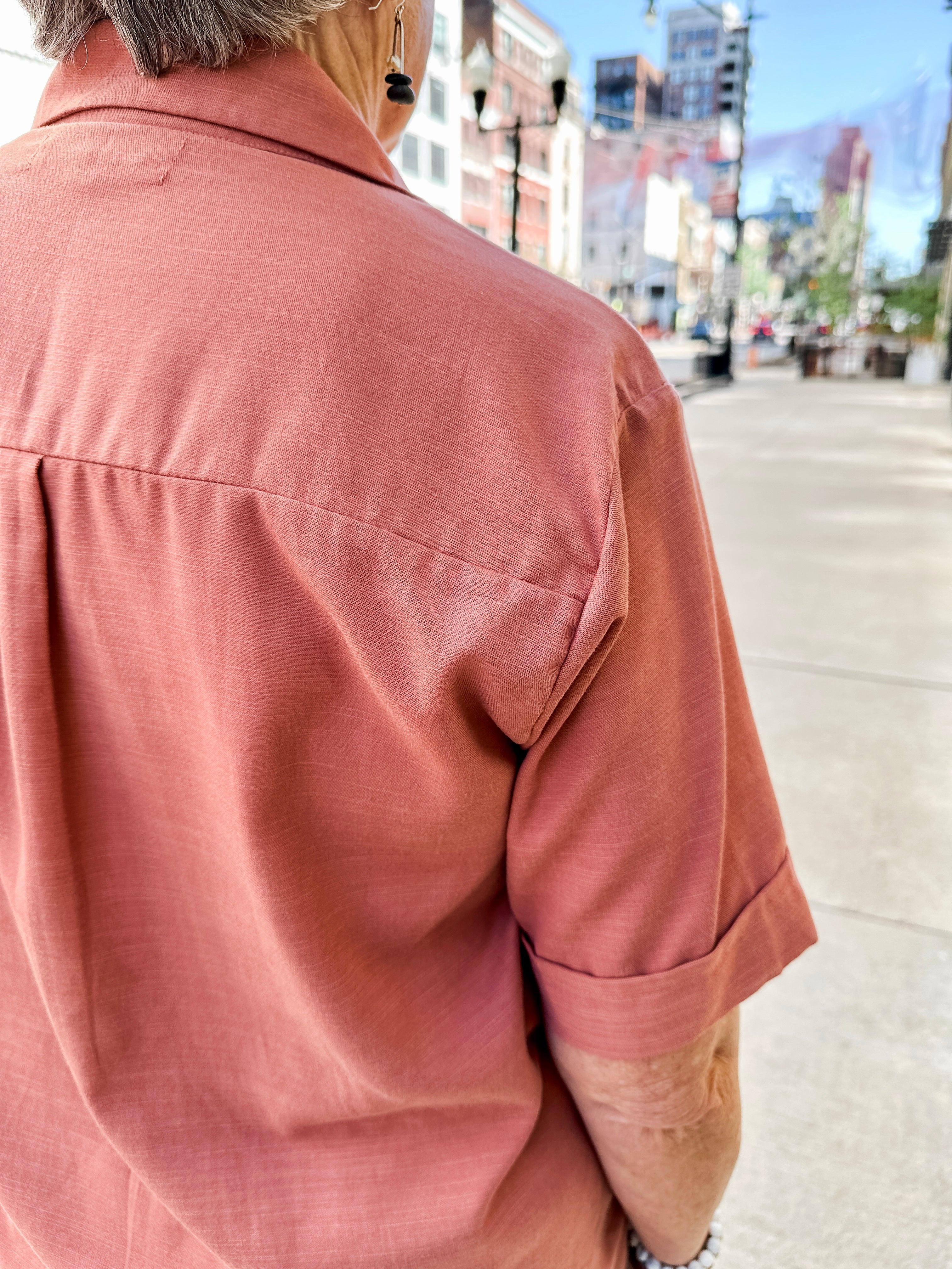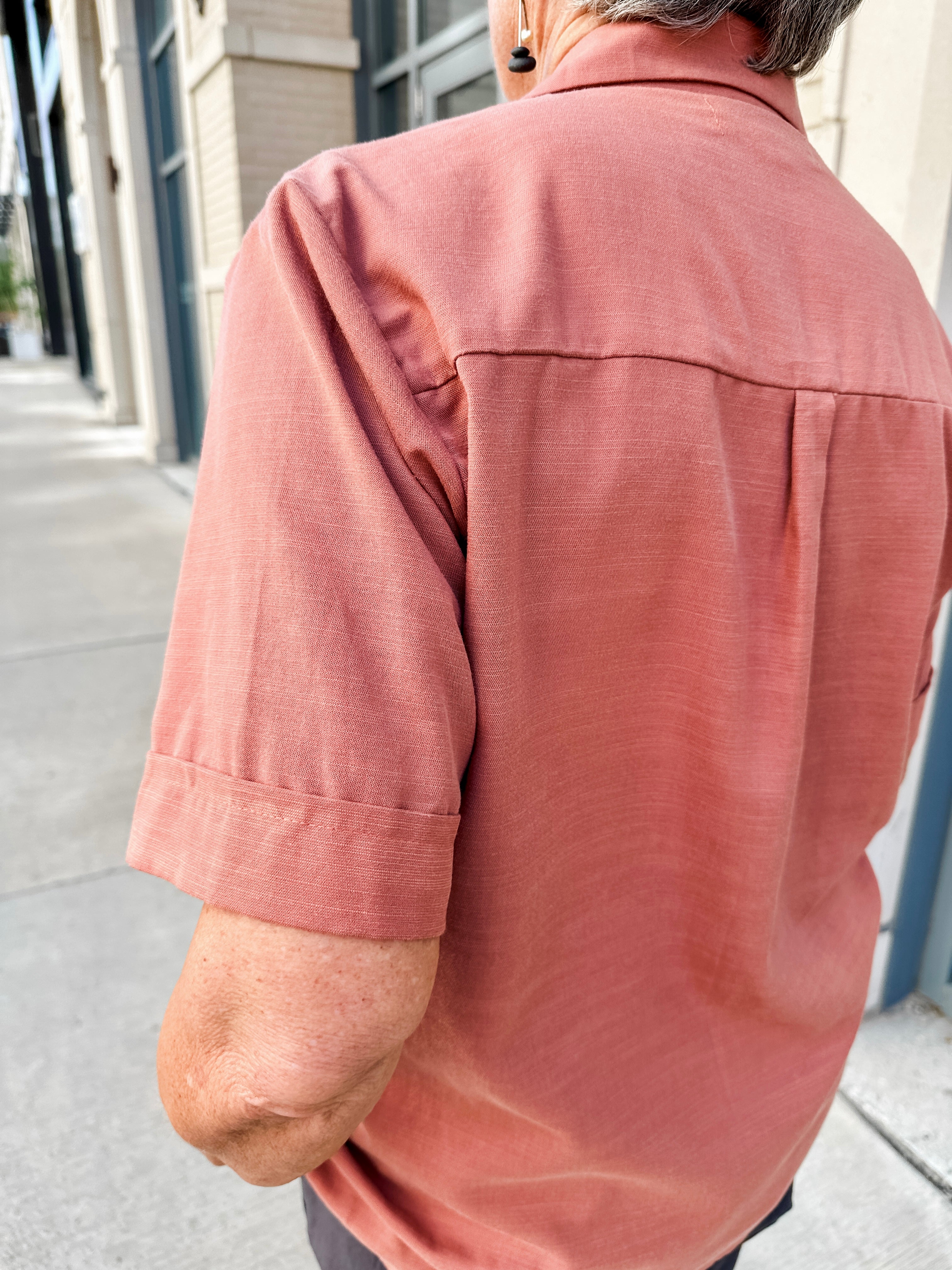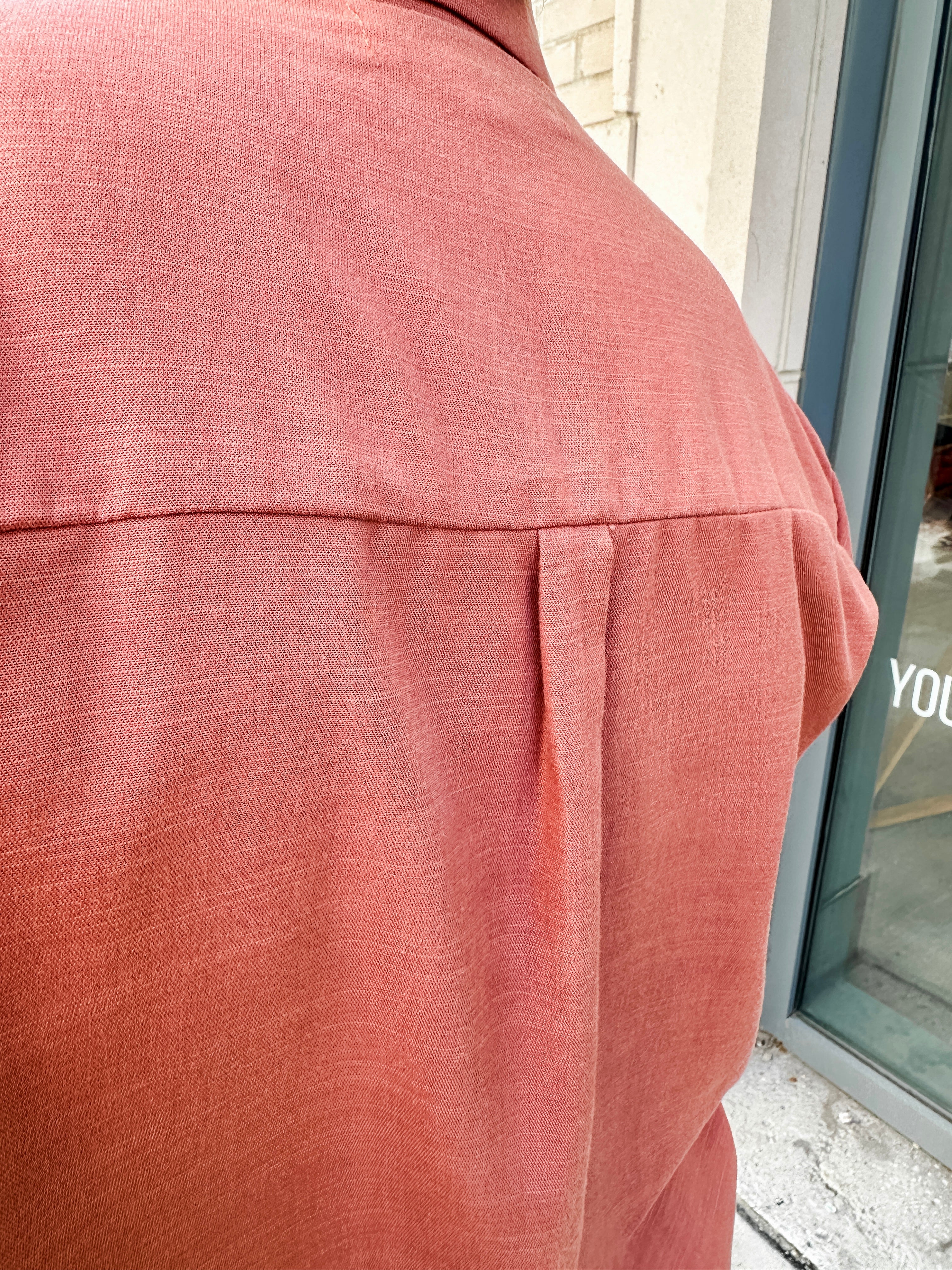 Experience effortless style with this airy Irish cotton blouse. Crafted from 100% surplus Irish cotton, this lightweight button-up features a flattering V-neck collar and relaxed fit that works for any occasion.