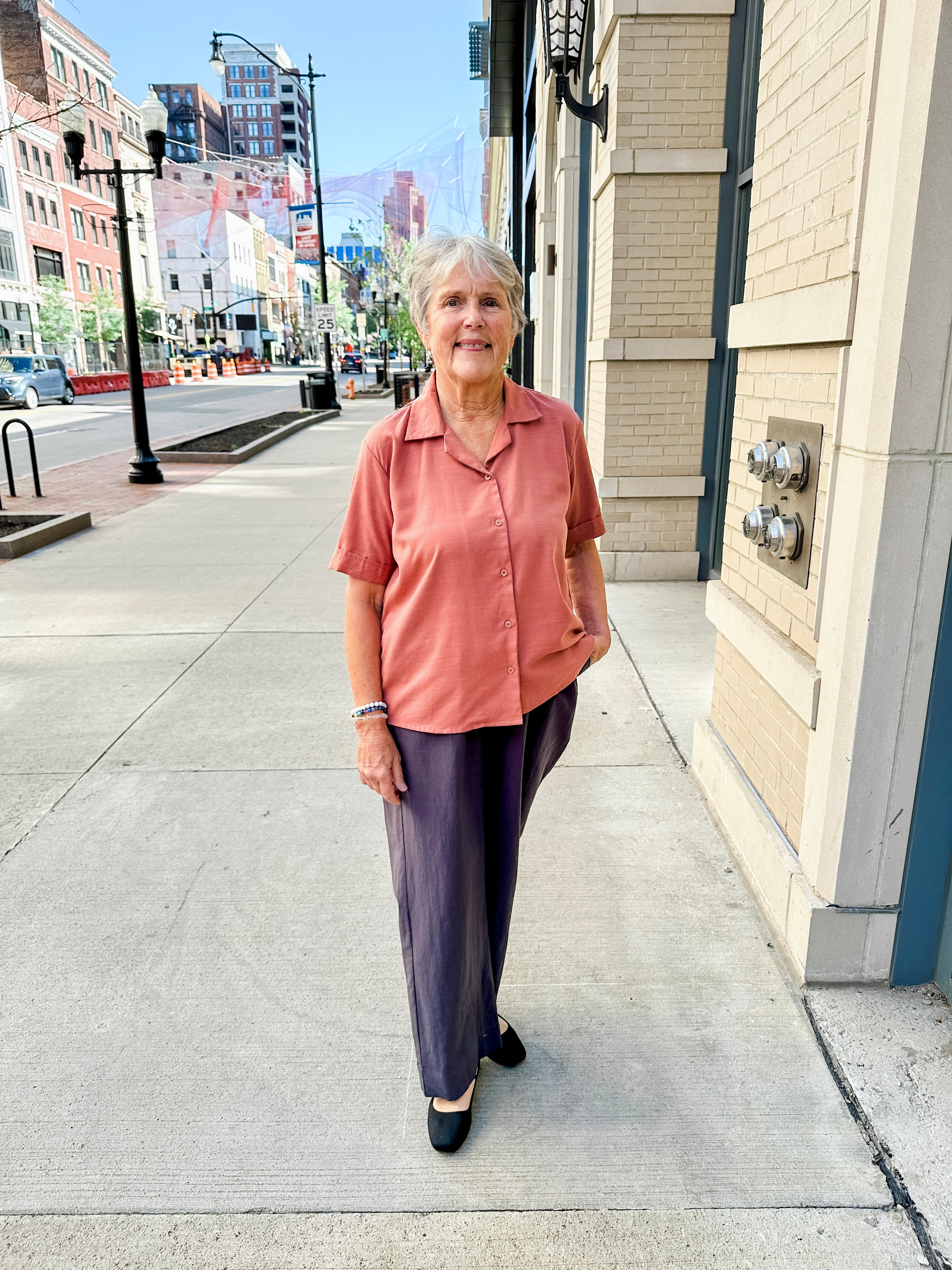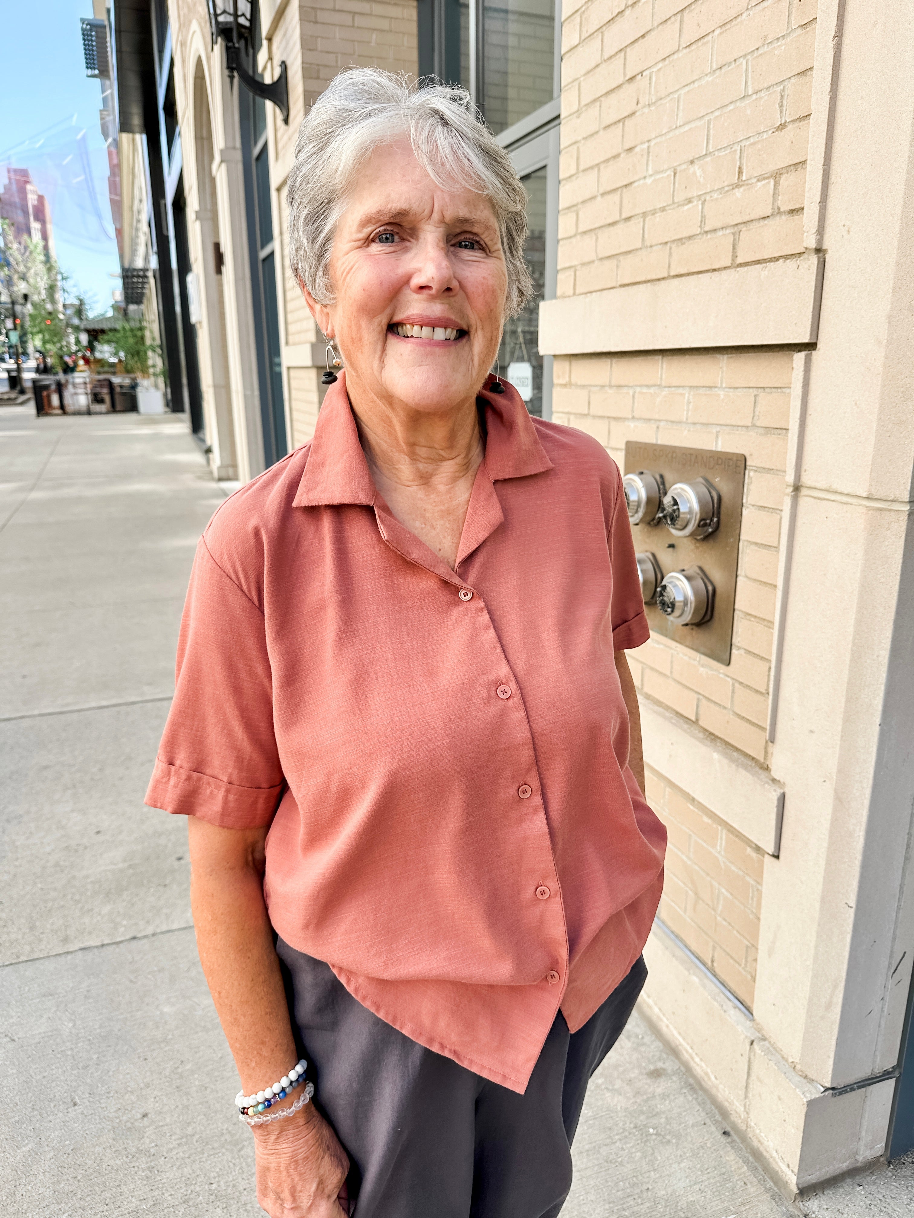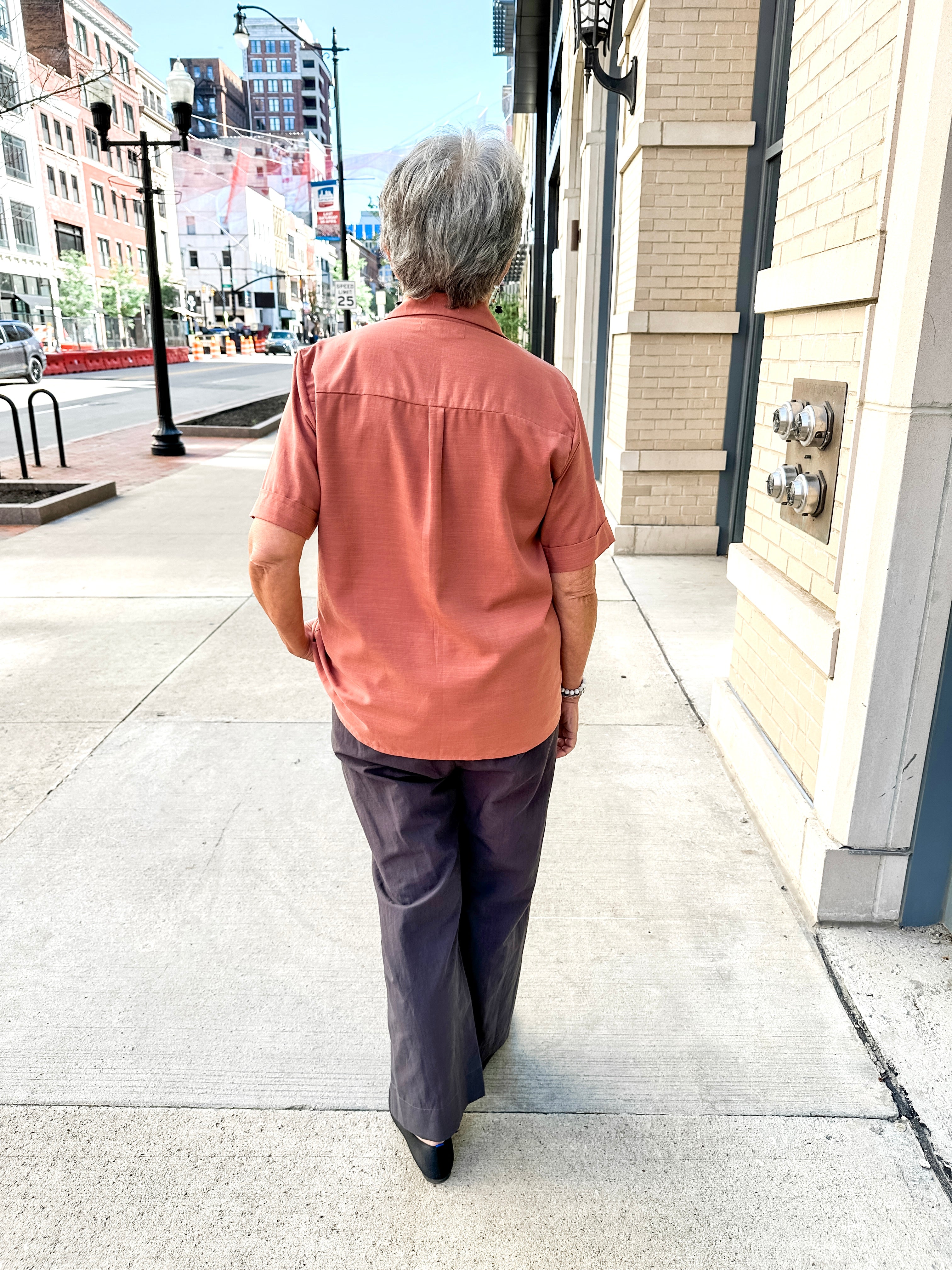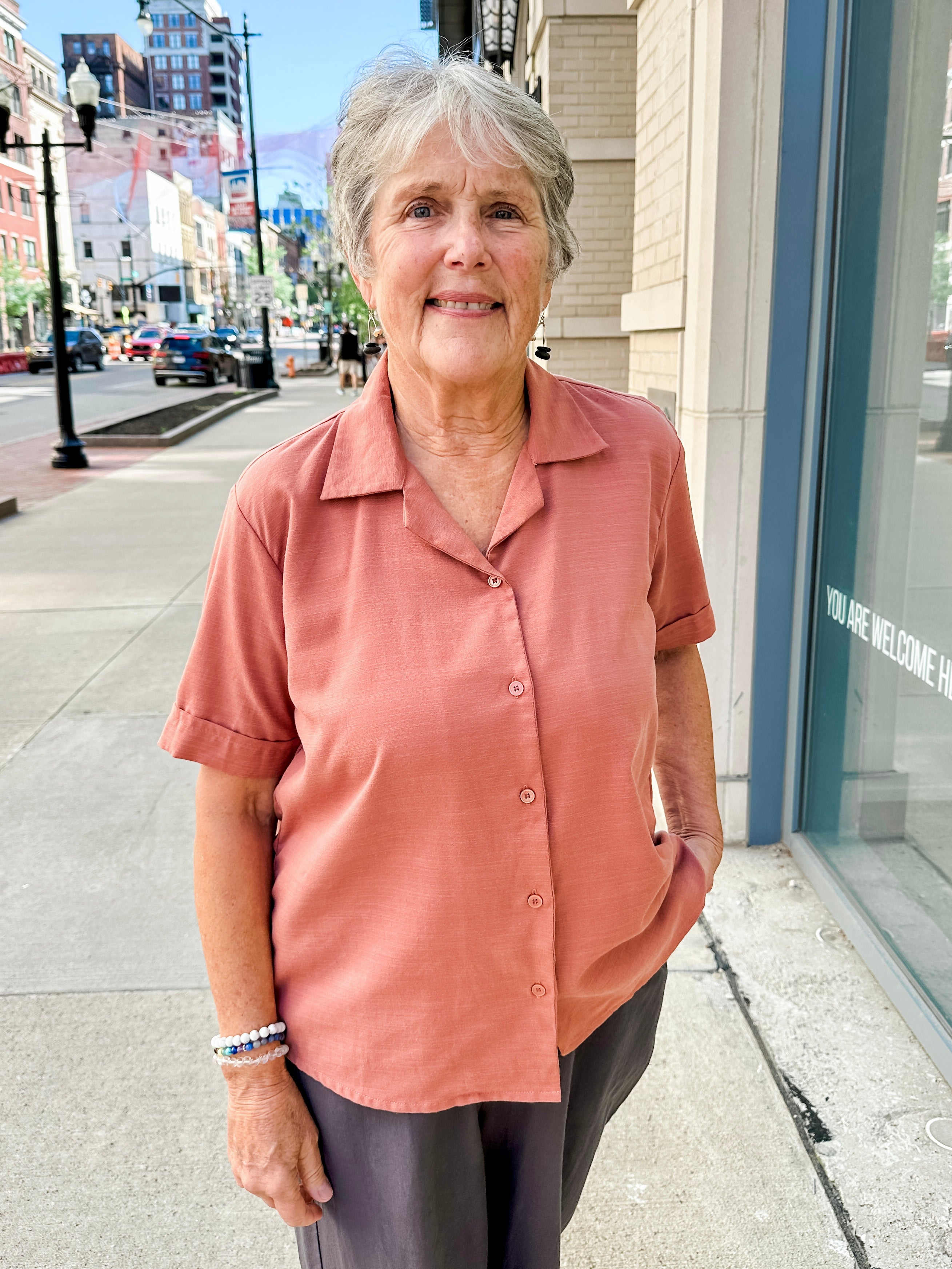 Experience effortless style with this airy Irish cotton blouse. Crafted from 100% surplus Irish cotton, this lightweight button-up features a flattering V-neck collar and relaxed fit that works for any occasion.