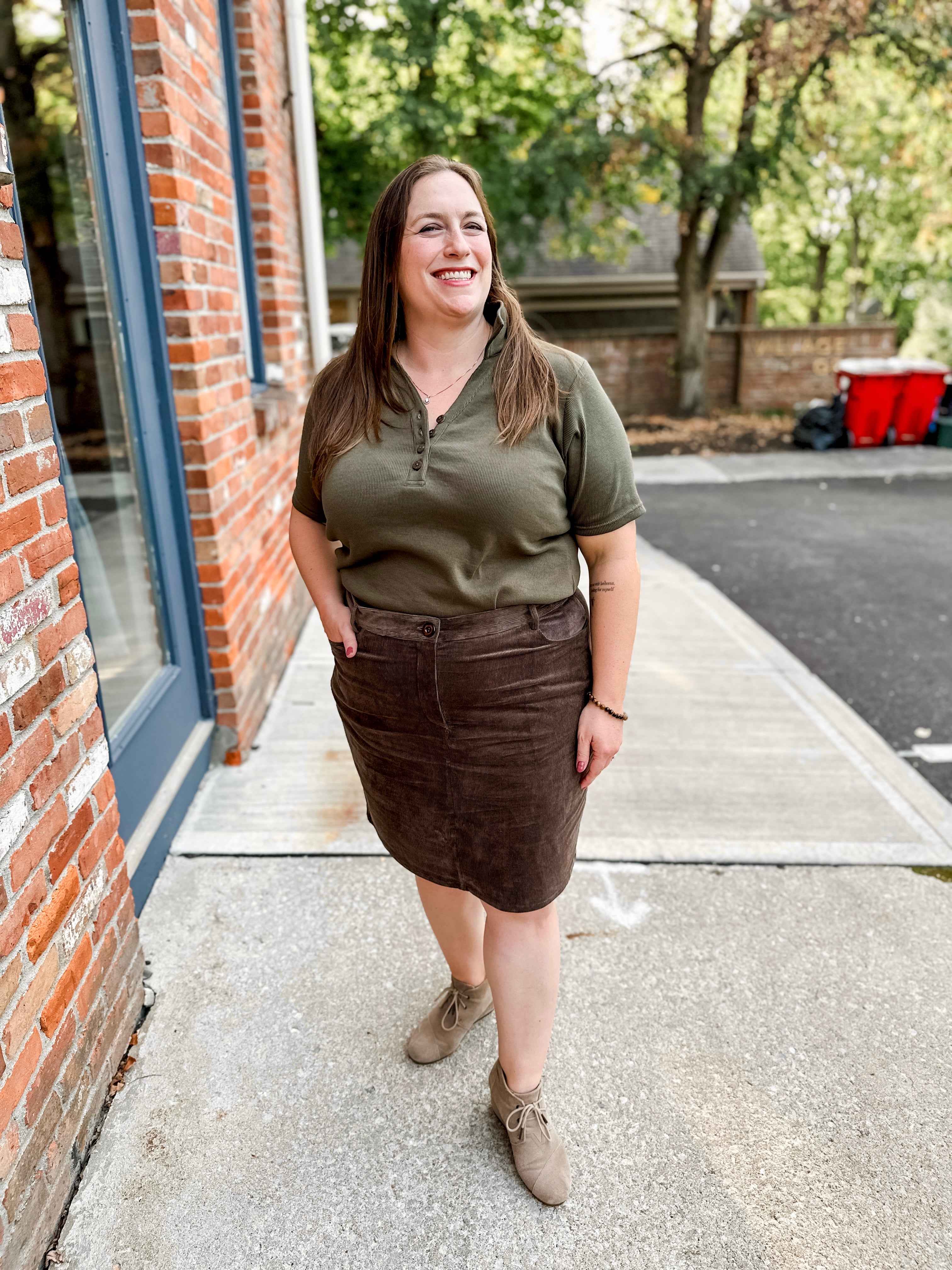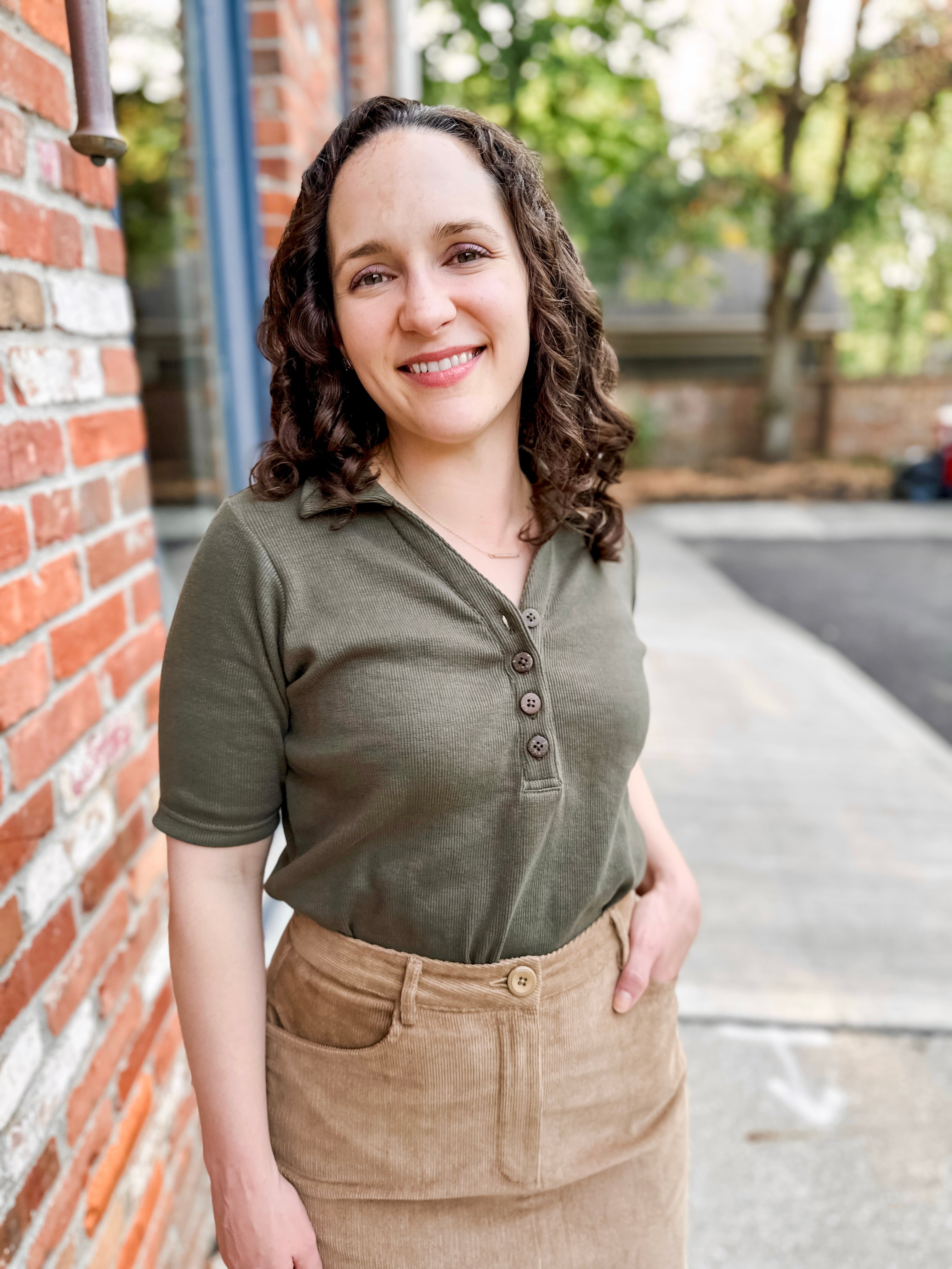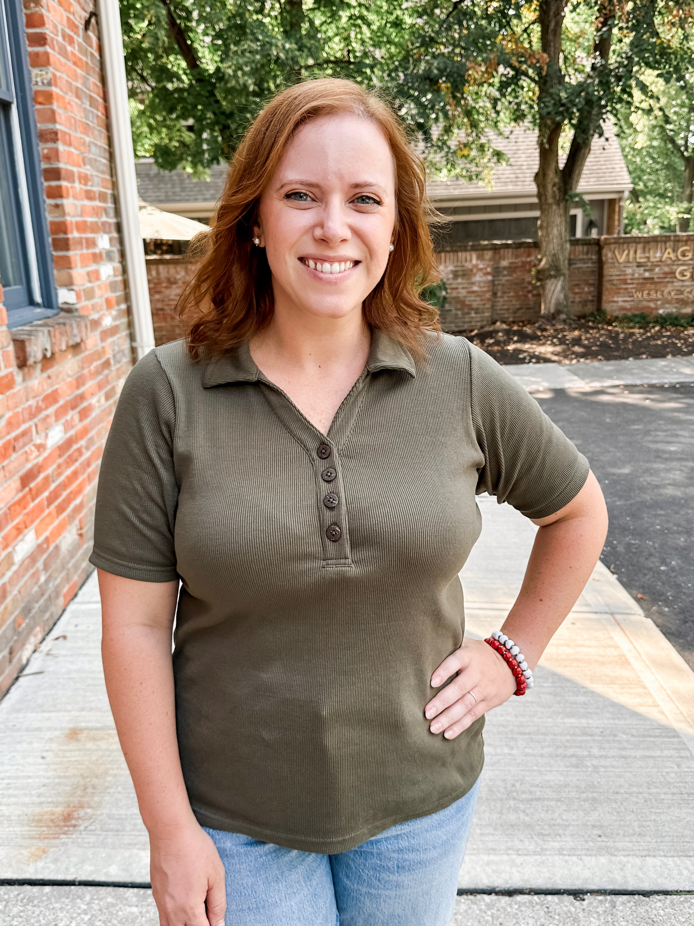 Classic ribbed henley polo top with button detail. Versatile style perfect for casual or dressed-up looks.