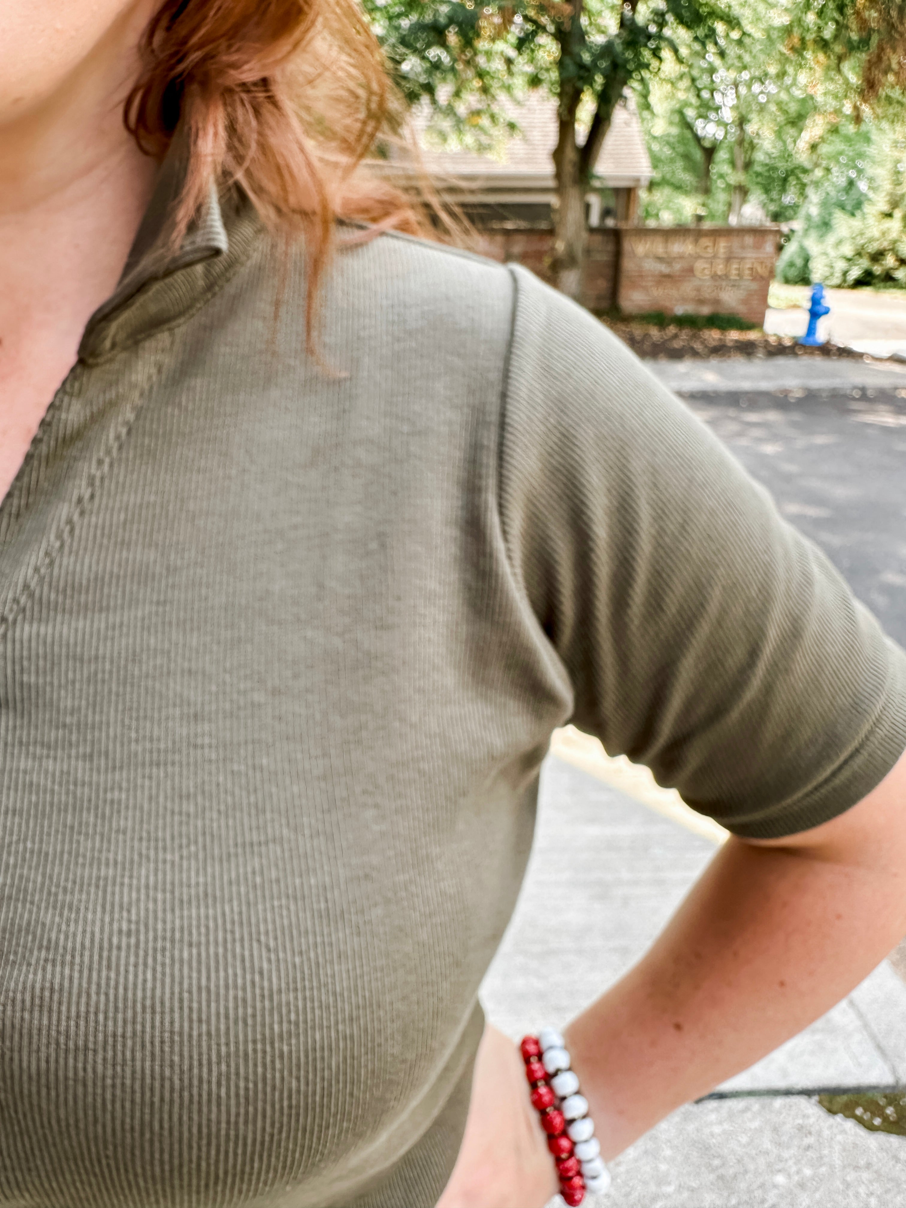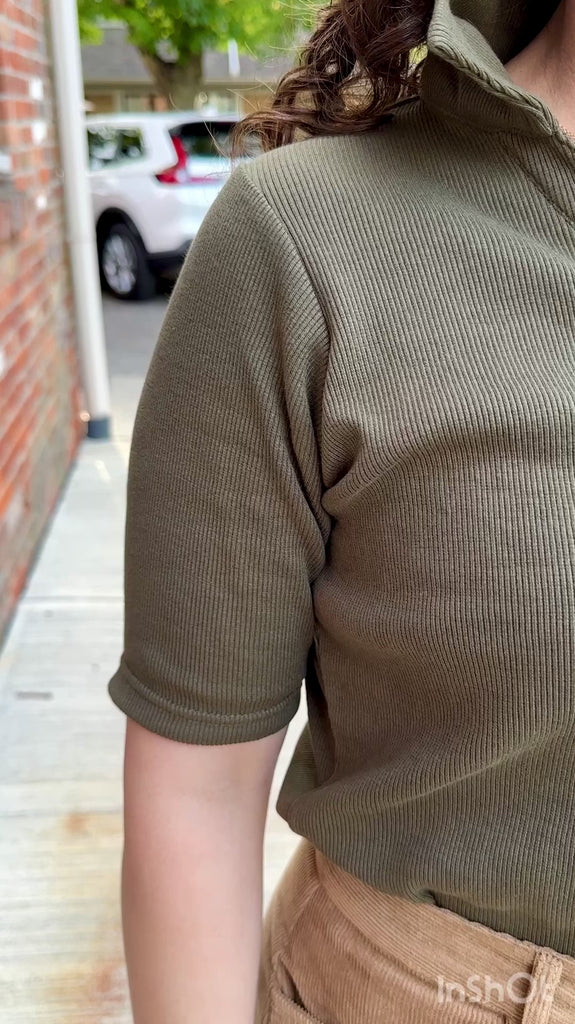 Ribbed Henley Polo Top