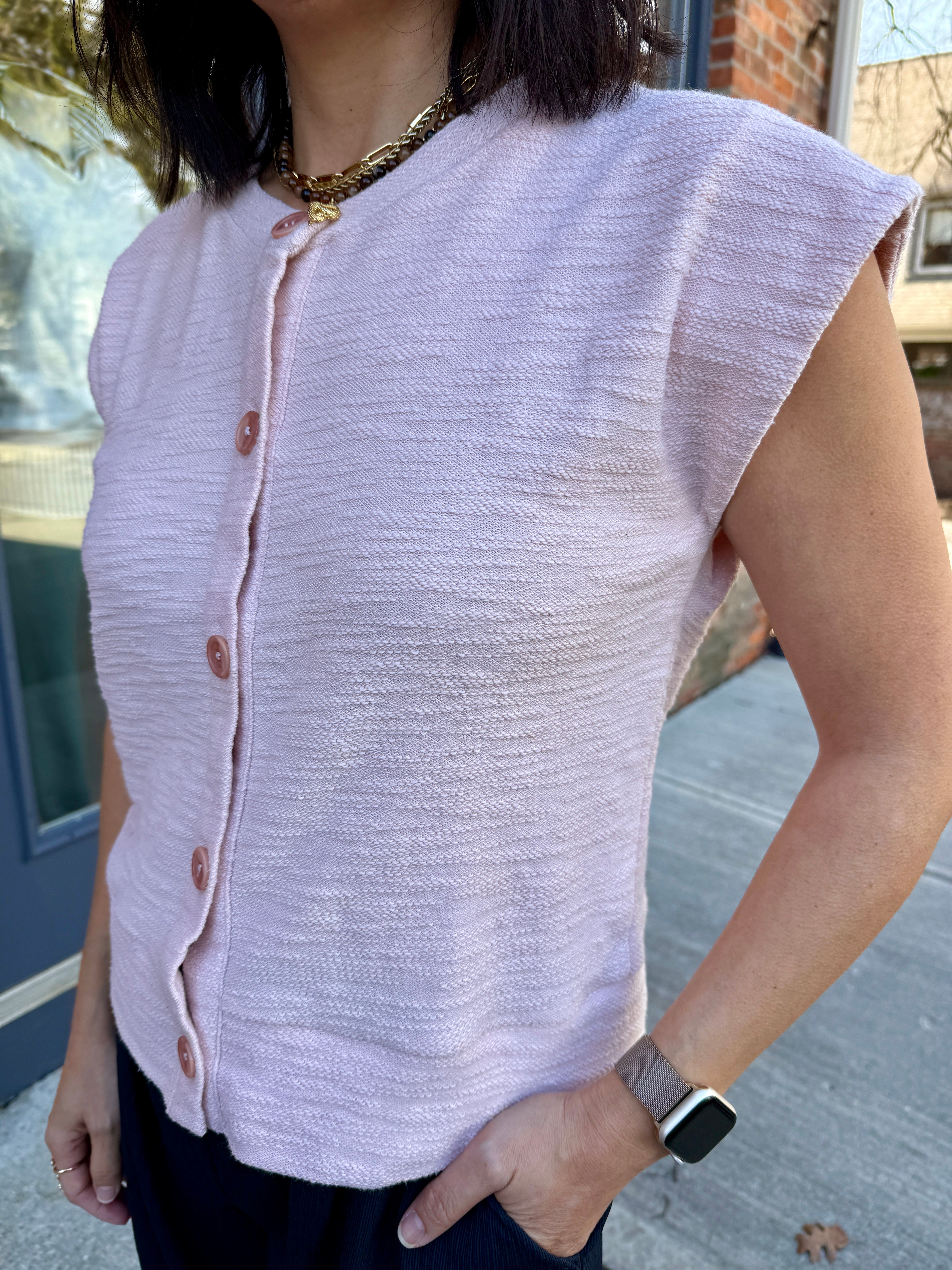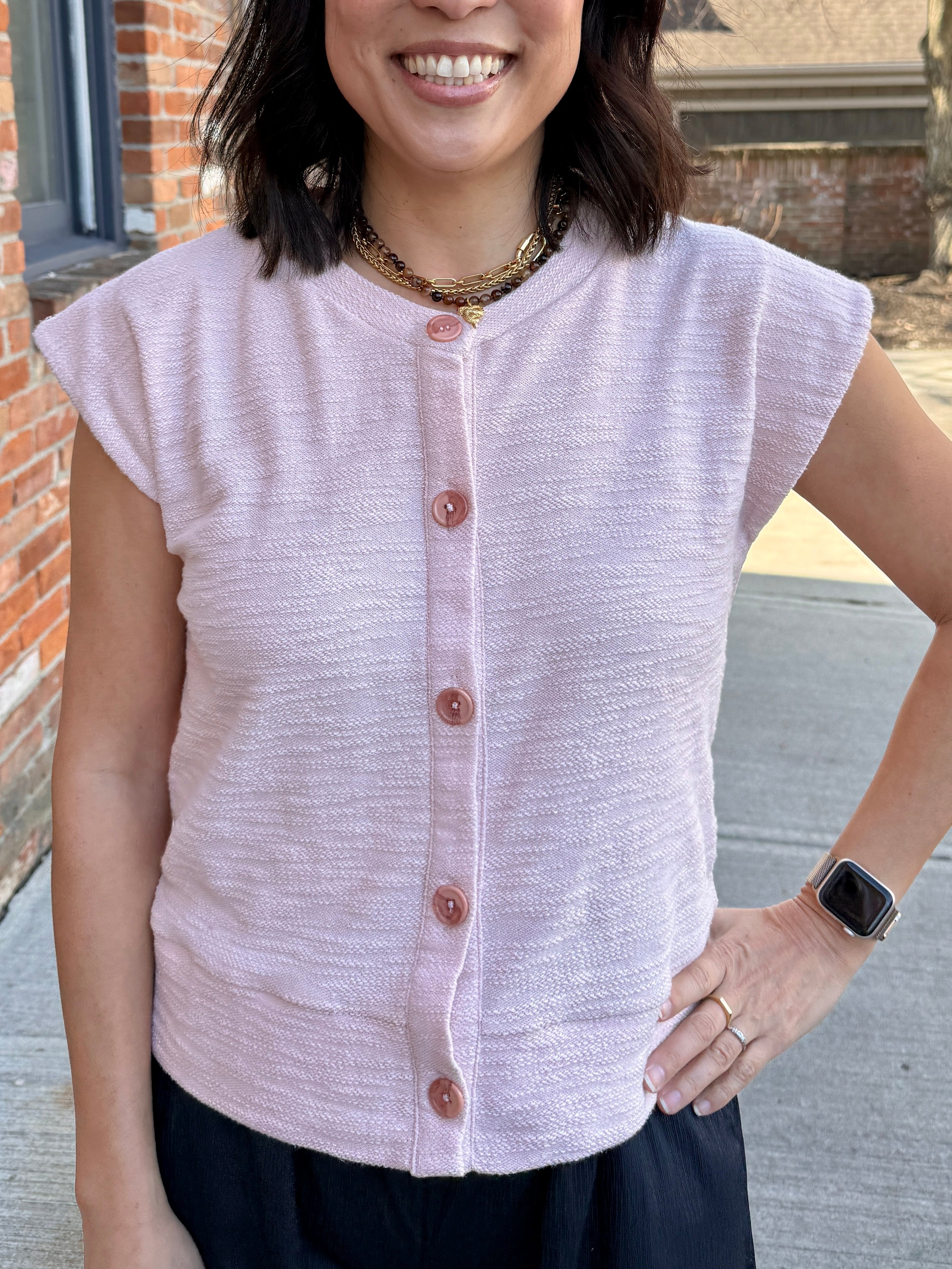 Sleeveless Cotton-Blend Cardigan Sweater