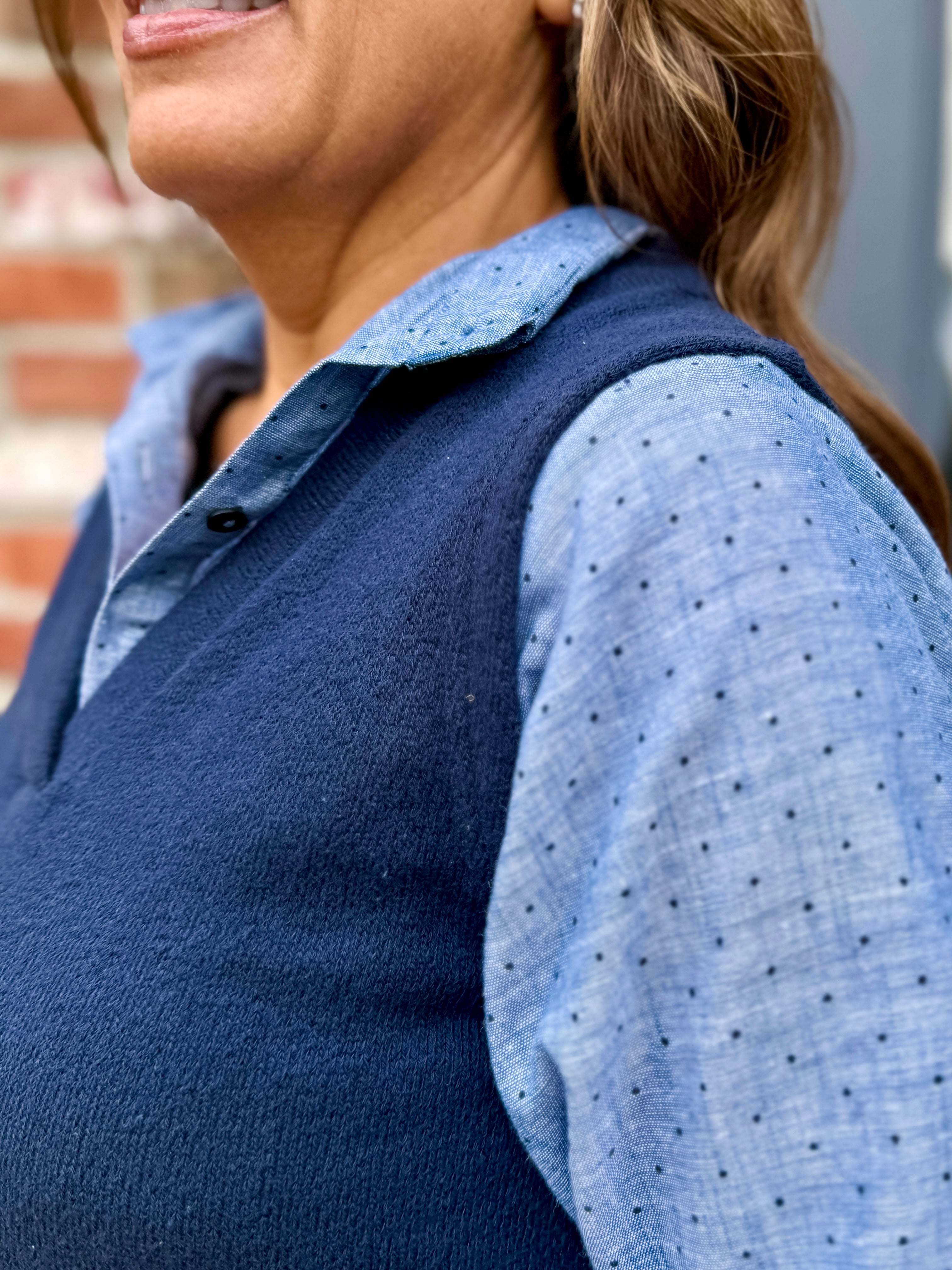 A versatile sleeveless knit vest that's perfect for 3-season wear. Layer it under or over your favorite pieces for added warmth and style.