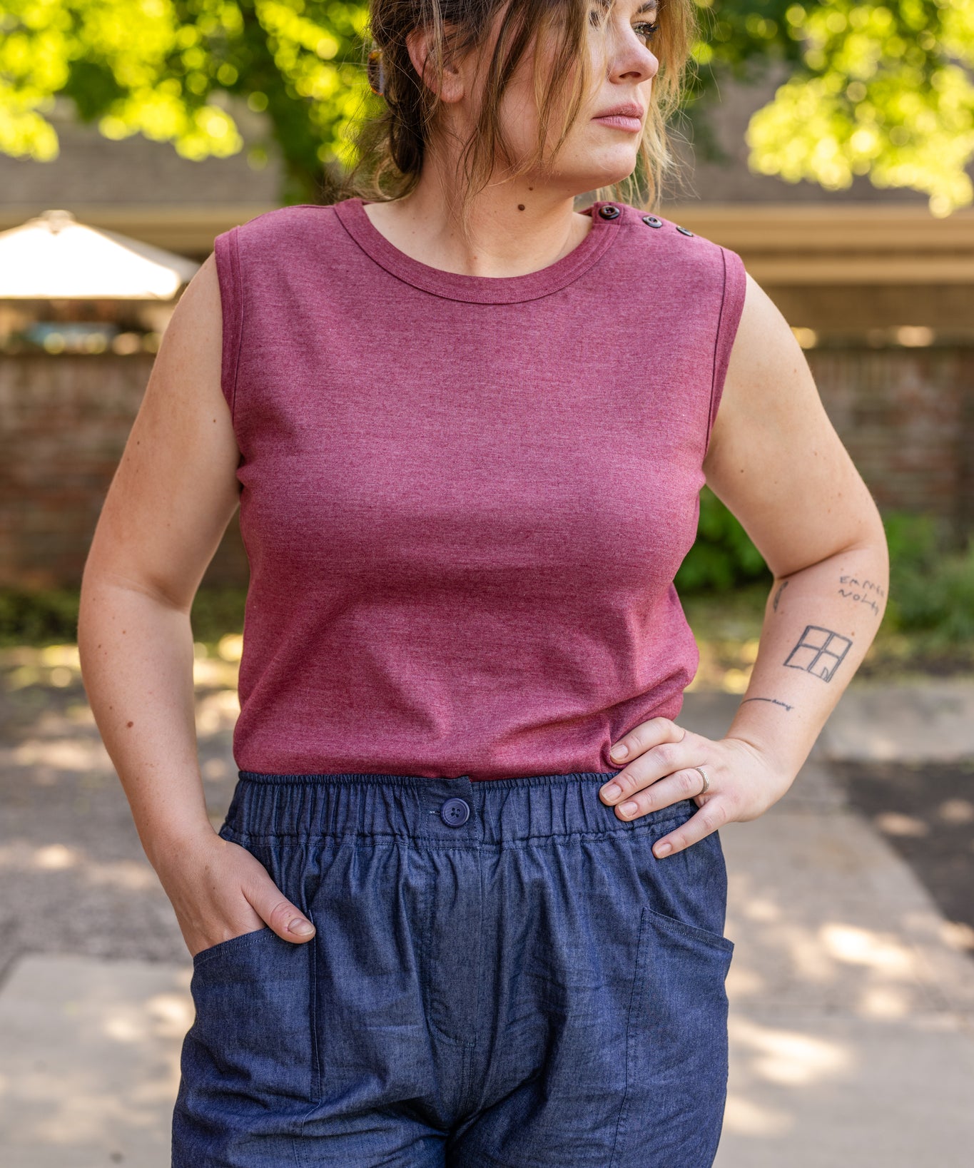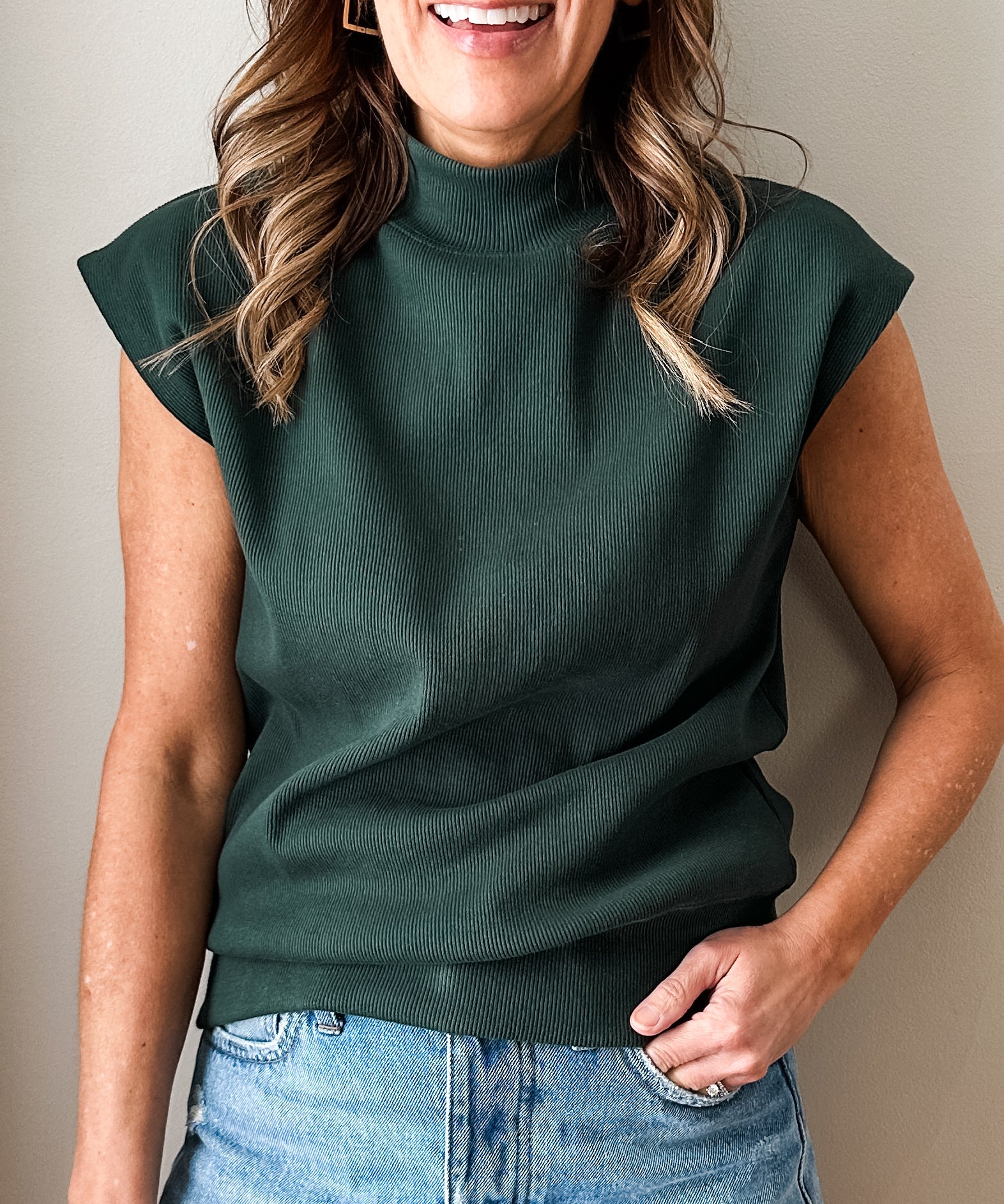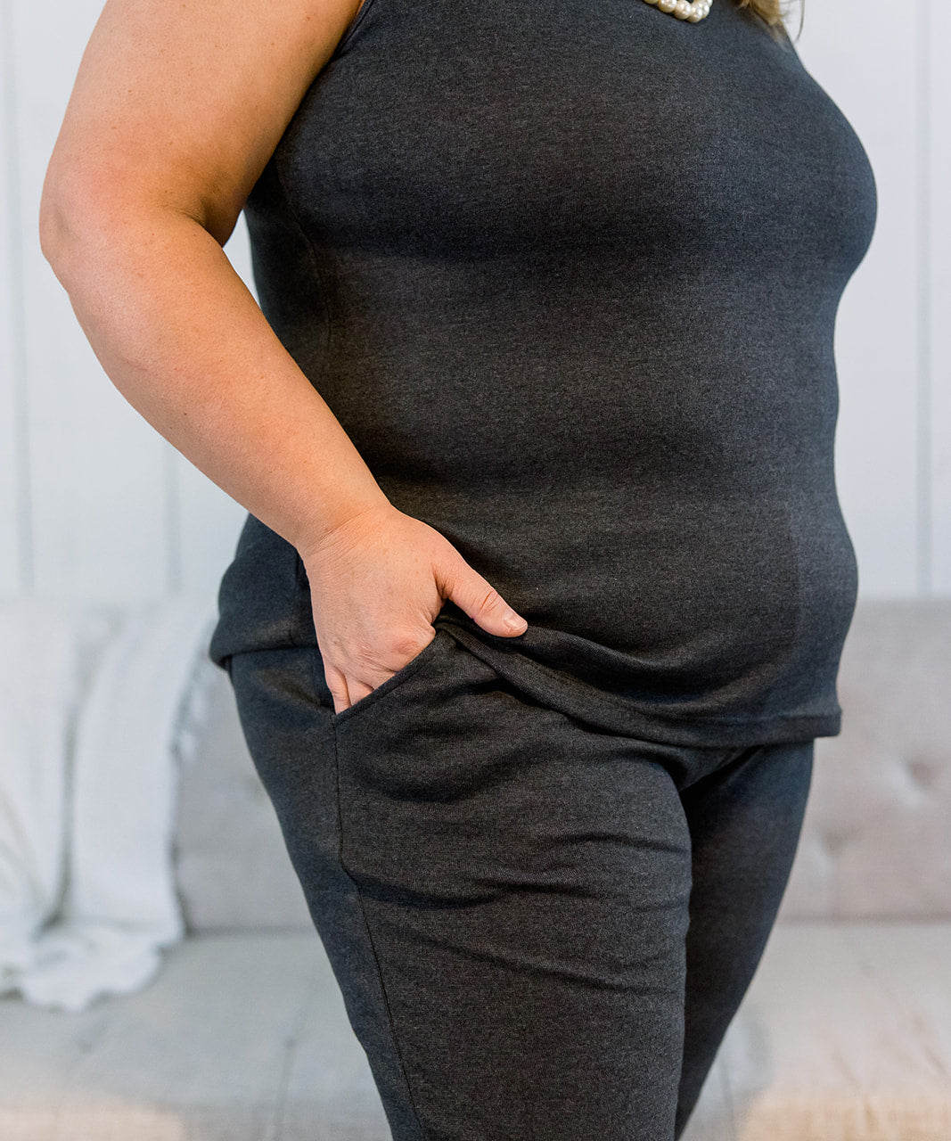 Ponte Sleeveless Mock Neck and Pant- Charcoal