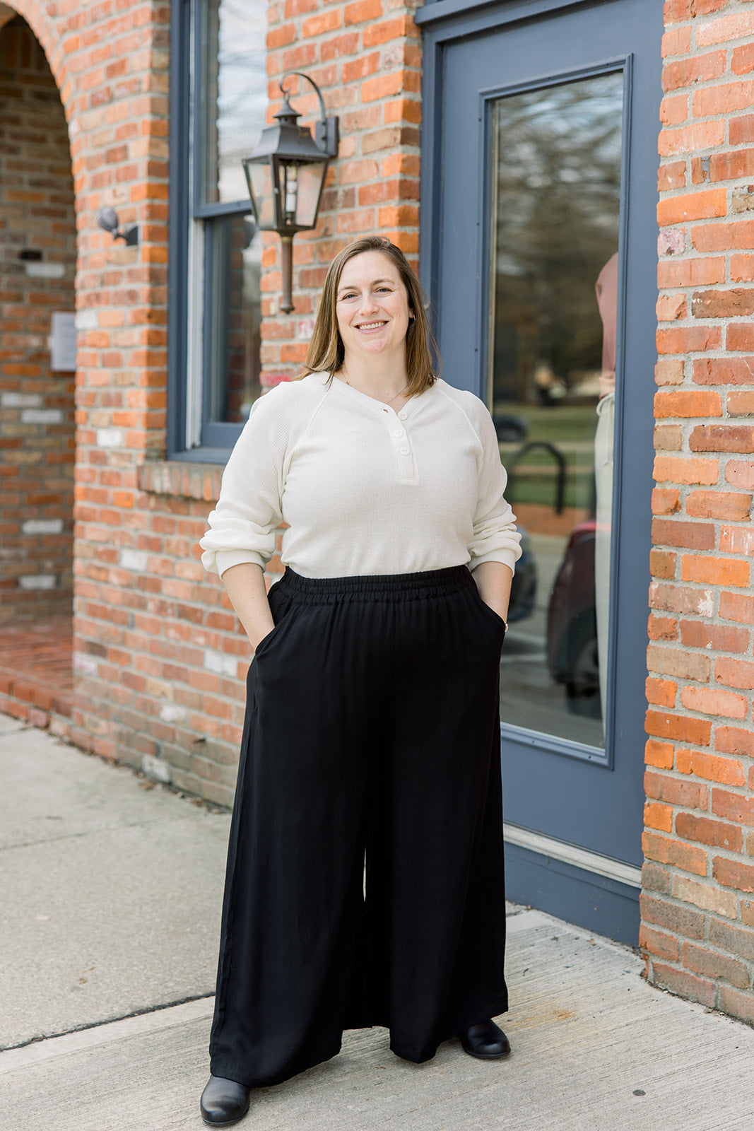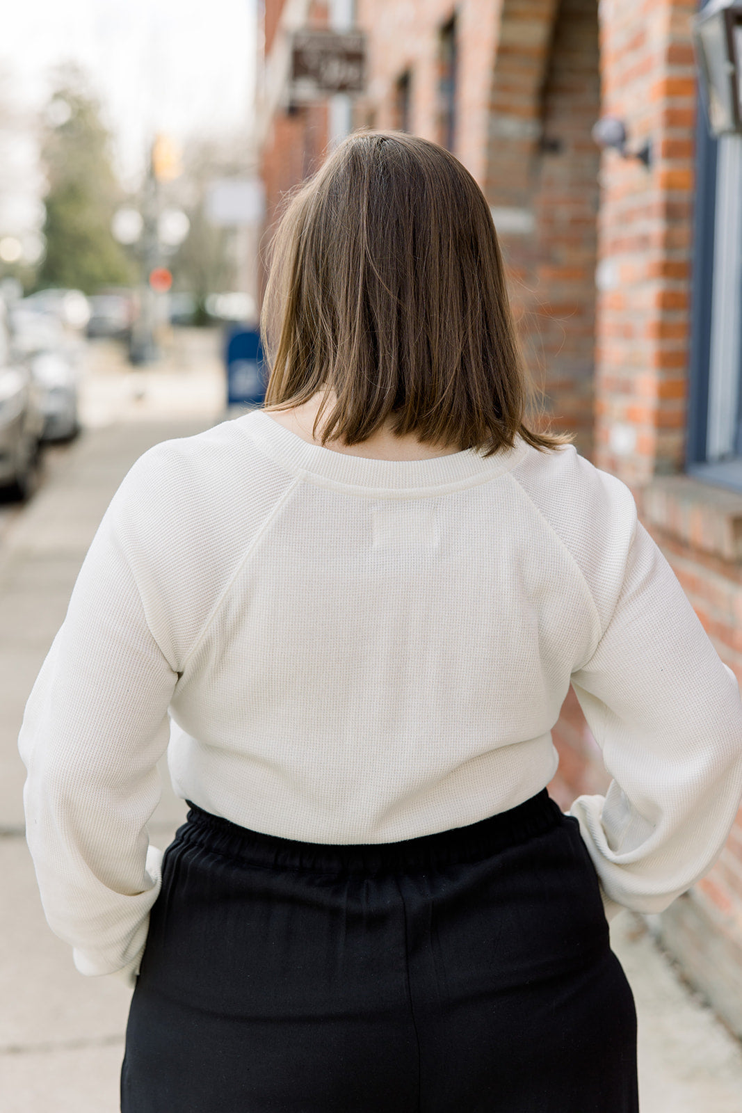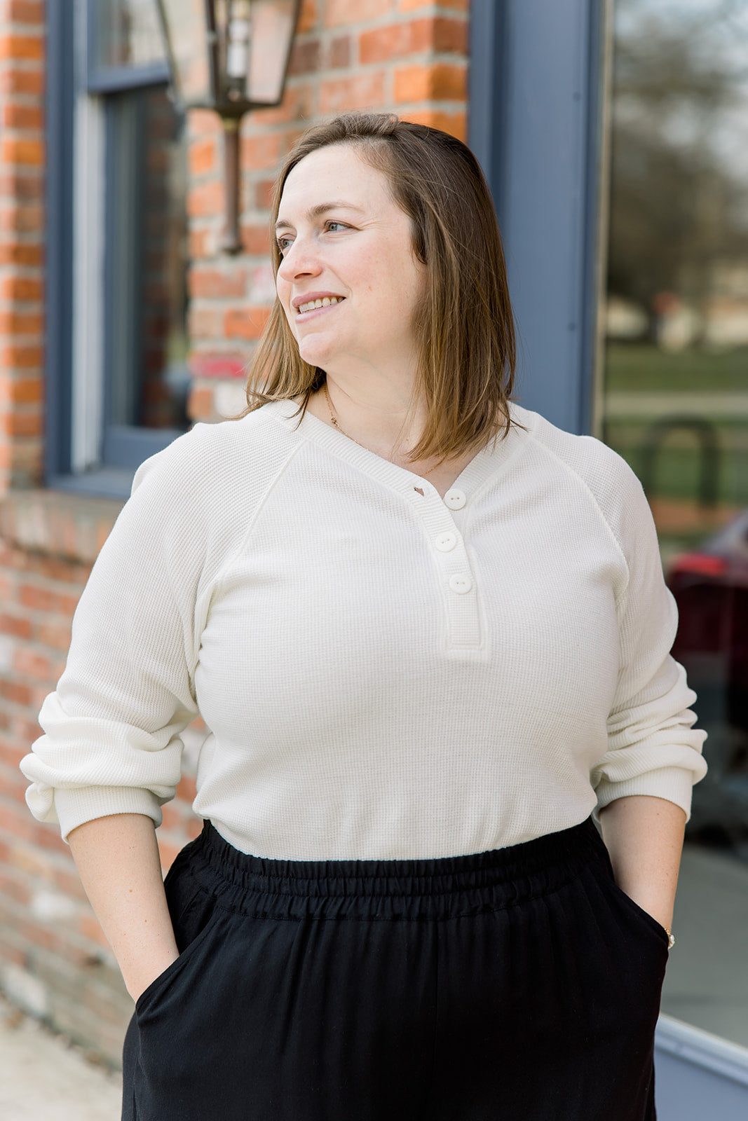 Waffle V-Neck Henley - Ivory