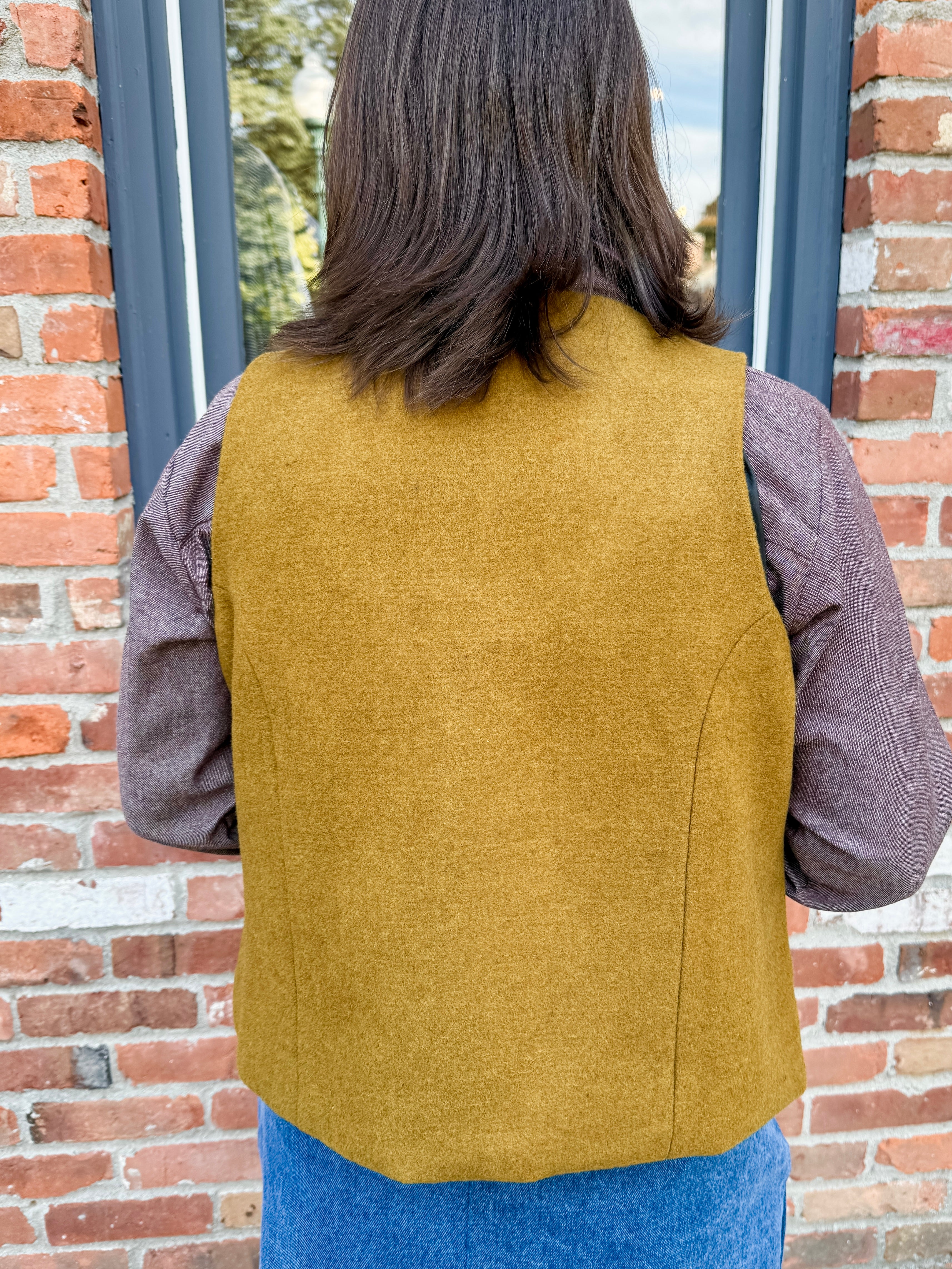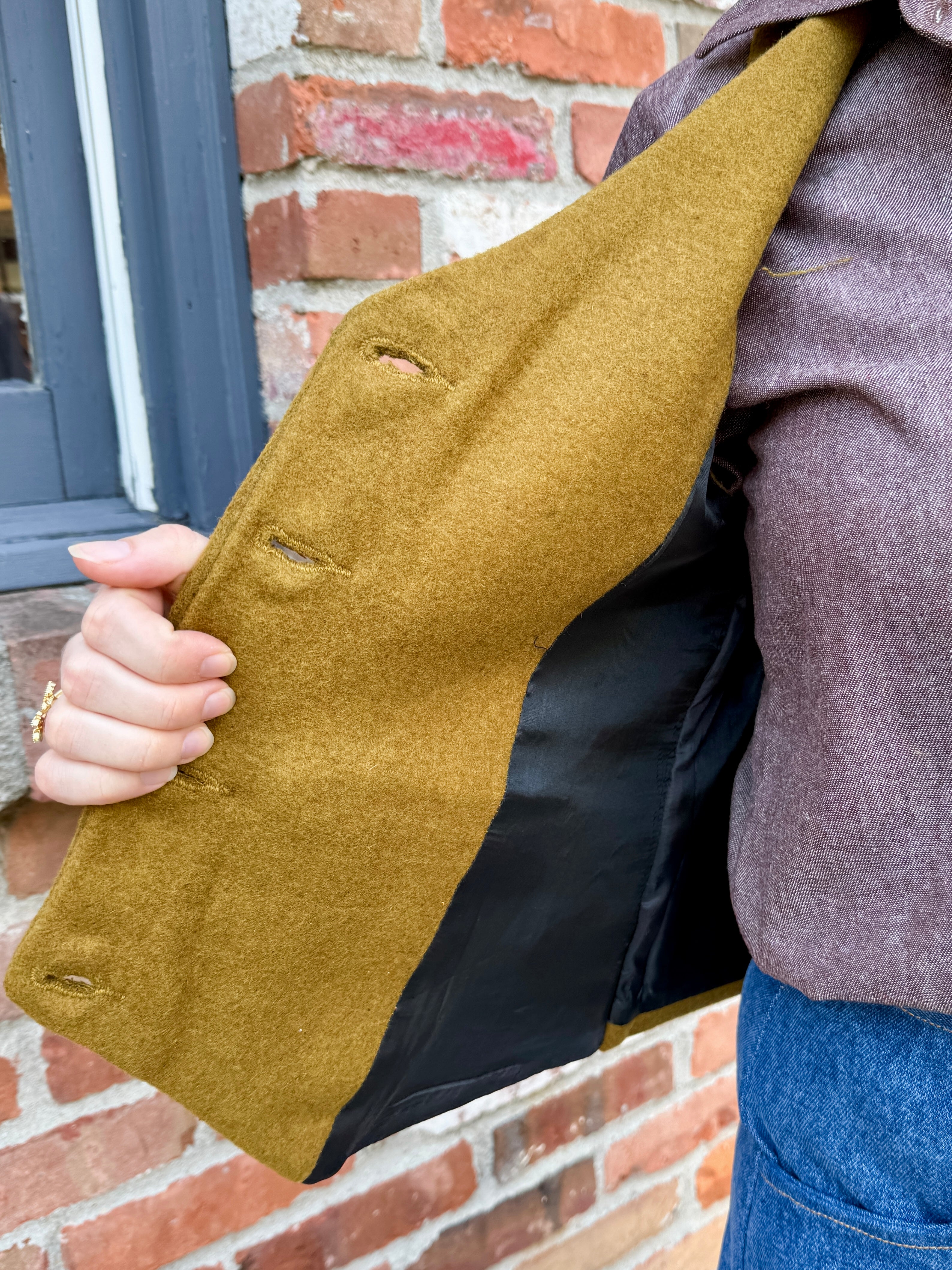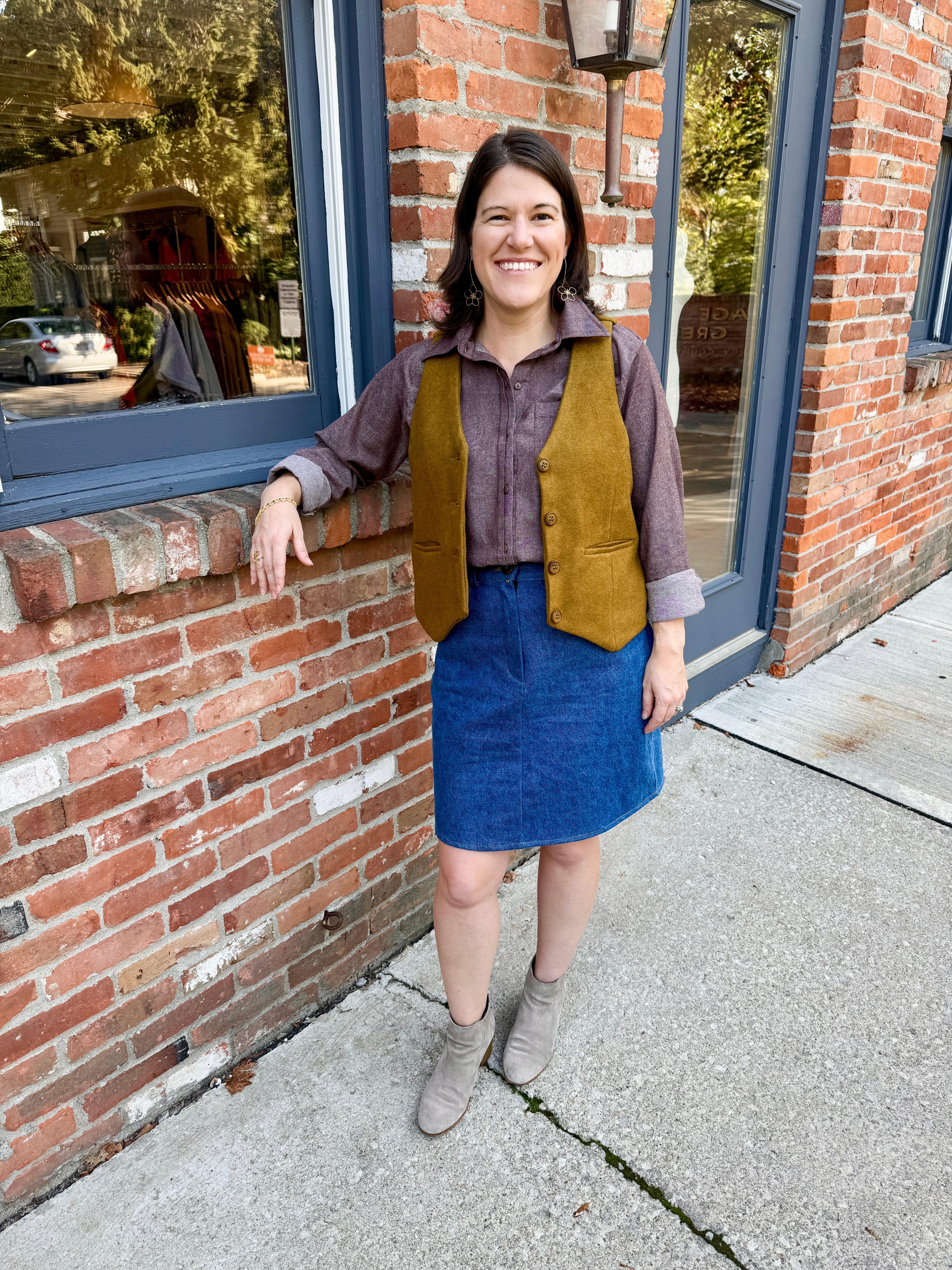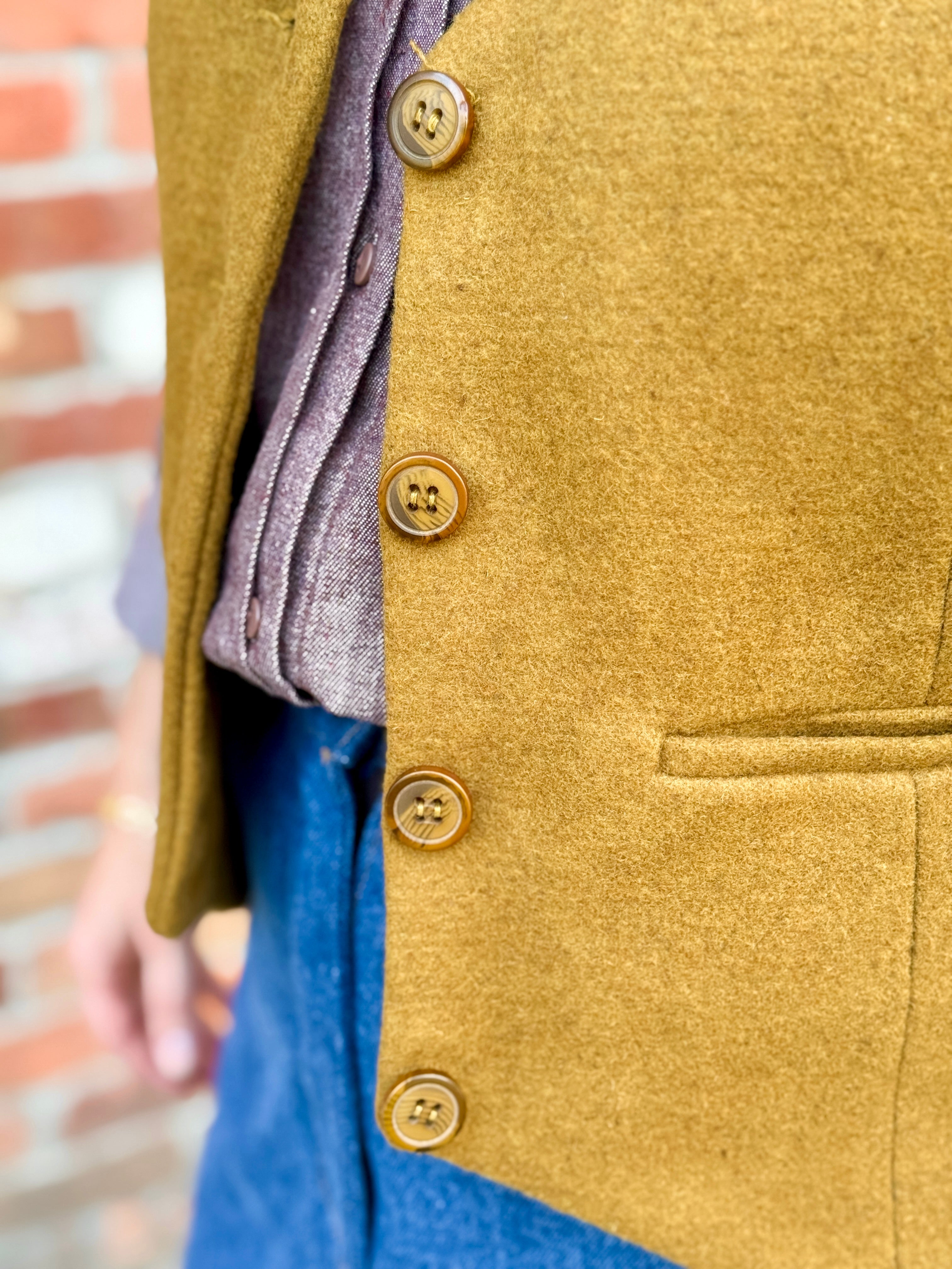 Elevate your fall and winter wardrobe with this sophisticated button-front vest, crafted from premium wool and tweed surplus fabrics. This menswear-inspired piece combines timeless style with sustainable fashion.