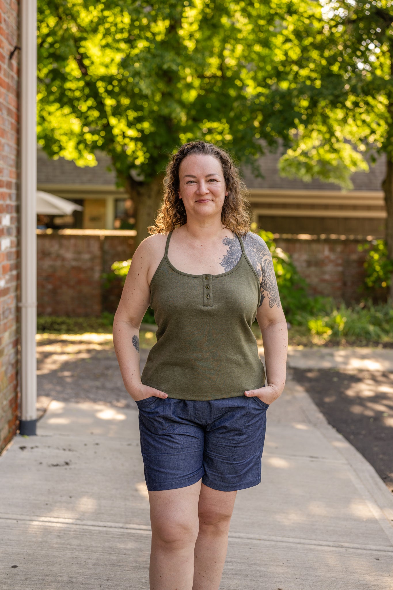 A versatile knit tank with a unique cross-back strap design that adds style to any outfit. Perfect for layering or wearing solo during warmer months.