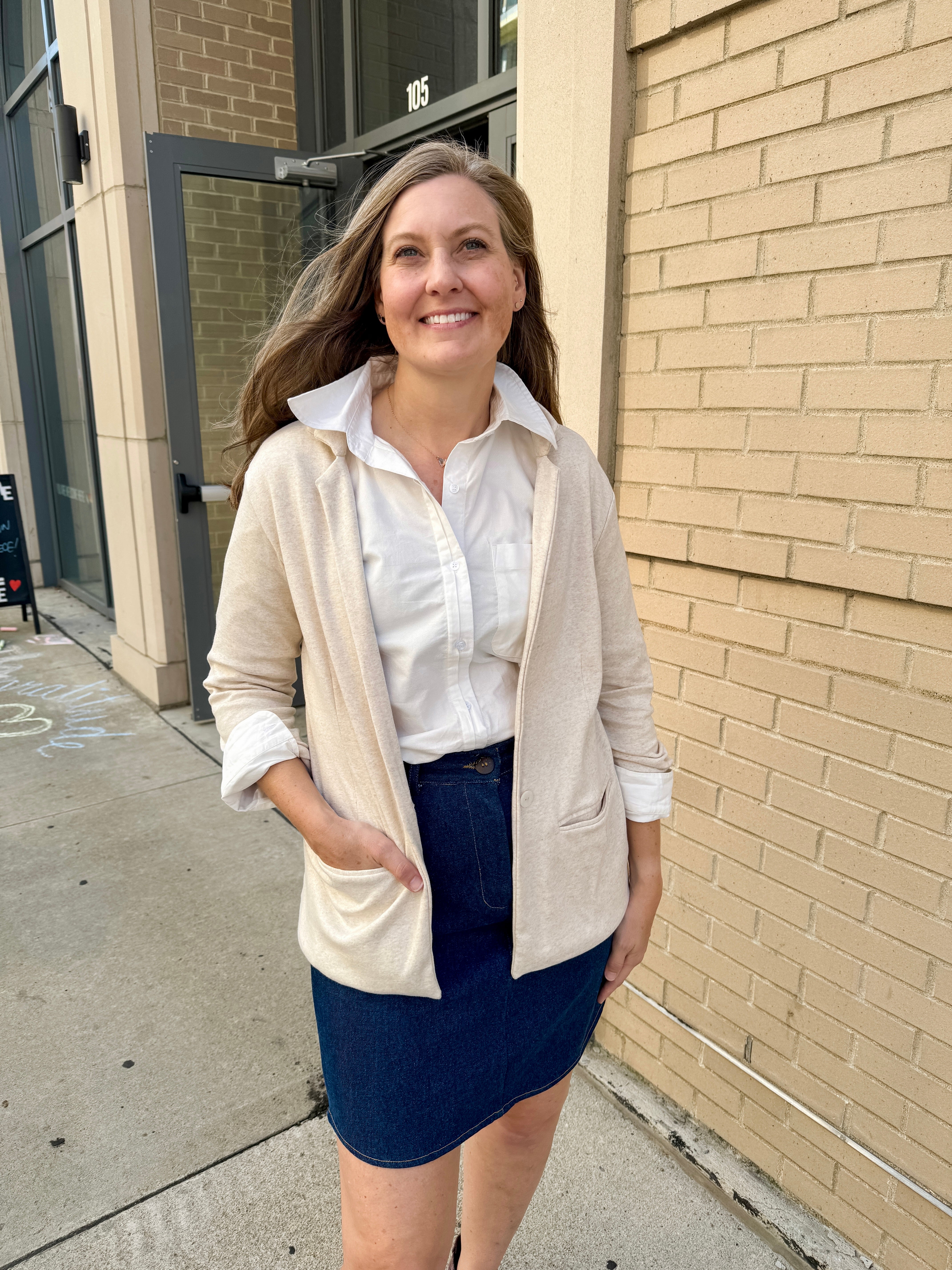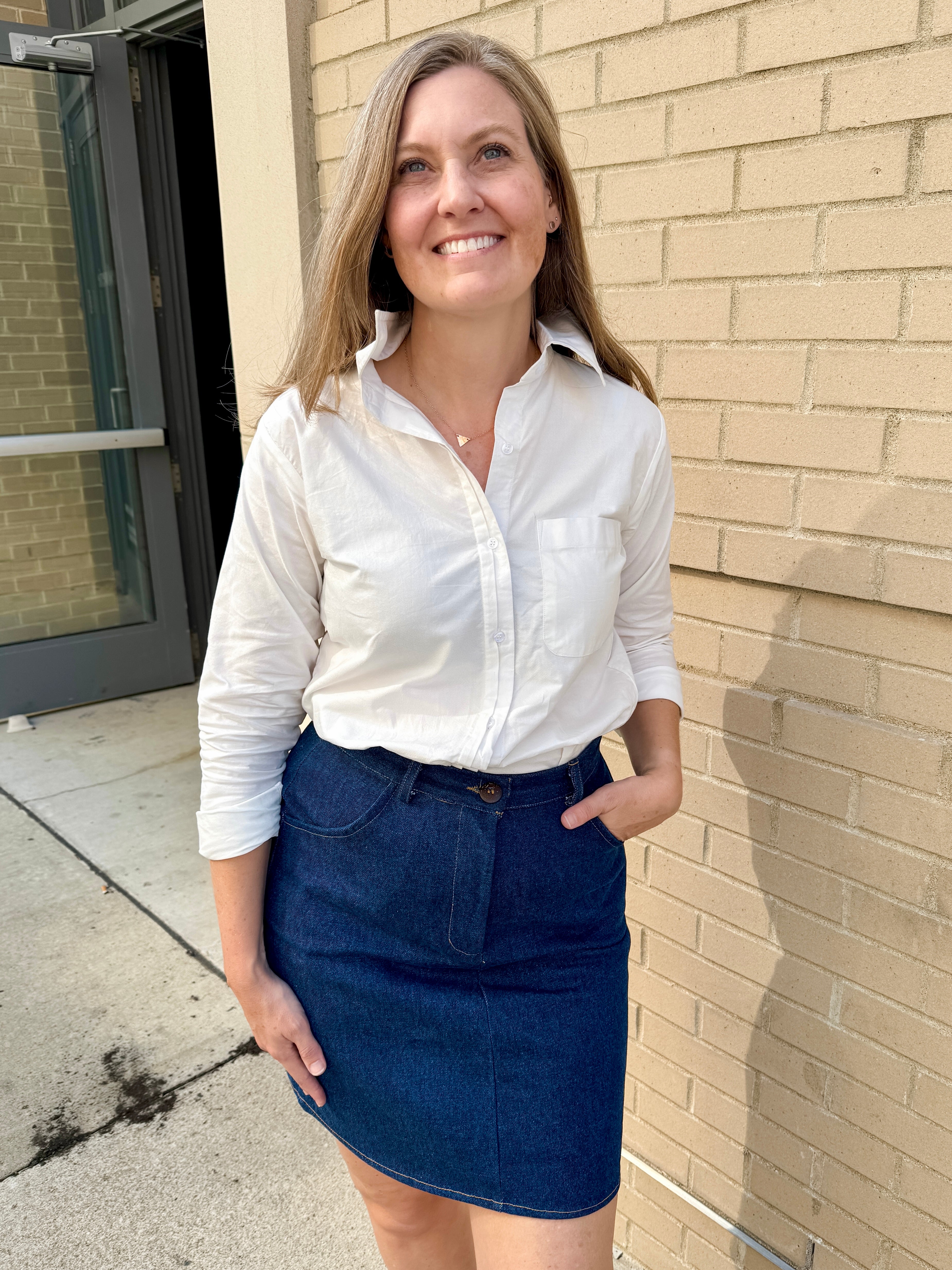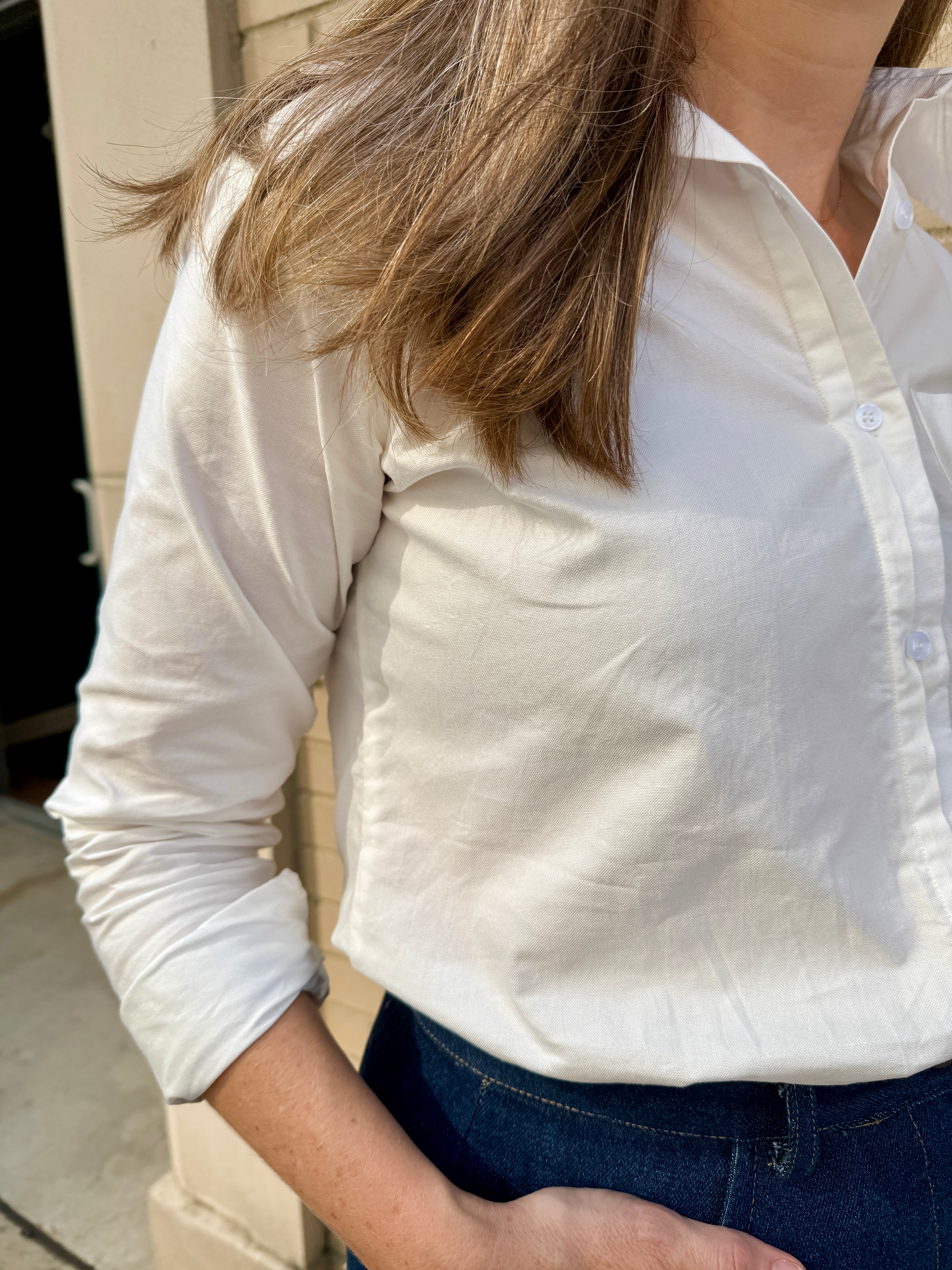 Experience timeless style with the Rowan Classic Fit Button-Up in Soft White, crafted from 100% sustainable chambray cotton blend surplus fabrics. This versatile shirt combines classic tailoring with modern comfort.