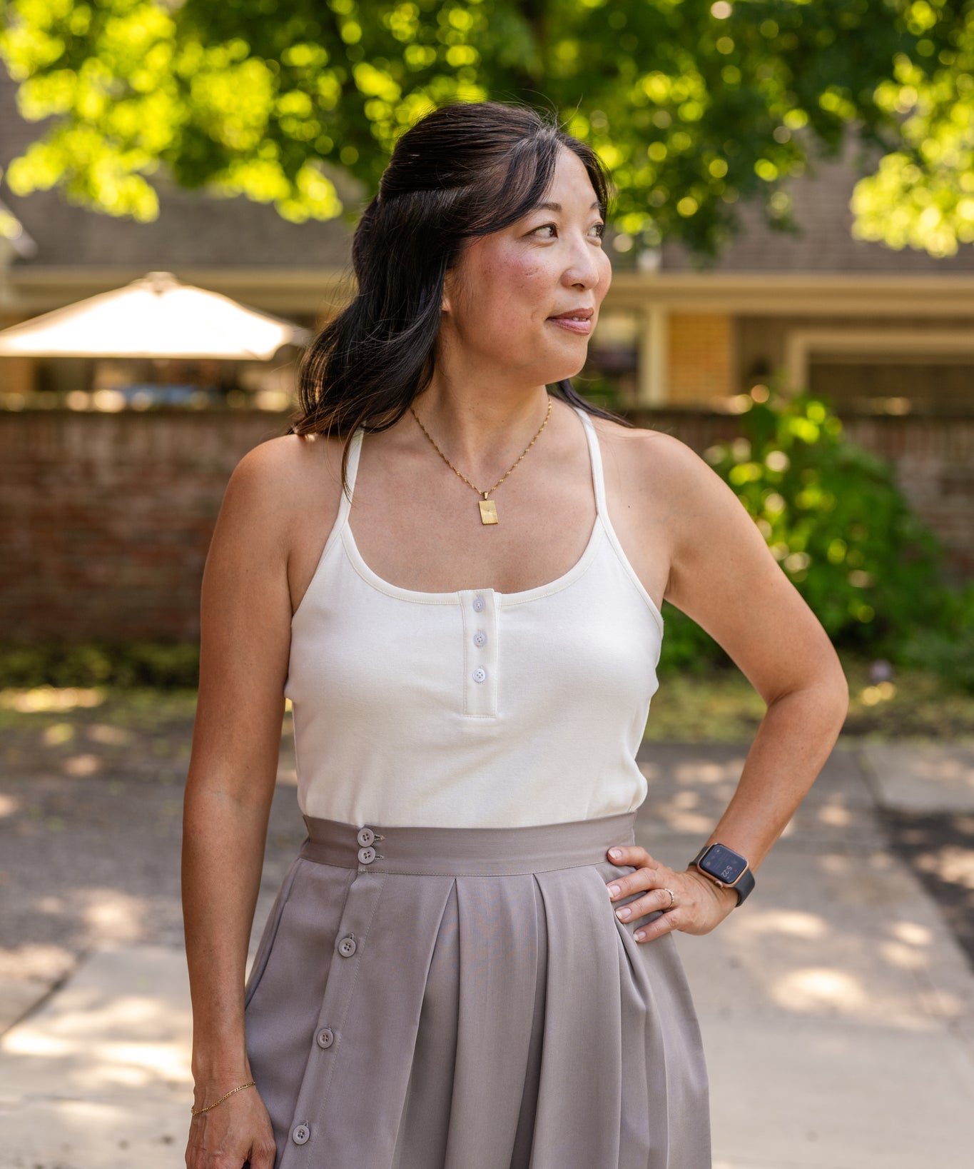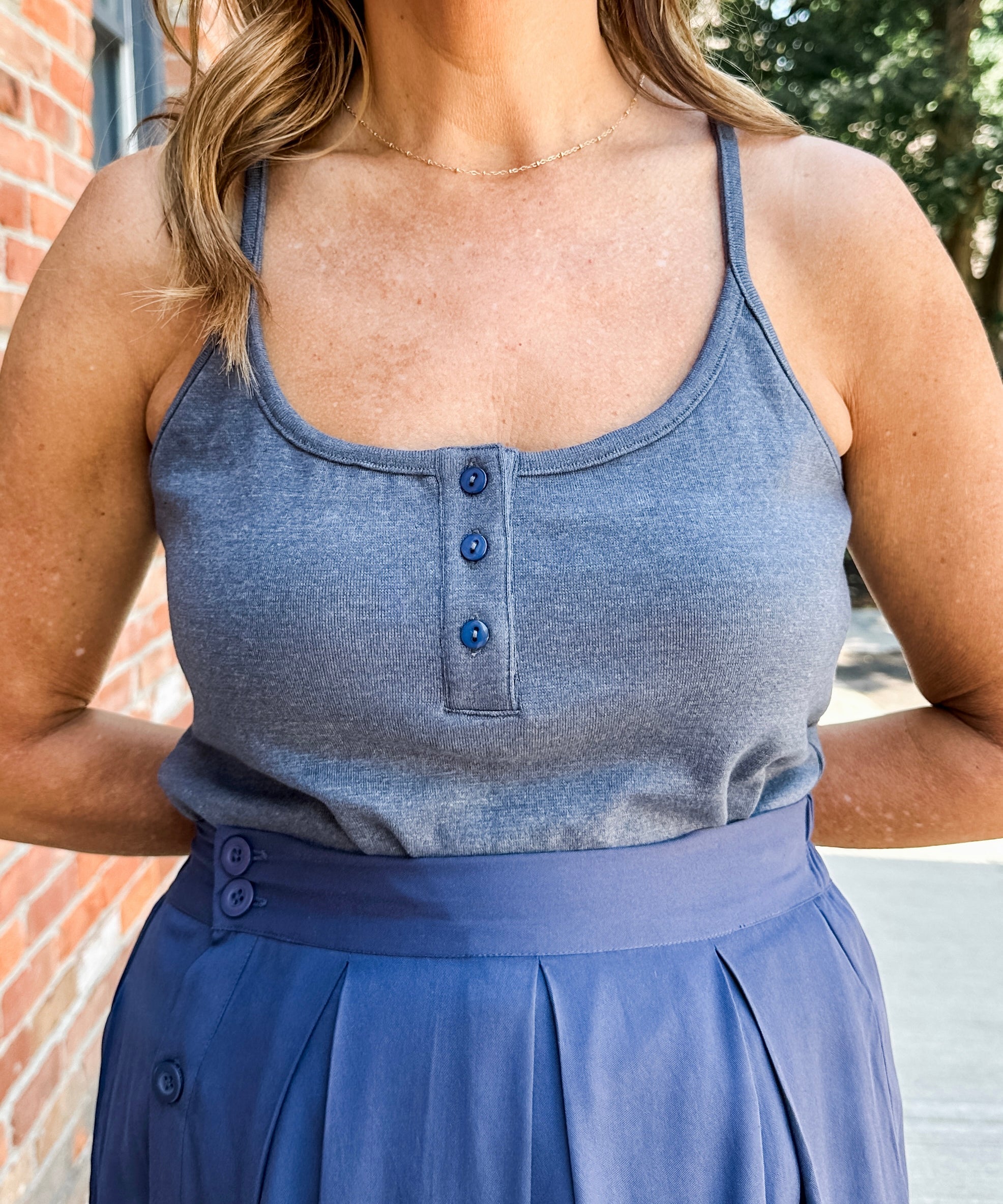 Cross Back Button Tank