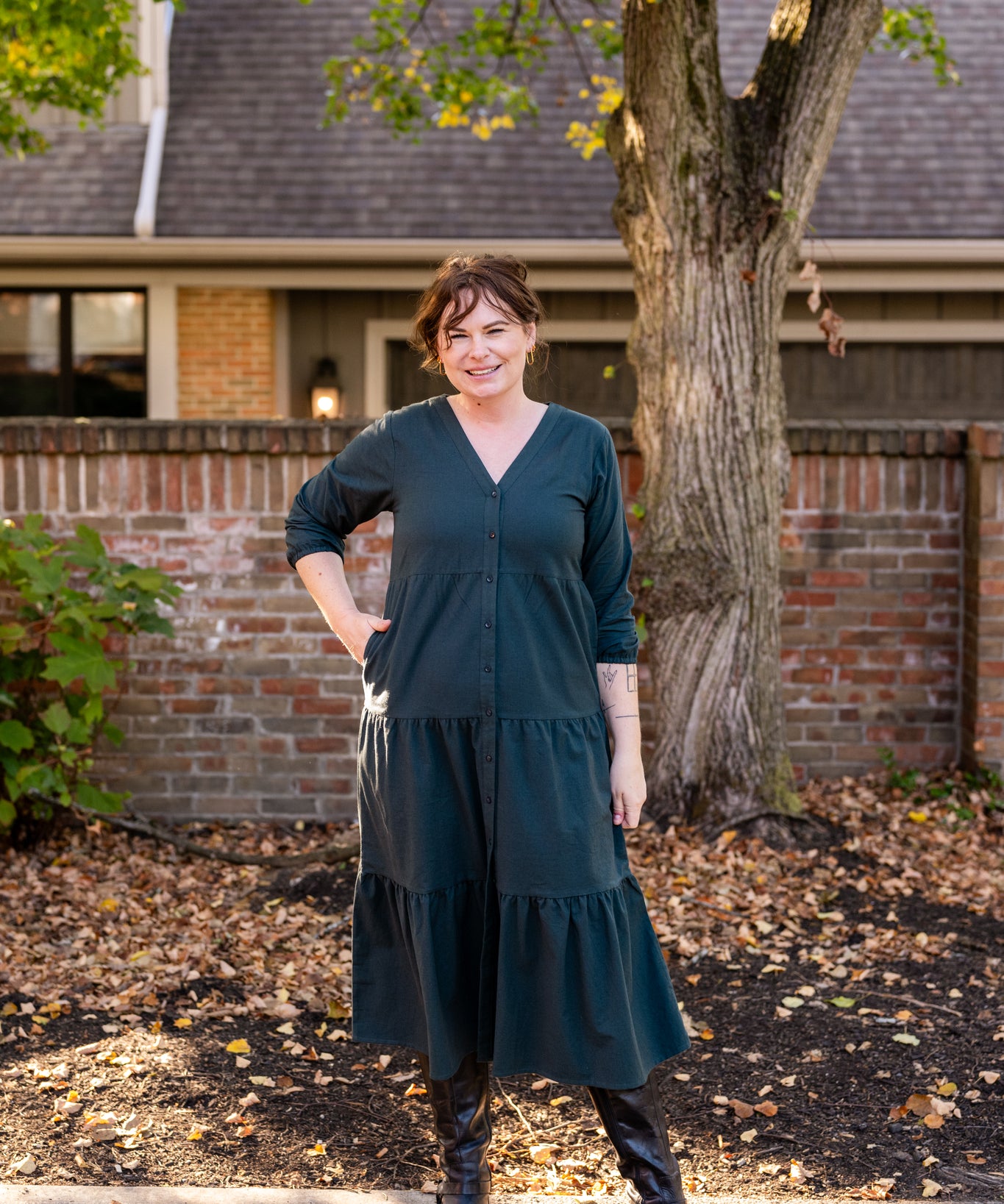 Button Front Tiered Dress
