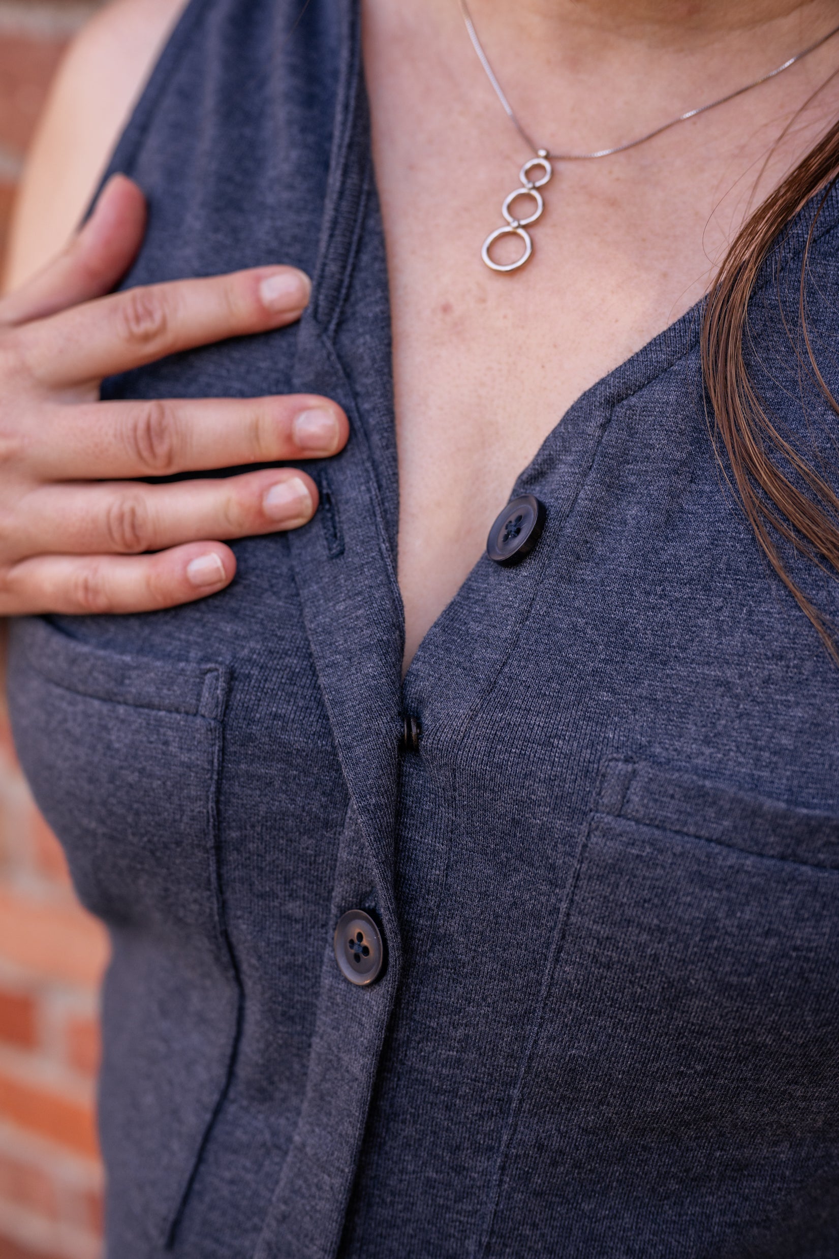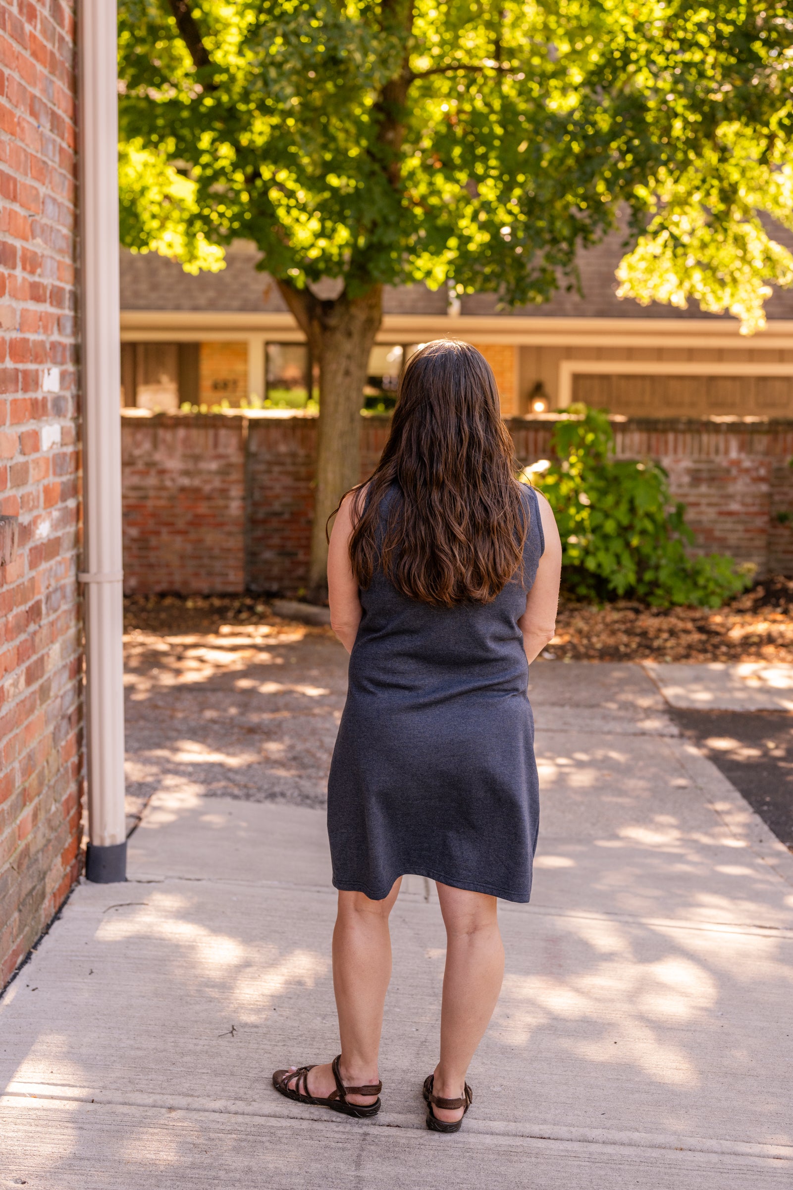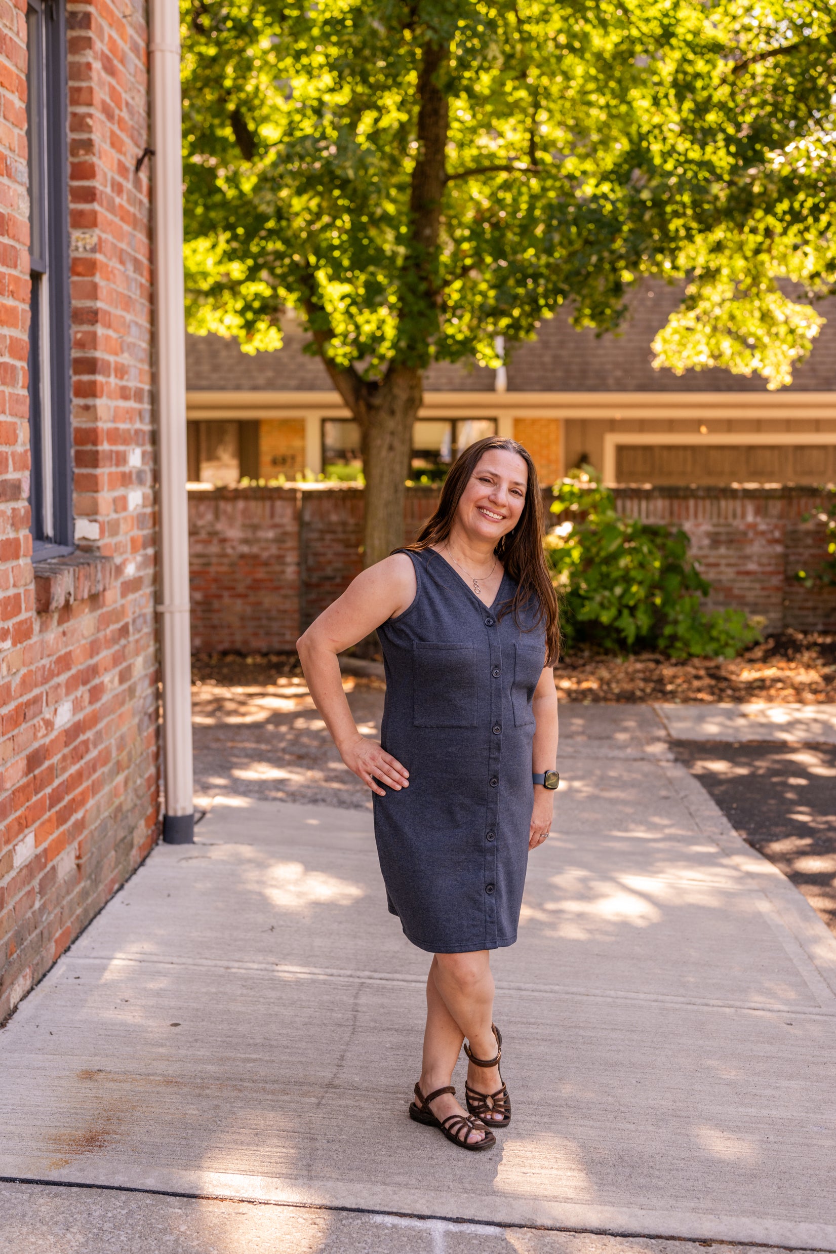 The Annie Button-Front Dress is your versatile wardrobe essential that transitions effortlessly through every season. This sleeveless mini dress features functional button-front closure with hidden snaps to prevent gapping, a flattering V-neckline, and convenient front pockets.