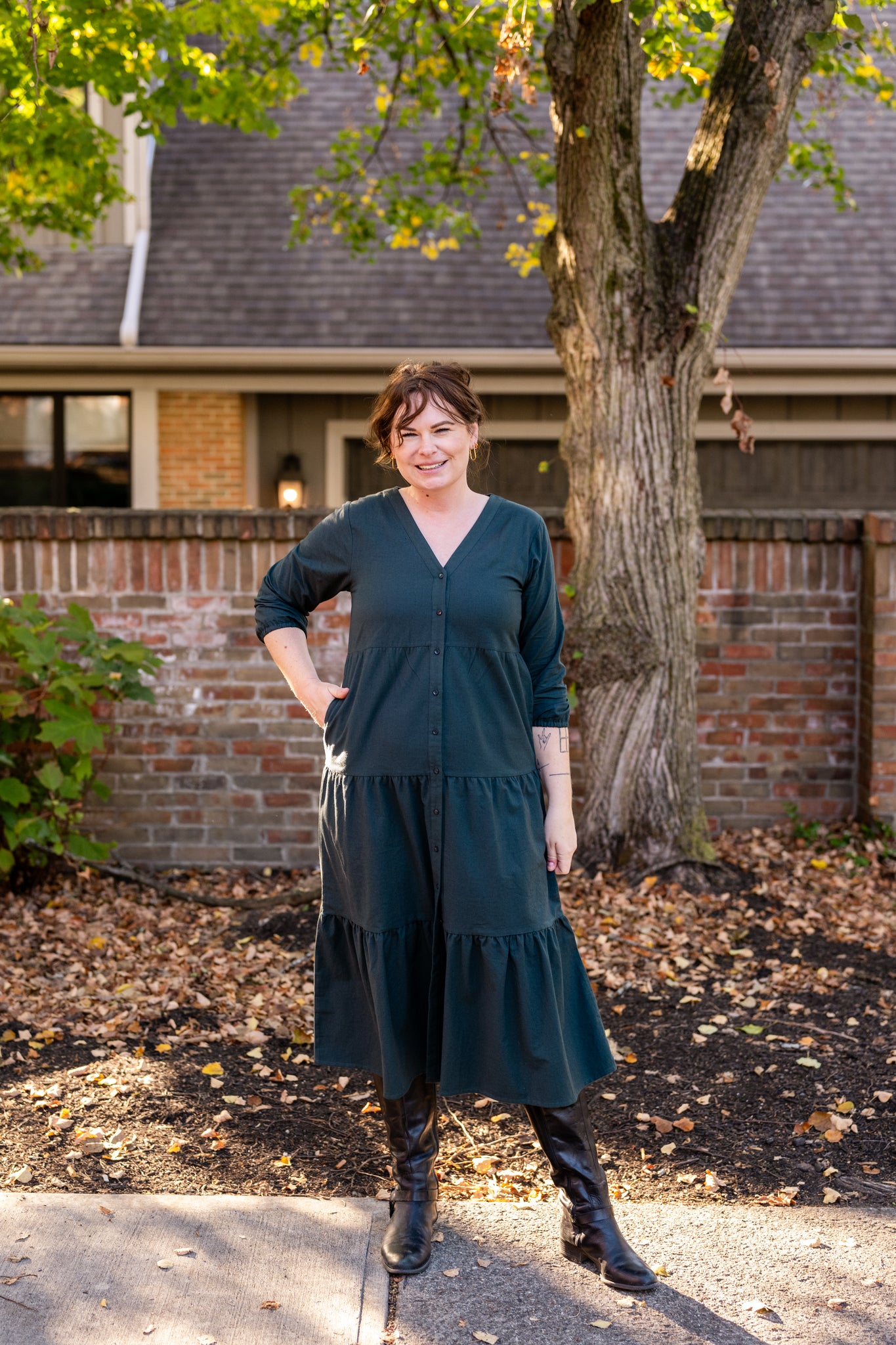 Elevate your everyday style with our Button Front Tiered Dress, a perfect blend of comfort and sophistication. This versatile piece features charming button detailing down the front and a flattering tiered silhouette that creates beautiful movement with every step.