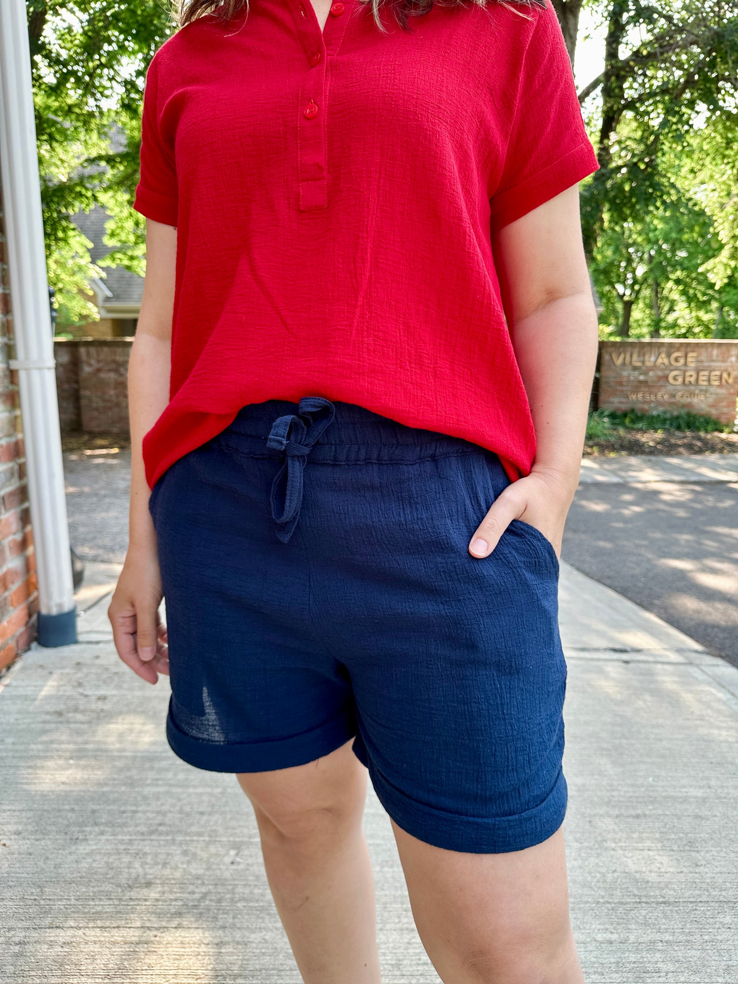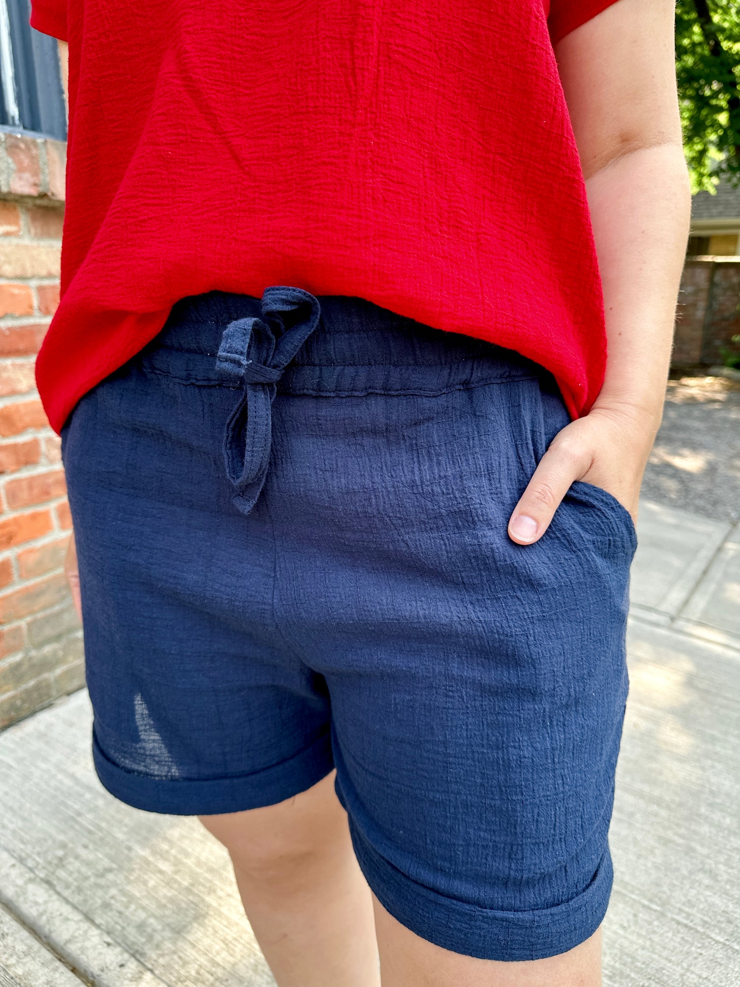 Relaxed Cabana Style Shorts Created from Lightweight-Crinkle cotton gauze.