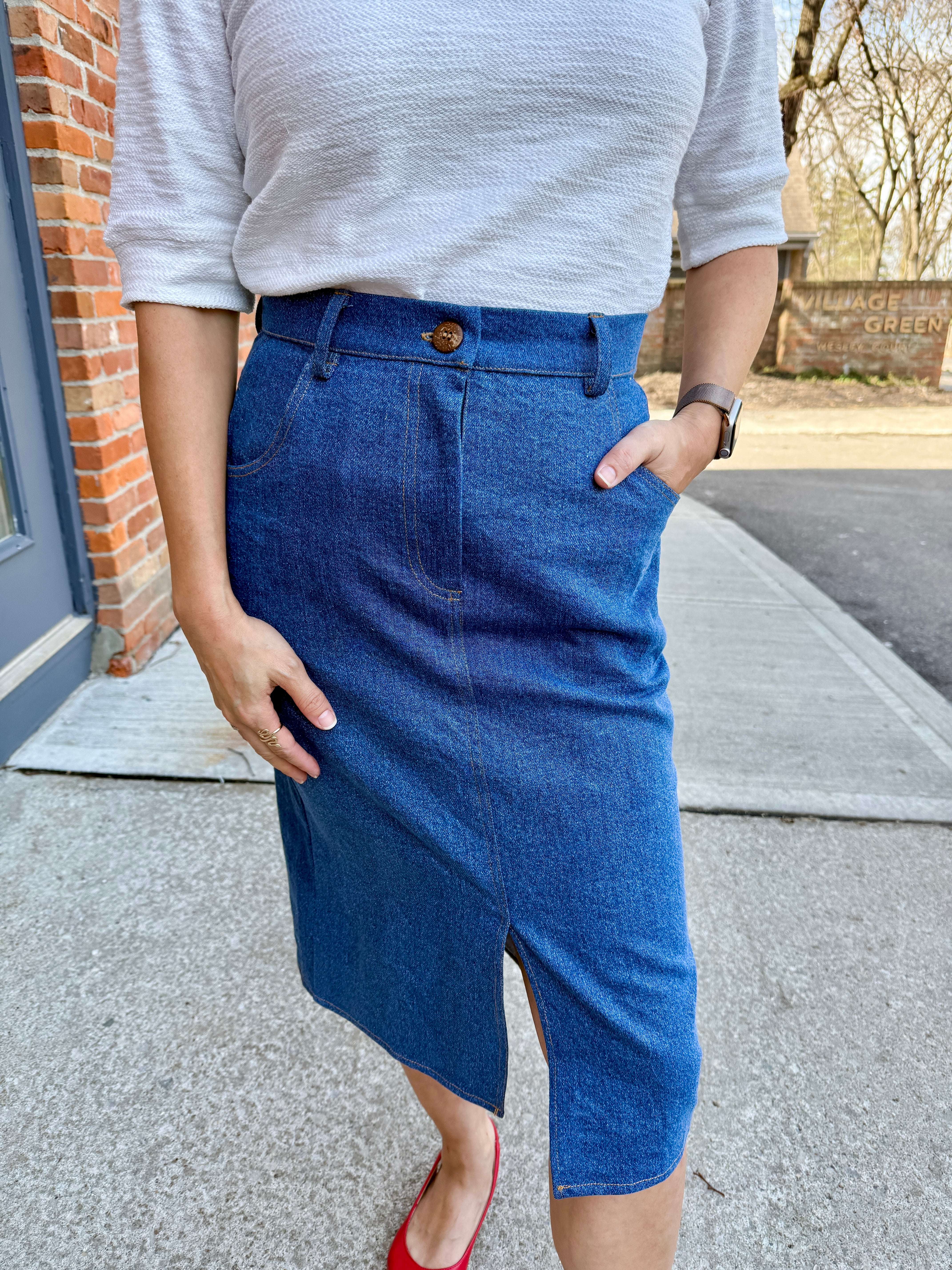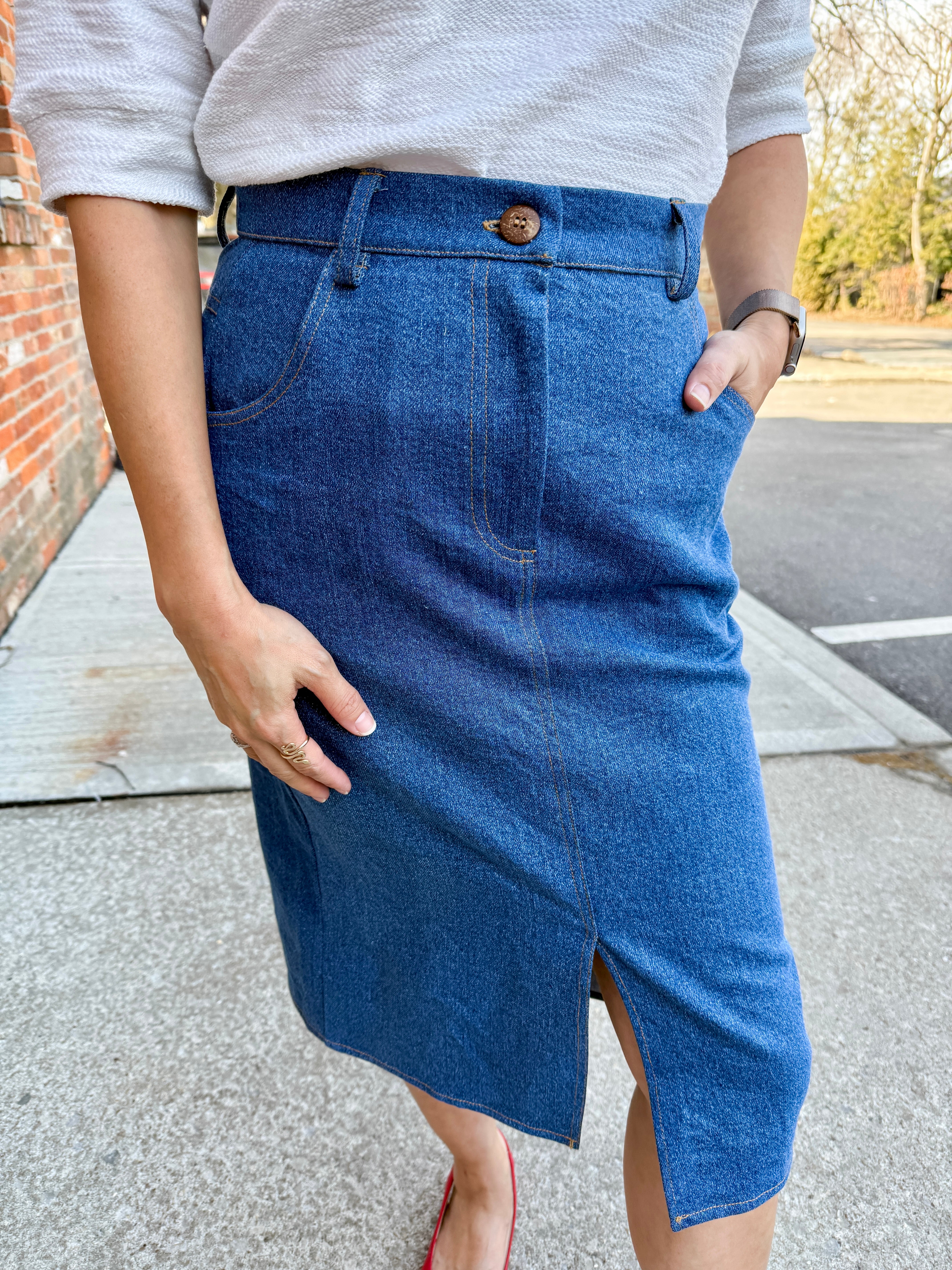 Denim Mid-Length Skirt