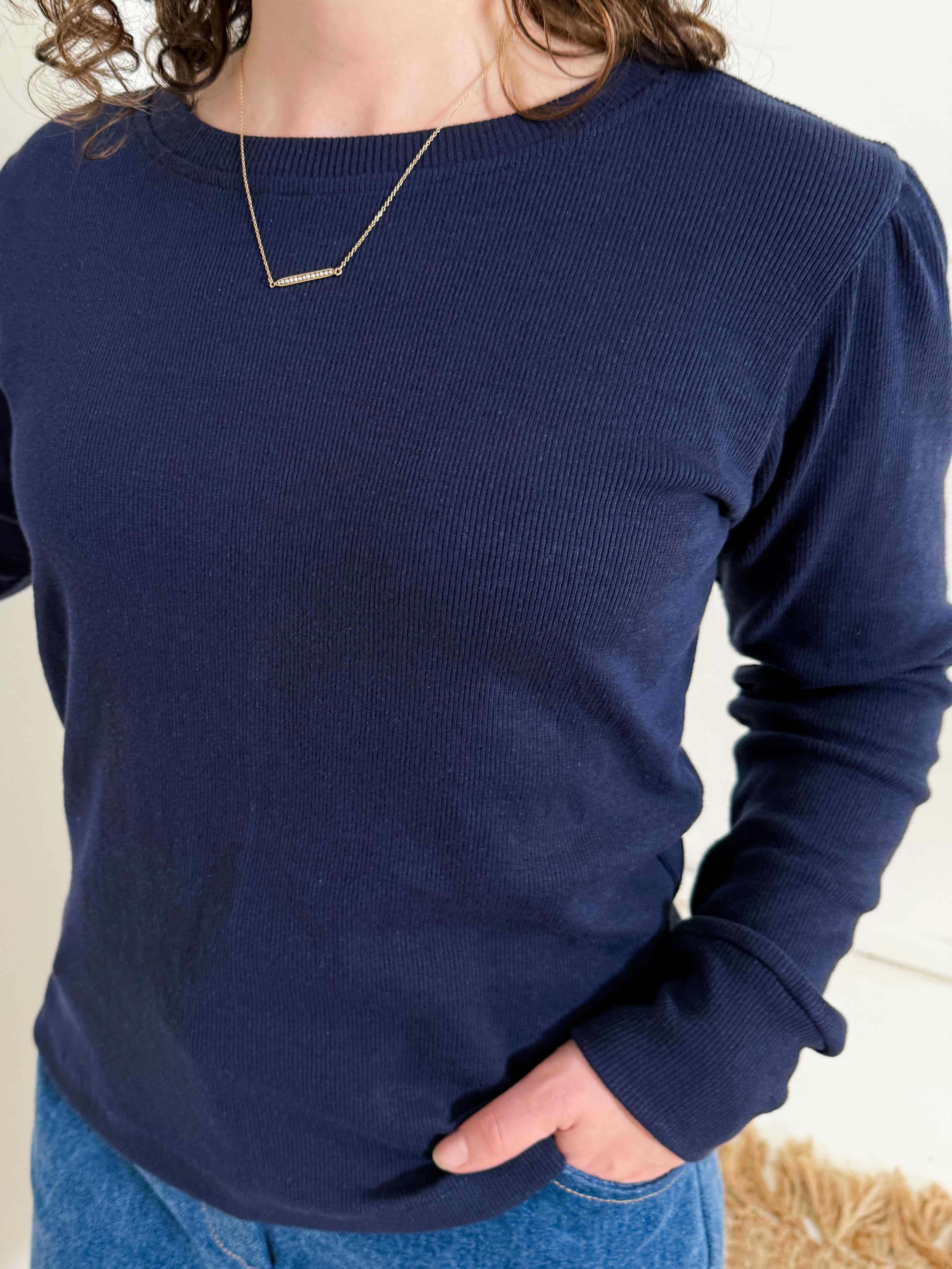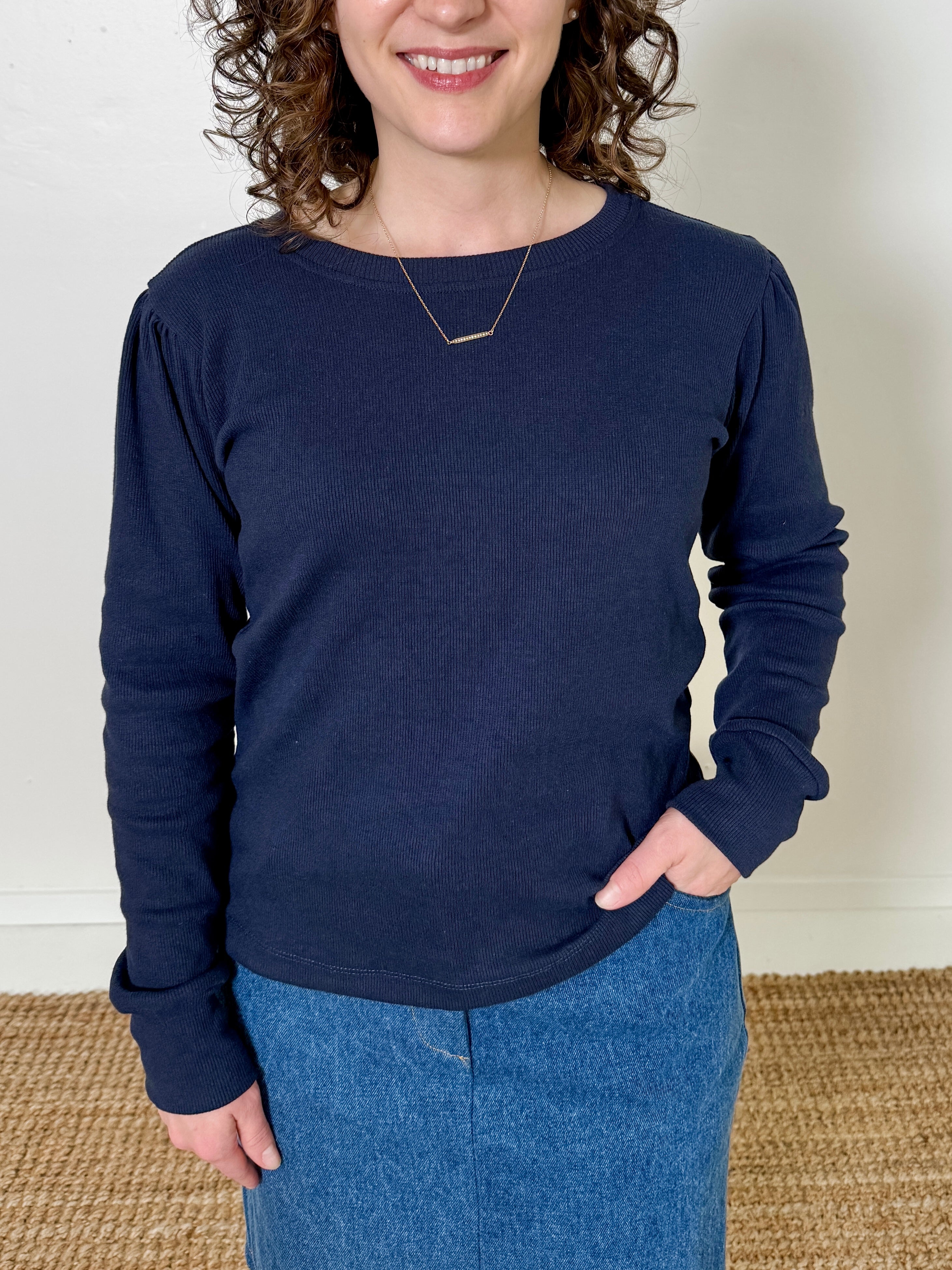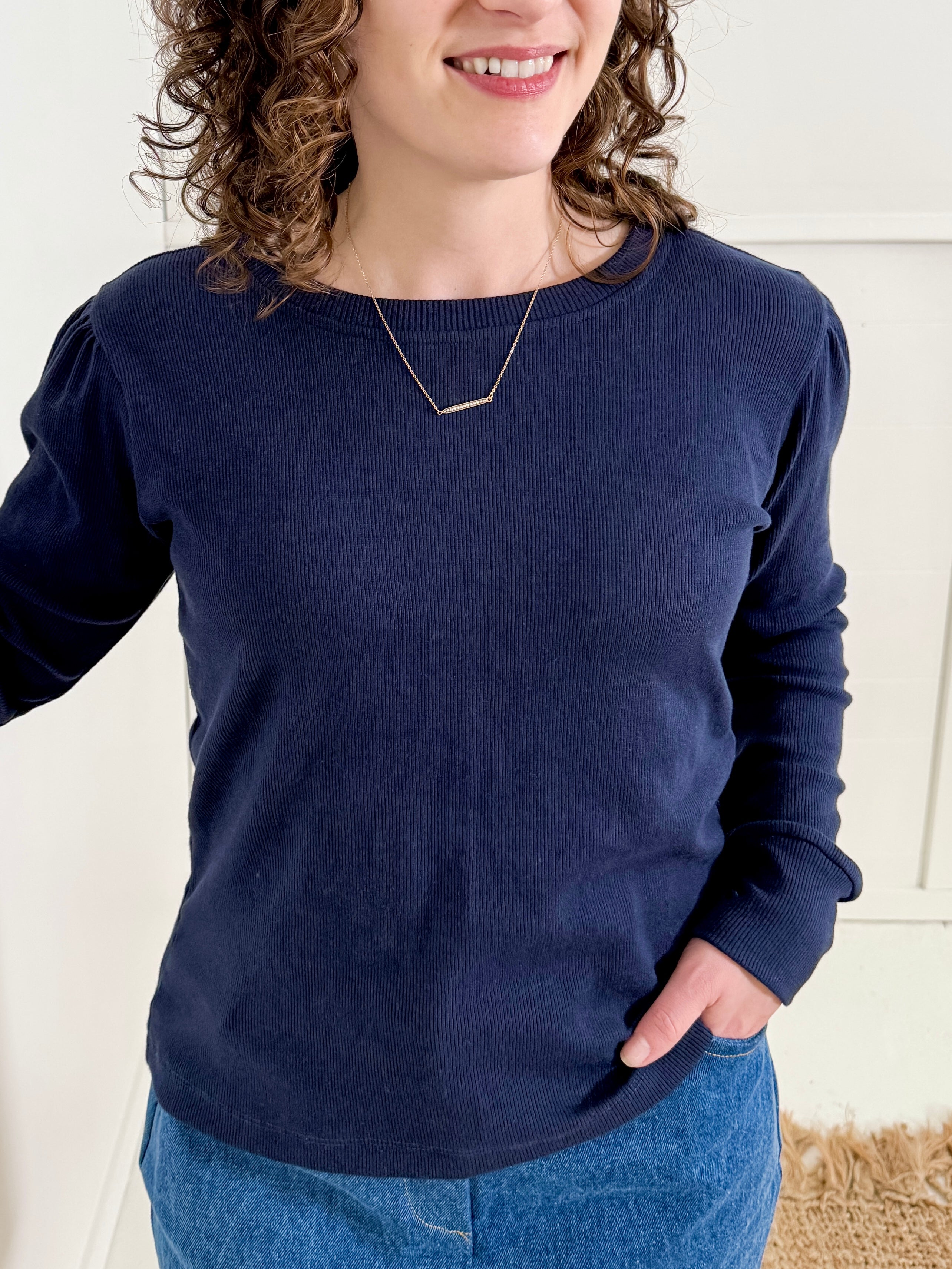 The Drop Sleeve Top is a versatile layering essential crafted from soft surplus cotton ribbed fabrics.