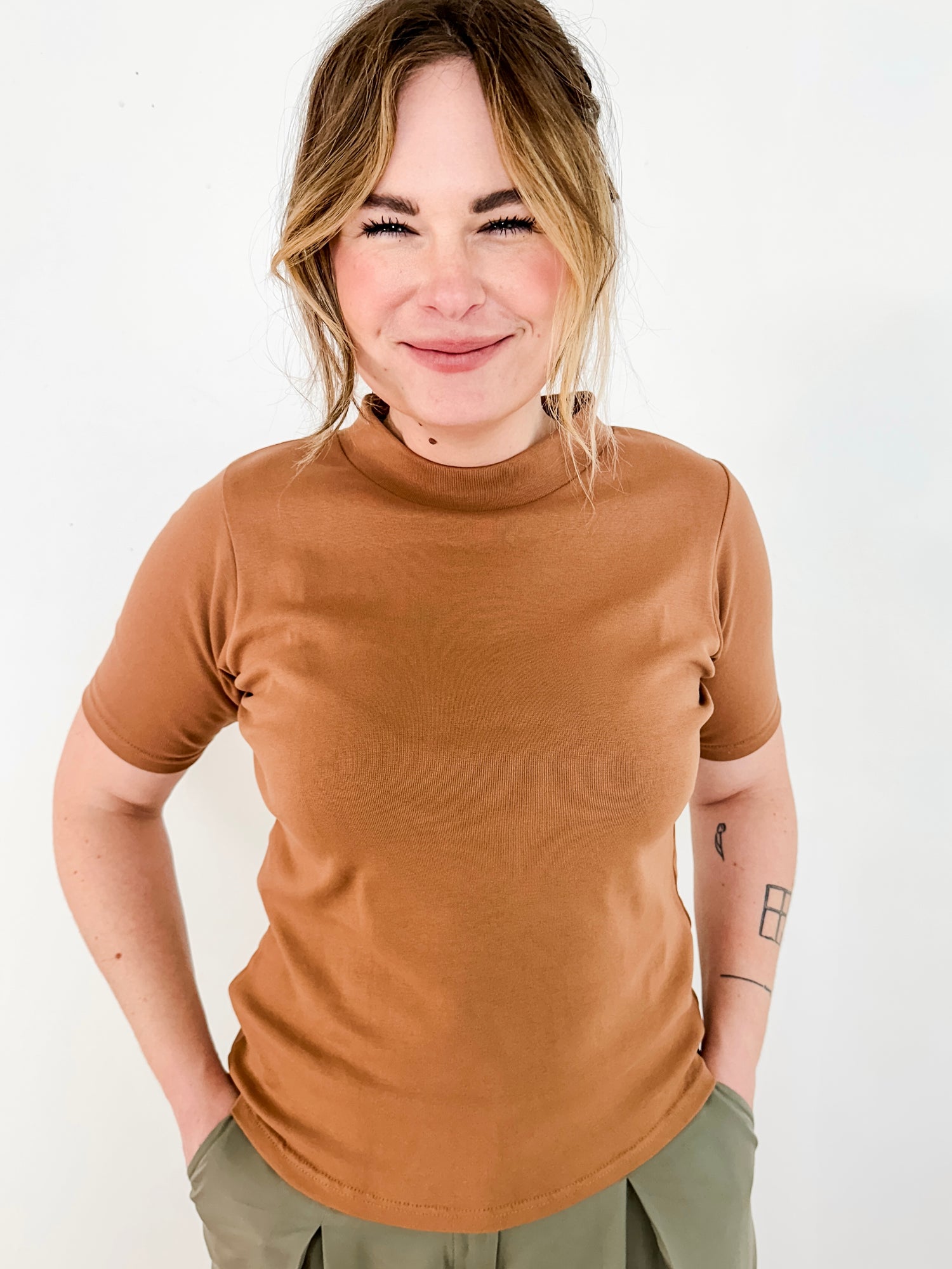 Elbow Sleeve Mock Neck