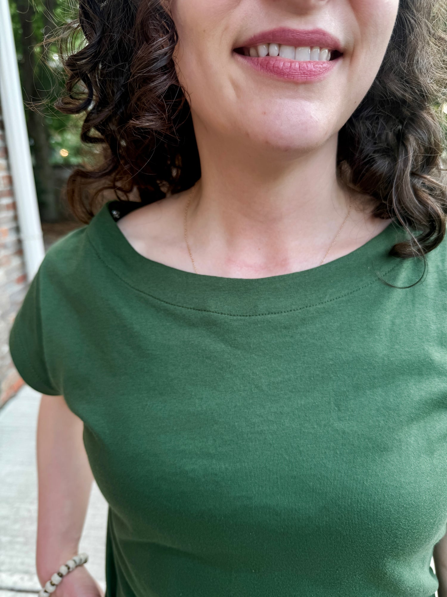 Models choose either their typical size in a knit top and a few preferred to size up one based on the size of their bottom vs. top (less fitted).