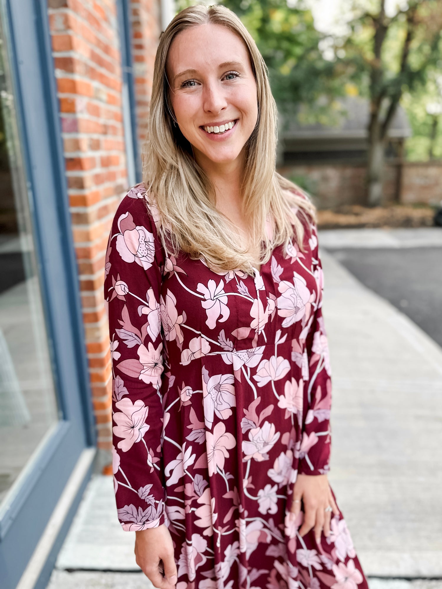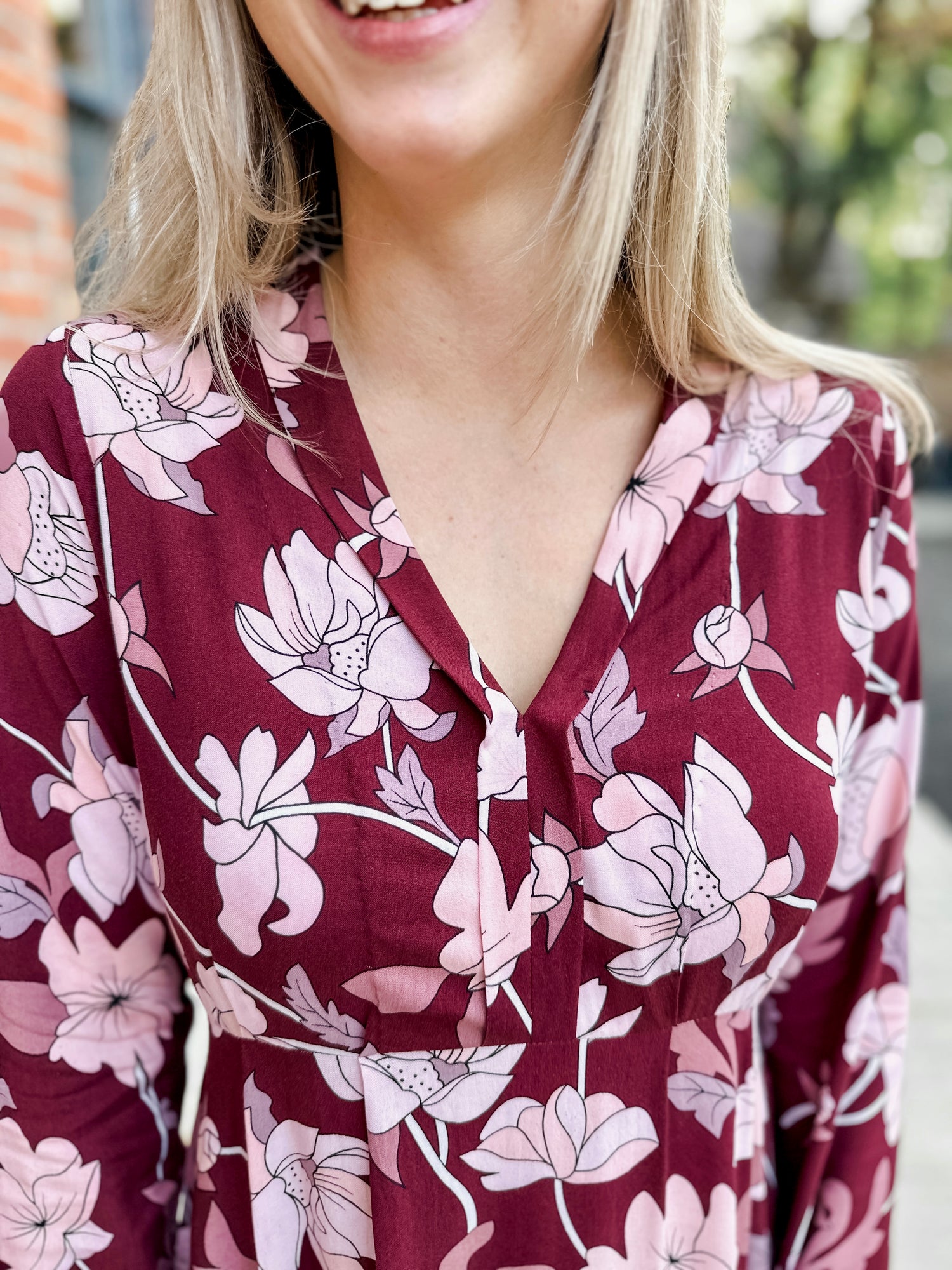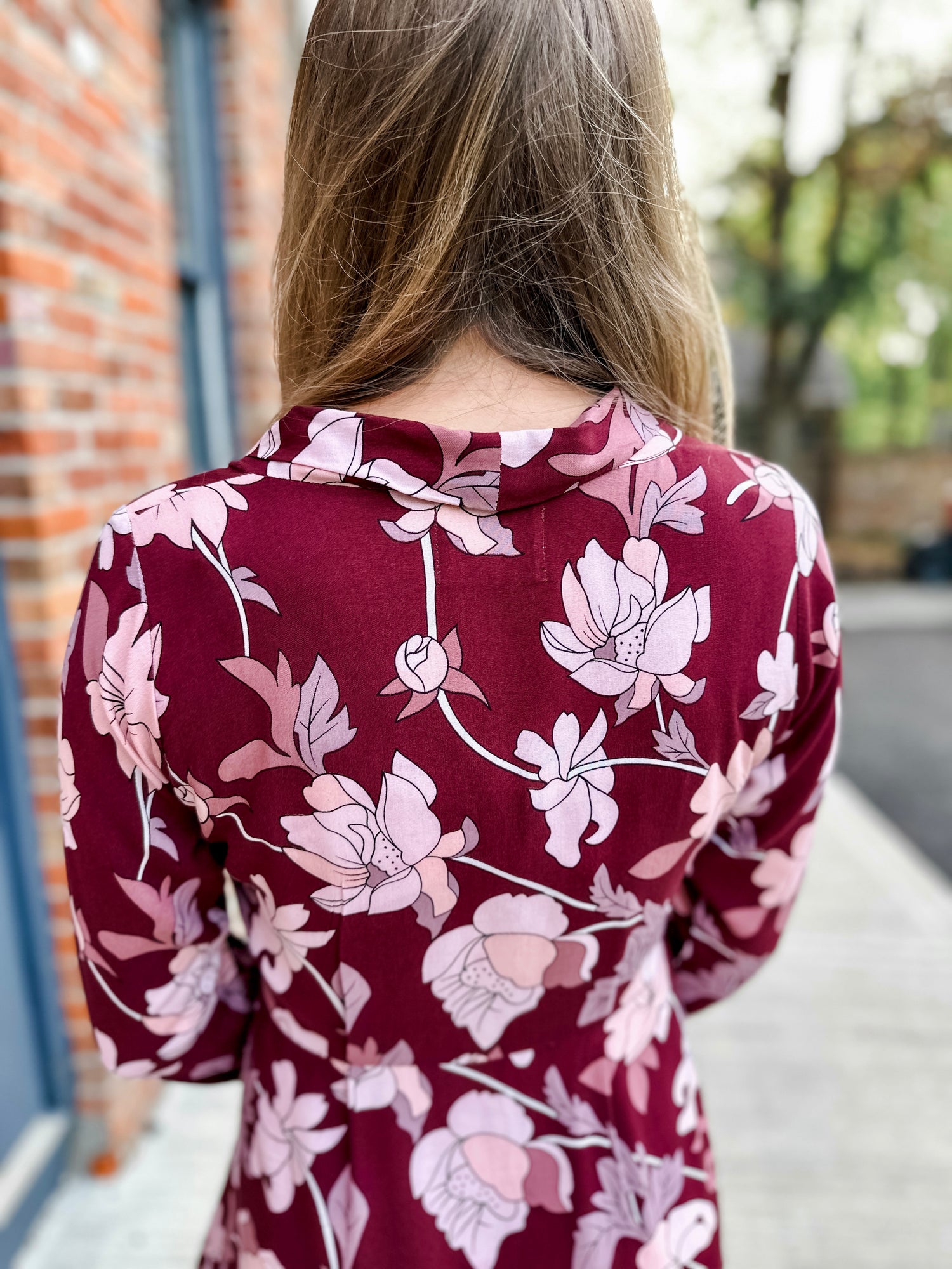 - Model Angie is shown wearing the wine floral size S which is her typical size in a top | Model Amanda is shown wearing the blue floral size S which is her typical size in a top